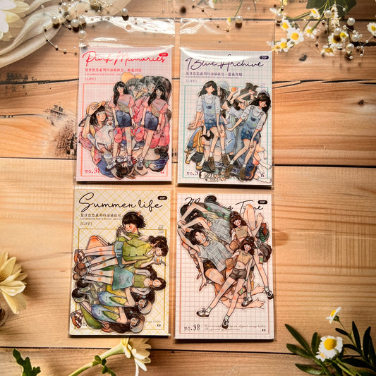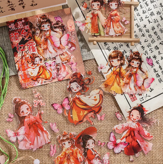 12 Pcs ancient style teenage characters handbook stickers