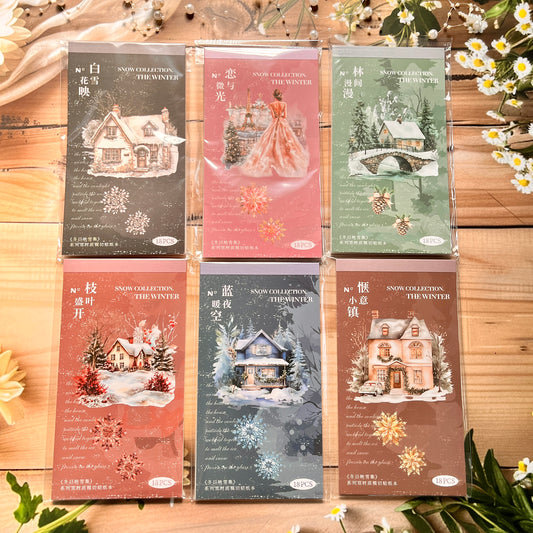18 sheets Dual Material Winter Snow Collection Die-cut Sticker Book