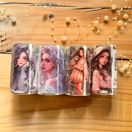 4 rolls/box girl flower handbook material decoration half cut pet tape set box