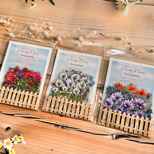 20 Pcs flower viewing along the way series floral fence Stickers for Journaling