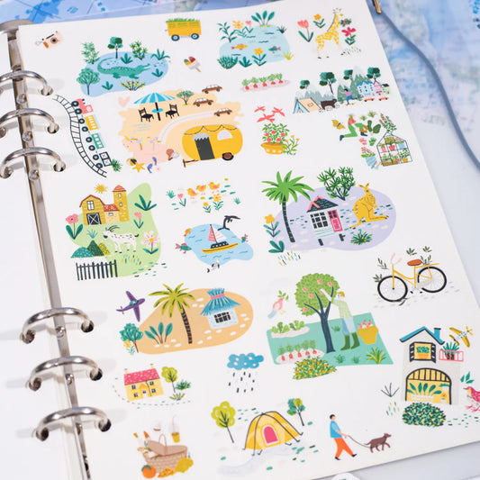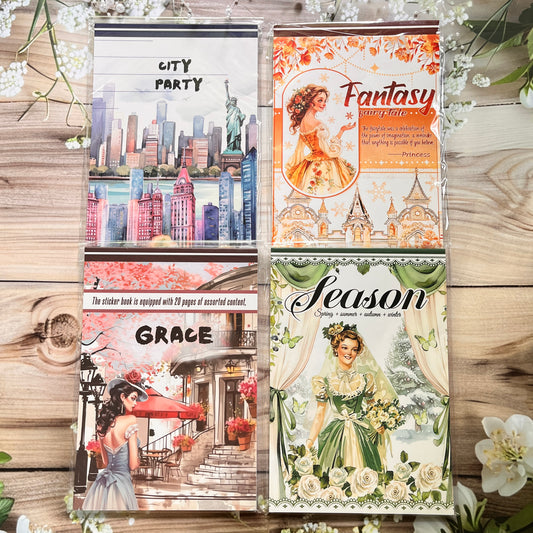20 Sheets Vintage Character Flower Landscaping Sticker Book