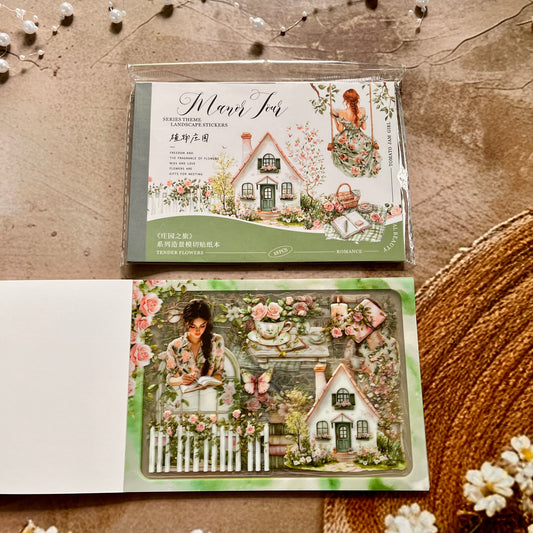 18 Sheets Manor Tour Series Vintage Flower Character Landscape sticker book