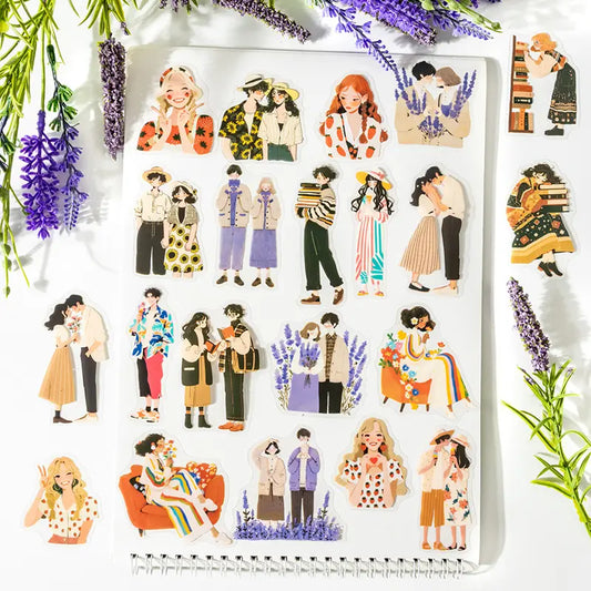 30 Pcs Couple's Weekend Series Kawaii Character Landscaping Stickers