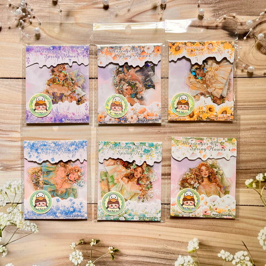 10 Pcs Messenger of Spring Flower Series Vintage Spring Girl Theme Pet Stickers