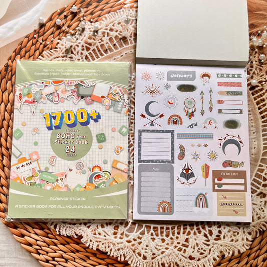 24 Sheets Aesthetics Boho Watercolor Planner Sticker Book