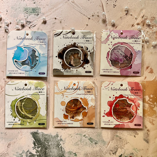30 Pcs Written Deep Trail Series Vintage Watercolor Smudge Stickers