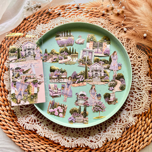 20 Pcs Garden Time Series Vintage Flower House Character Washi Stickers