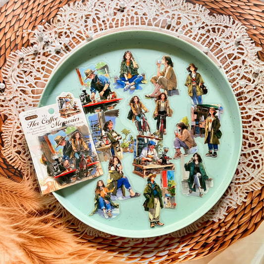 30 Pcs Her Coffee Memory Series Vintage Character Coffee Stickers