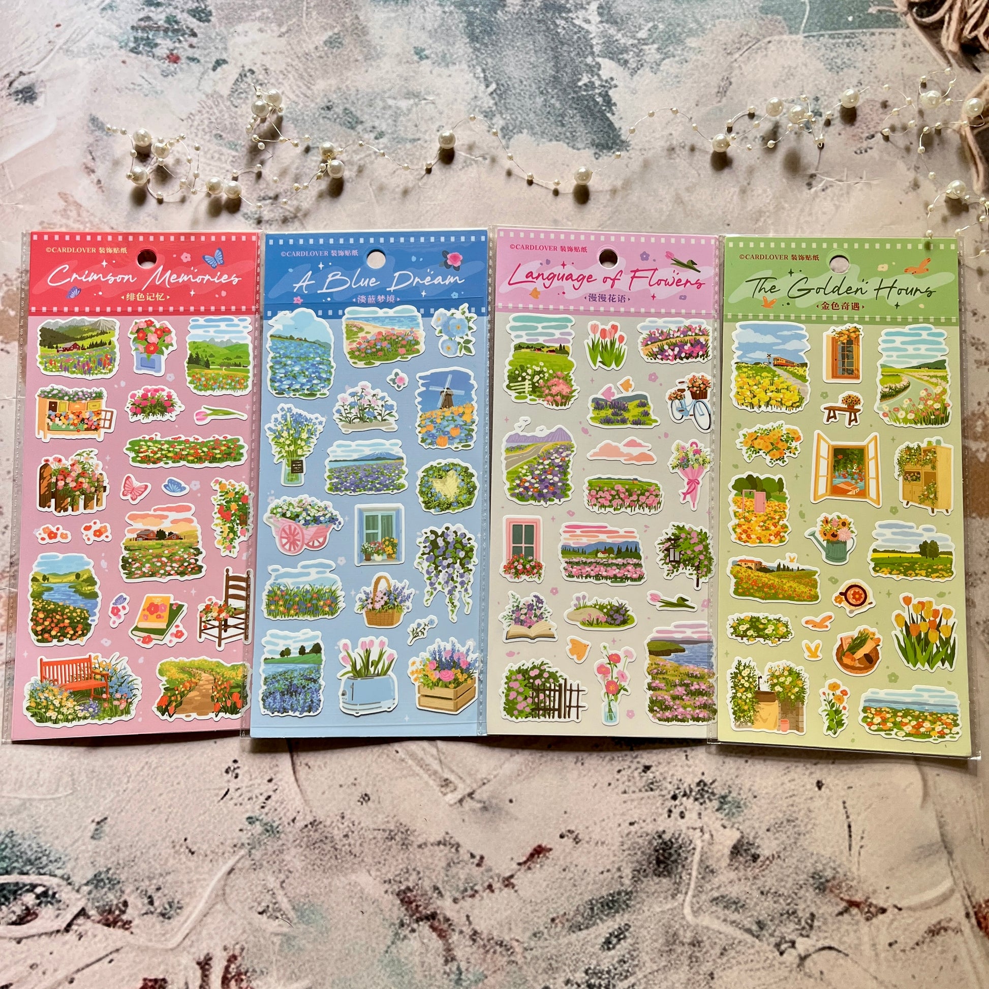 Elevate your creative projects with this single synthetic paper sticker sheet featuring charming flower illustrations. Perfect for scrapbooking, collages, card-making, and DIY crafts, these decorative stickers bring a touch of botanical beauty to any design. The pretty floral artwork adds visual interest and dimension to your work. Ideal for personalizing journals, gift wrapping, and craft projects. A versatile addition to any crafter's collection.