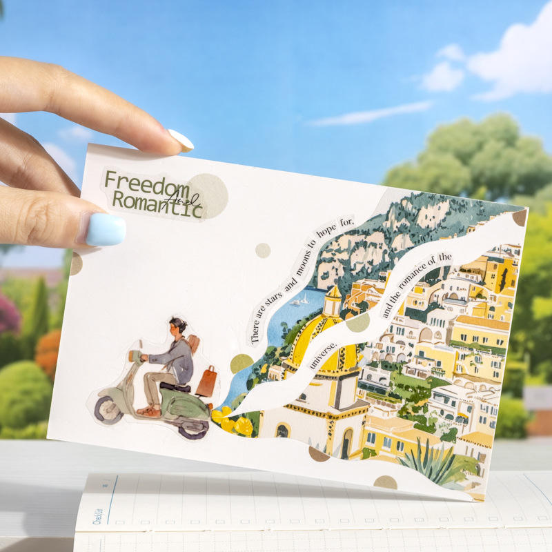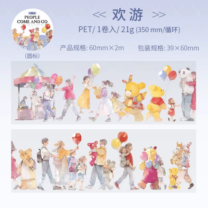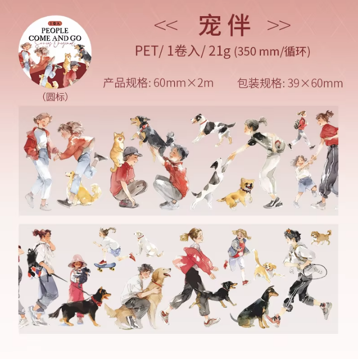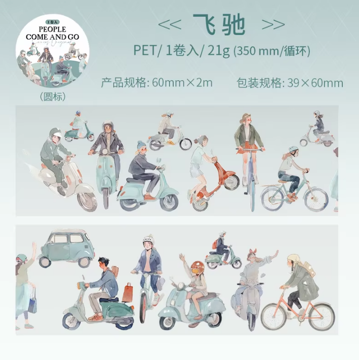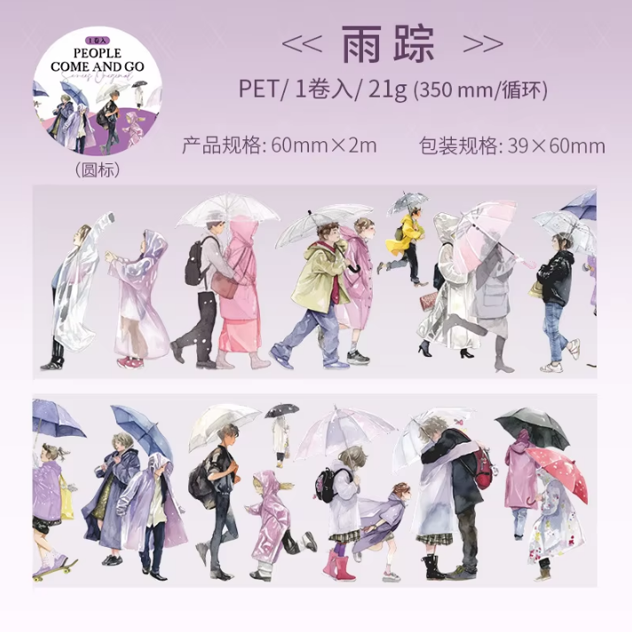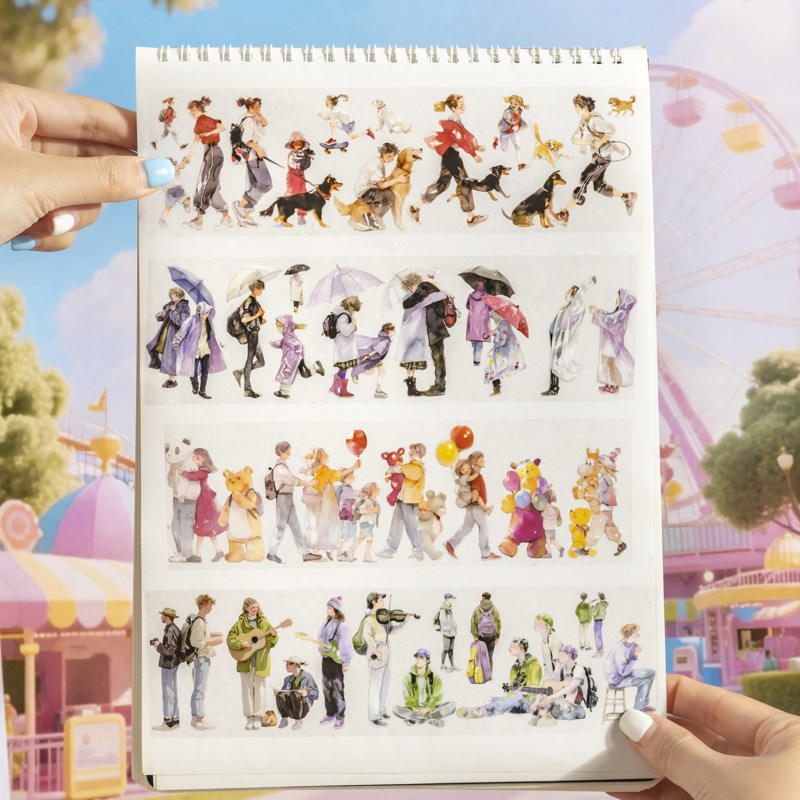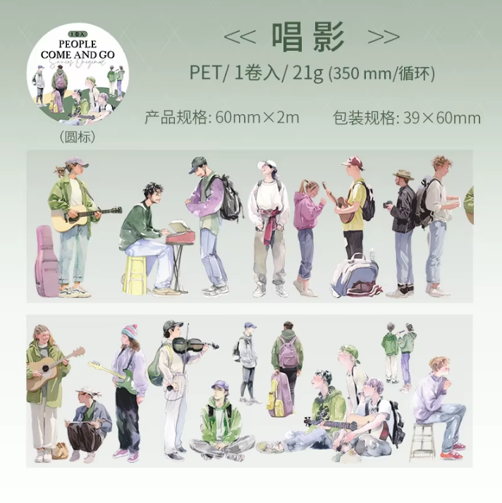 Enhance your journal spreads with the People Come and Go Series Landscaping PET Tape, a single roll designed for stylish and precise application. This durable PET tape features delicate person stickers that add a thoughtful, artistic touch to your layouts, enriching your storytelling with subtle, sophisticated details. Ideal for journaling enthusiasts seeking to blend creativity and elegance in every page.
