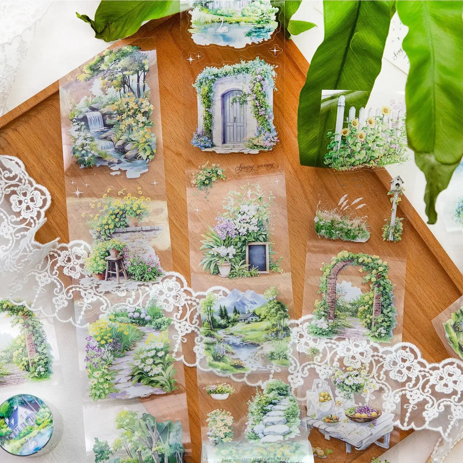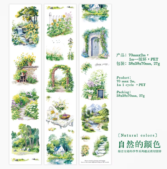 1Roll Seasonal Green Series pretty grassland Scenery Pet Tape