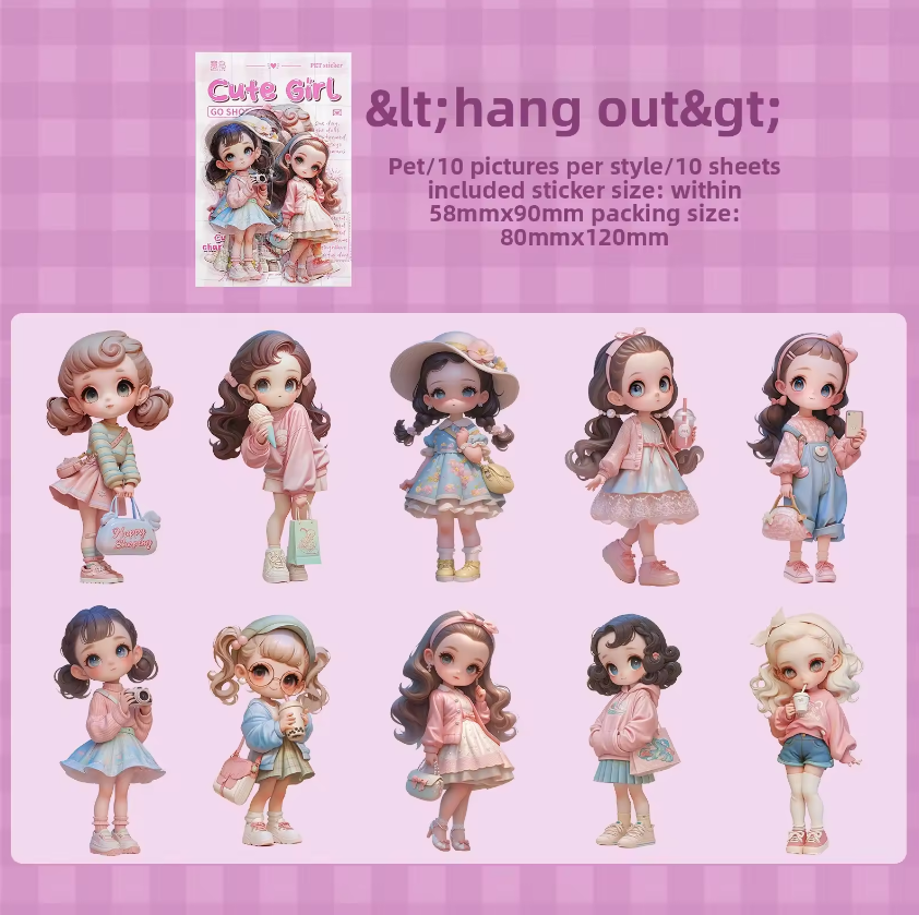 10 Pcs Cute Girl Series Cartoon Characters Decorative Stickers for Journaling