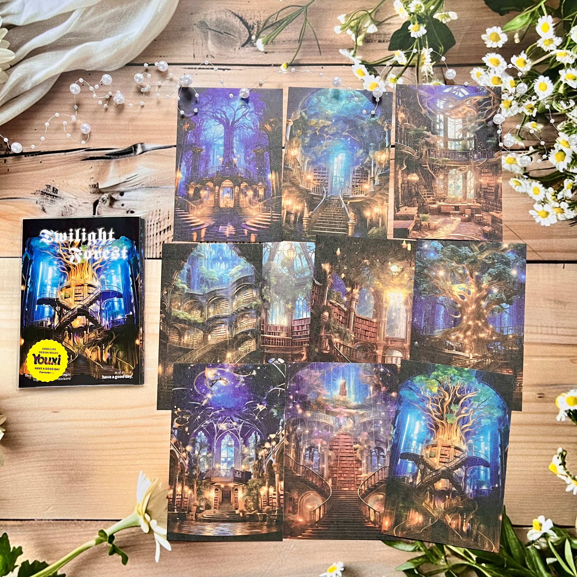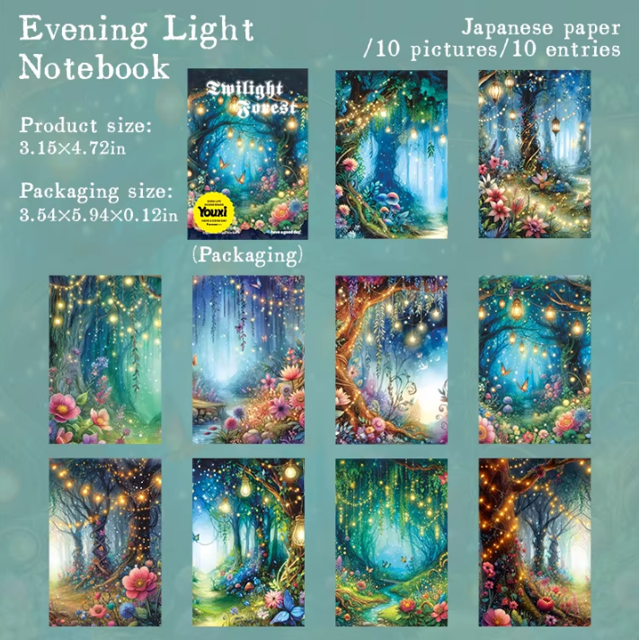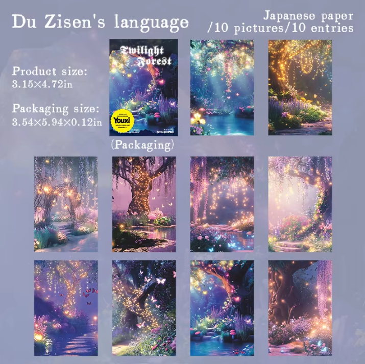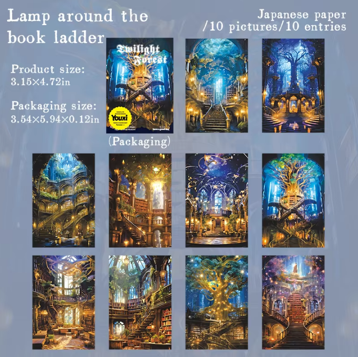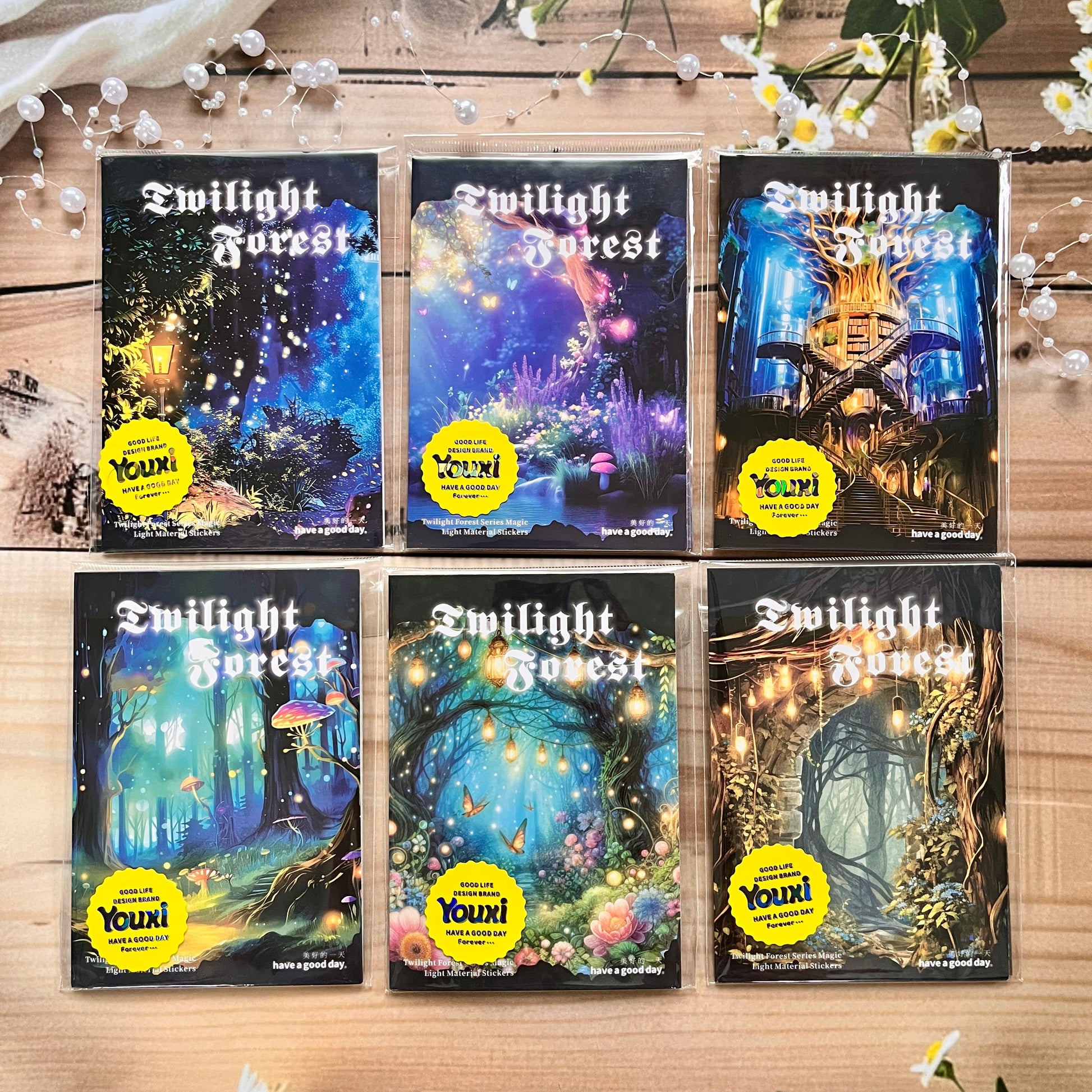 This set includes 10 sophisticated Twilight Forest Series lighting-themed stickers, perfect for enhancing your scrapbooking projects. Each sticker captures the enchanting ambiance of a twilight forest, adding depth and elegance to your creative layouts. Ideal for those seeking to infuse their crafts with a subtle, atmospheric charm.