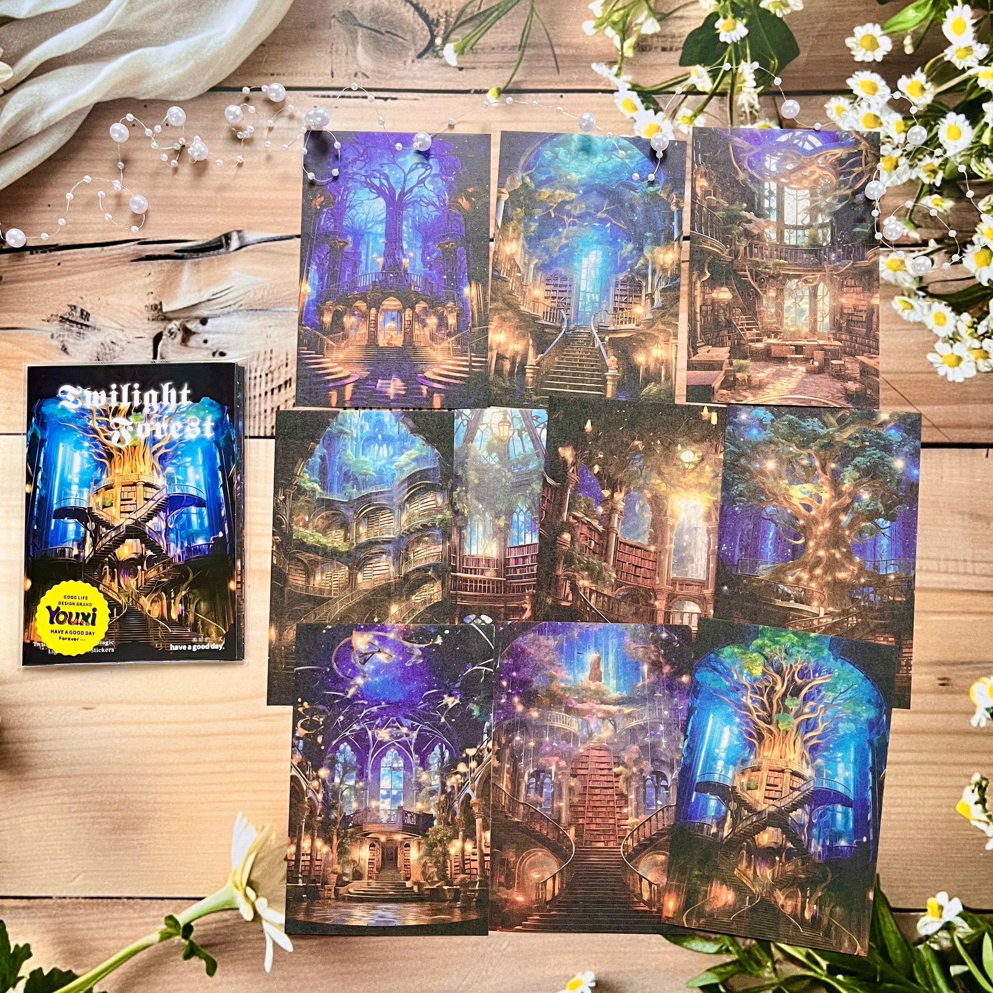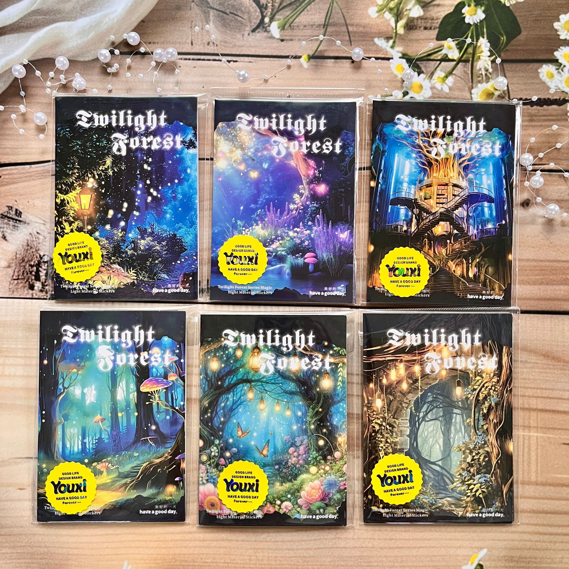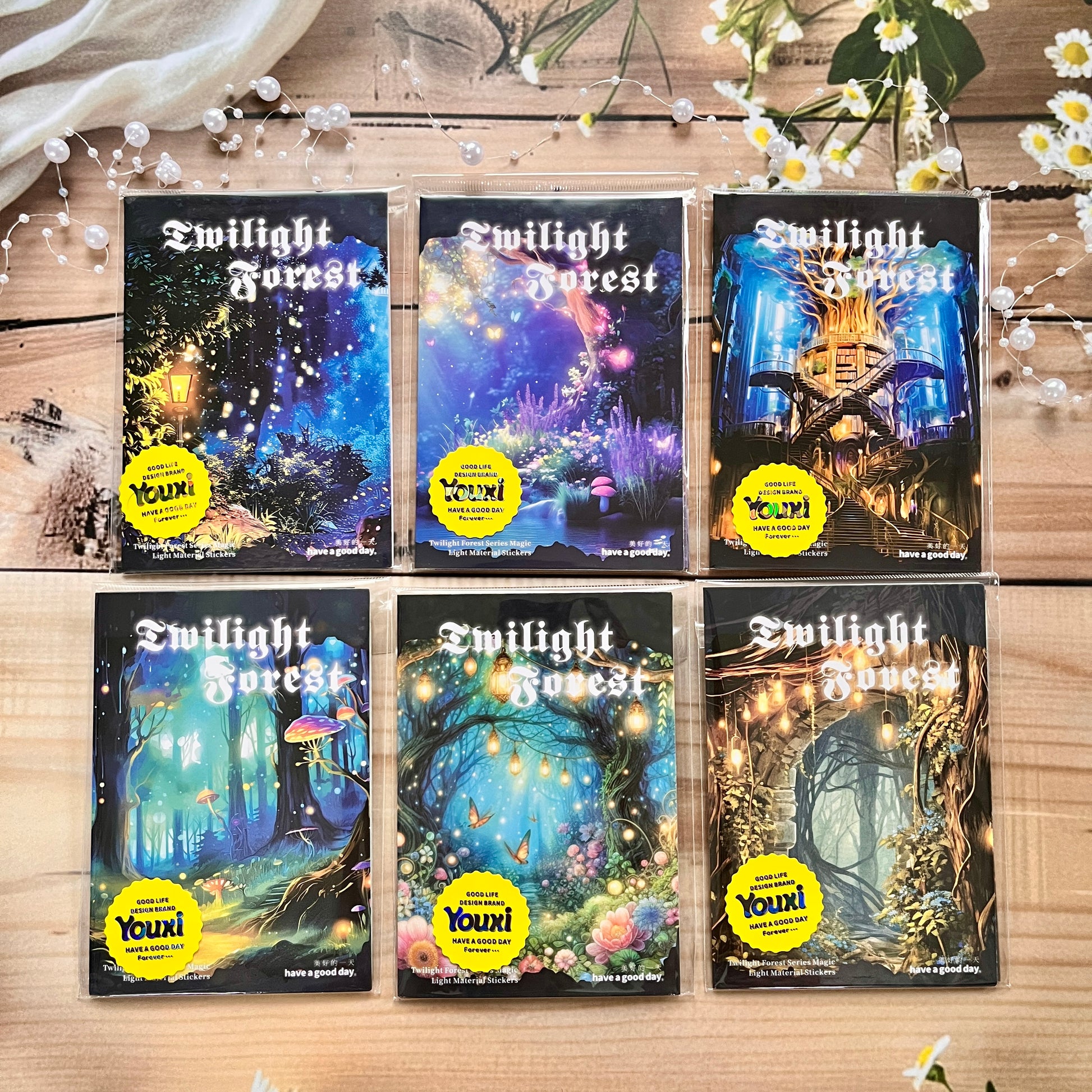 10pcs Twilight Forest Series Lighting Theme Aquascape Material Stickers