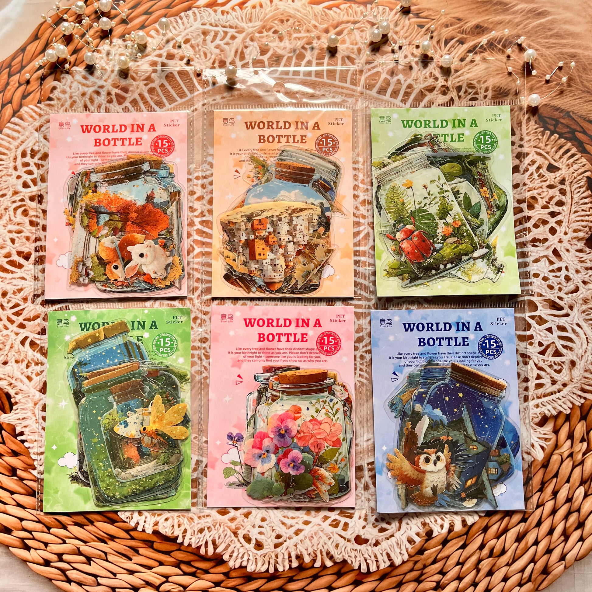 15 Pcs Bottle World Series Oil Painting Bottle Scenery Stickers
