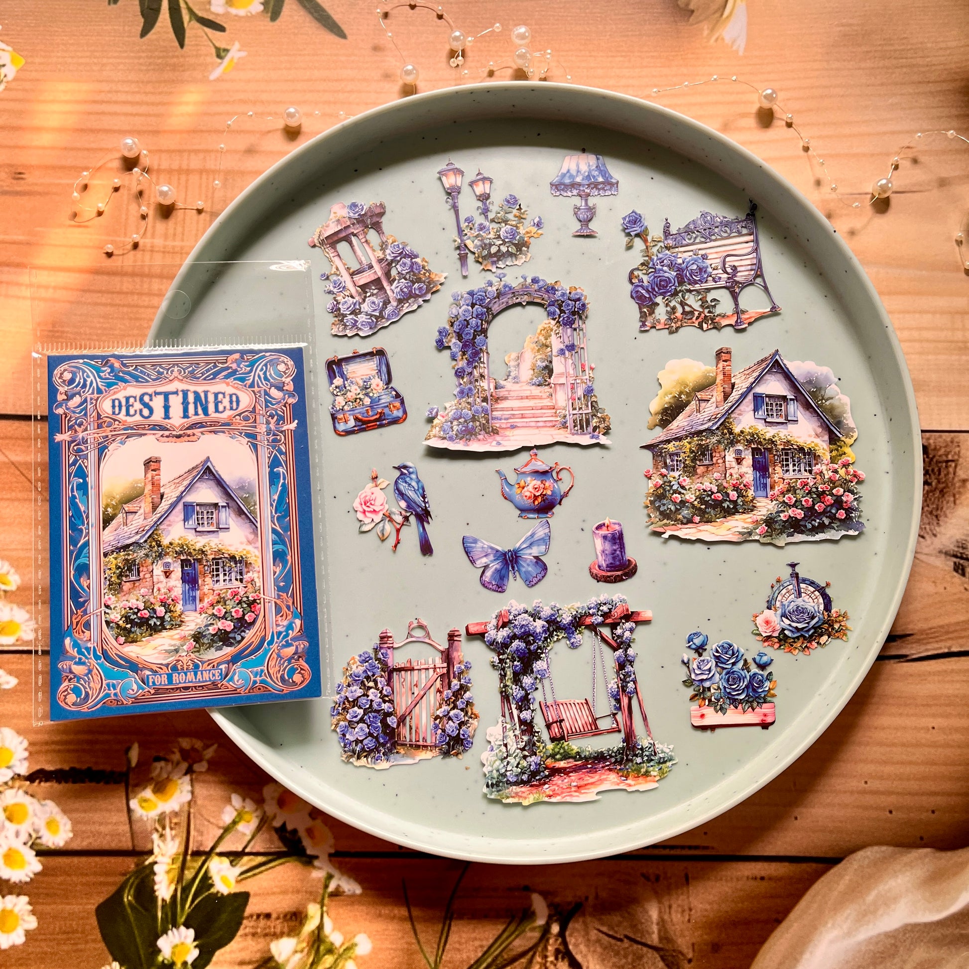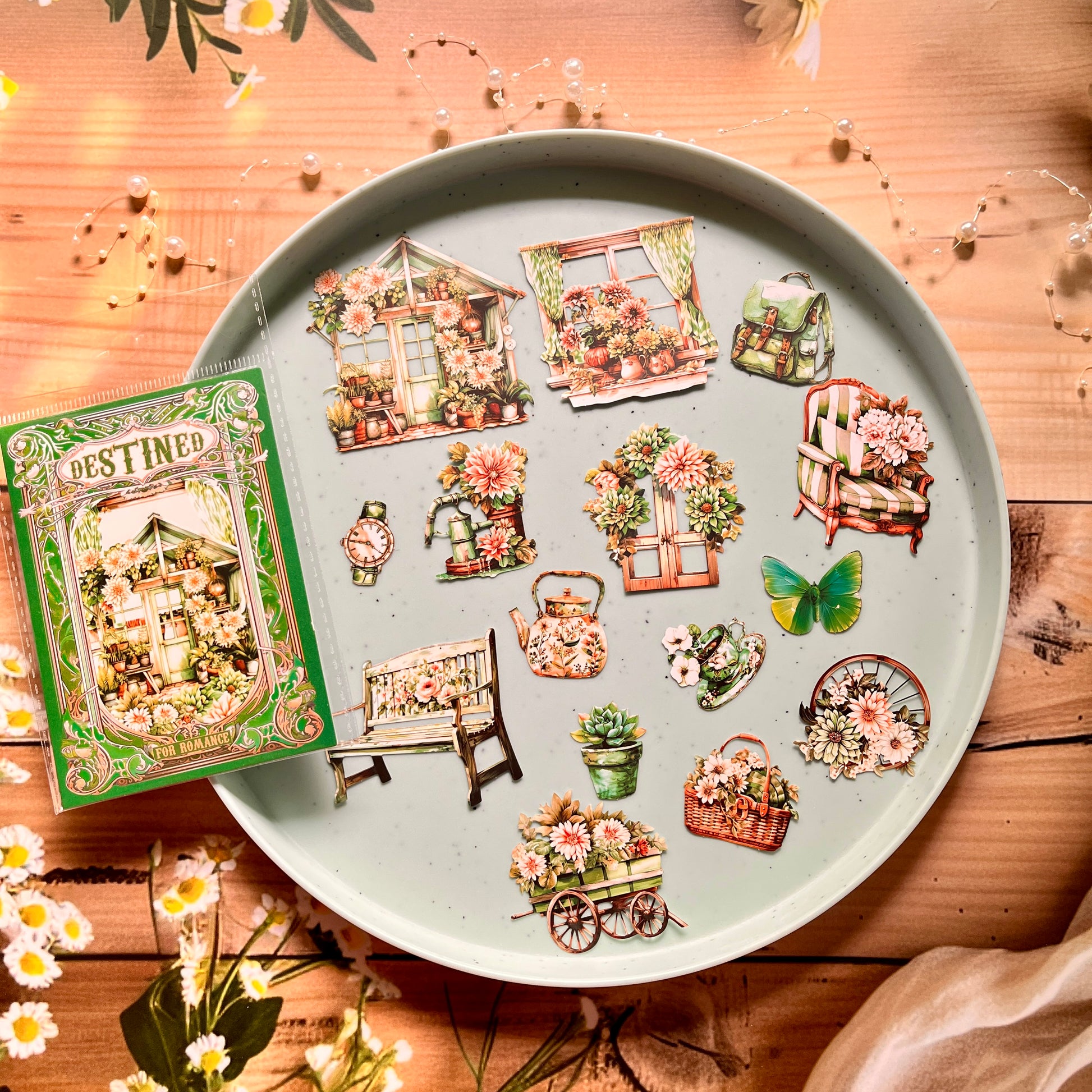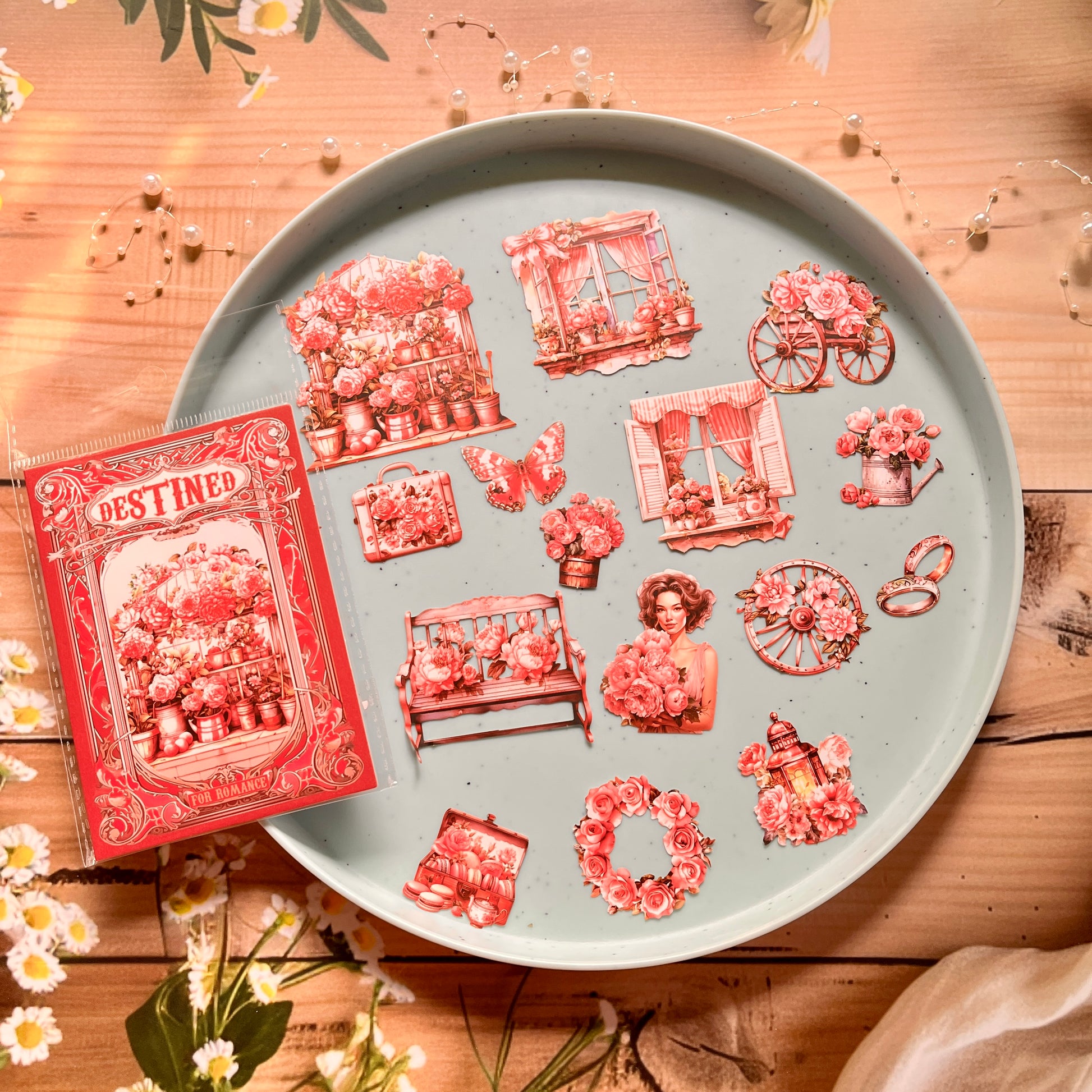 15 Pcs destined for romance series garden theme hollow handbook material decoration stickers