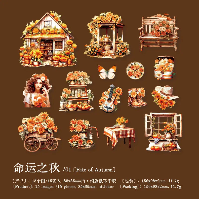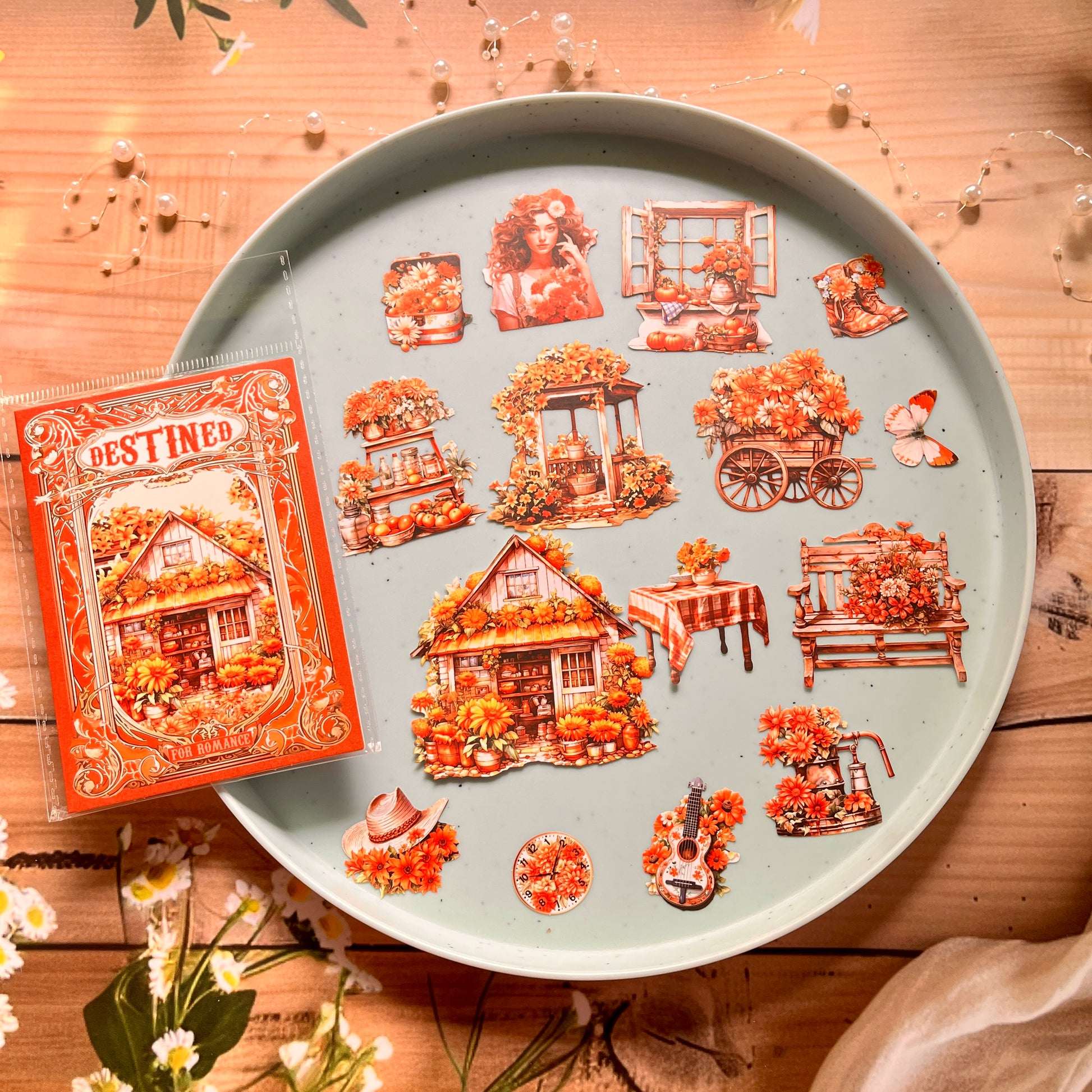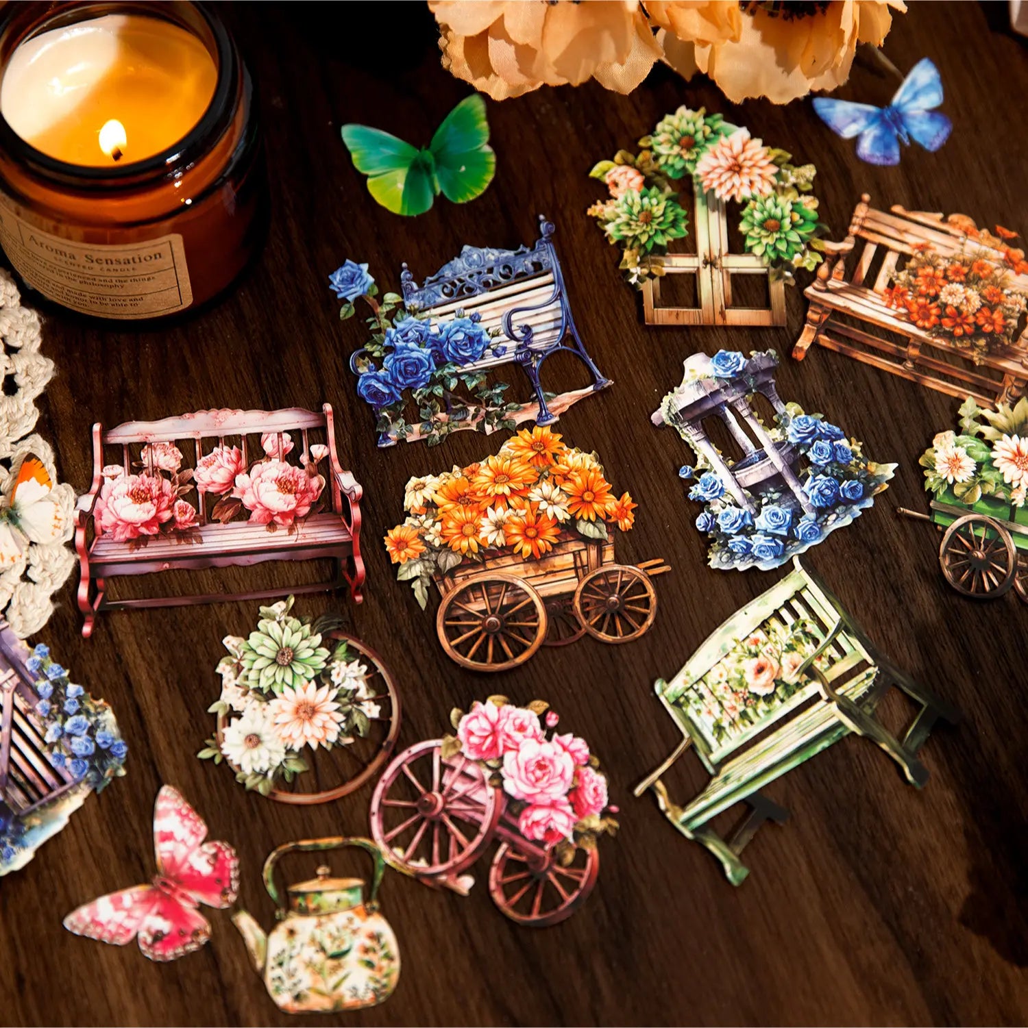 15 Pcs destined for romance series garden theme hollow handbook material decoration stickers