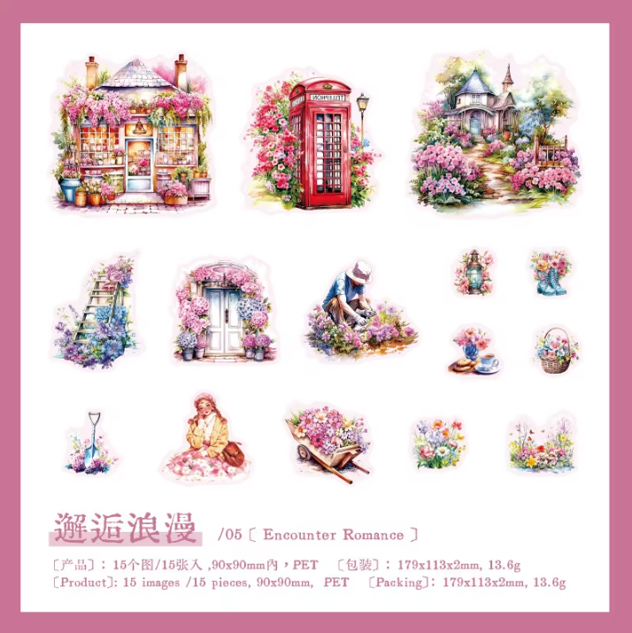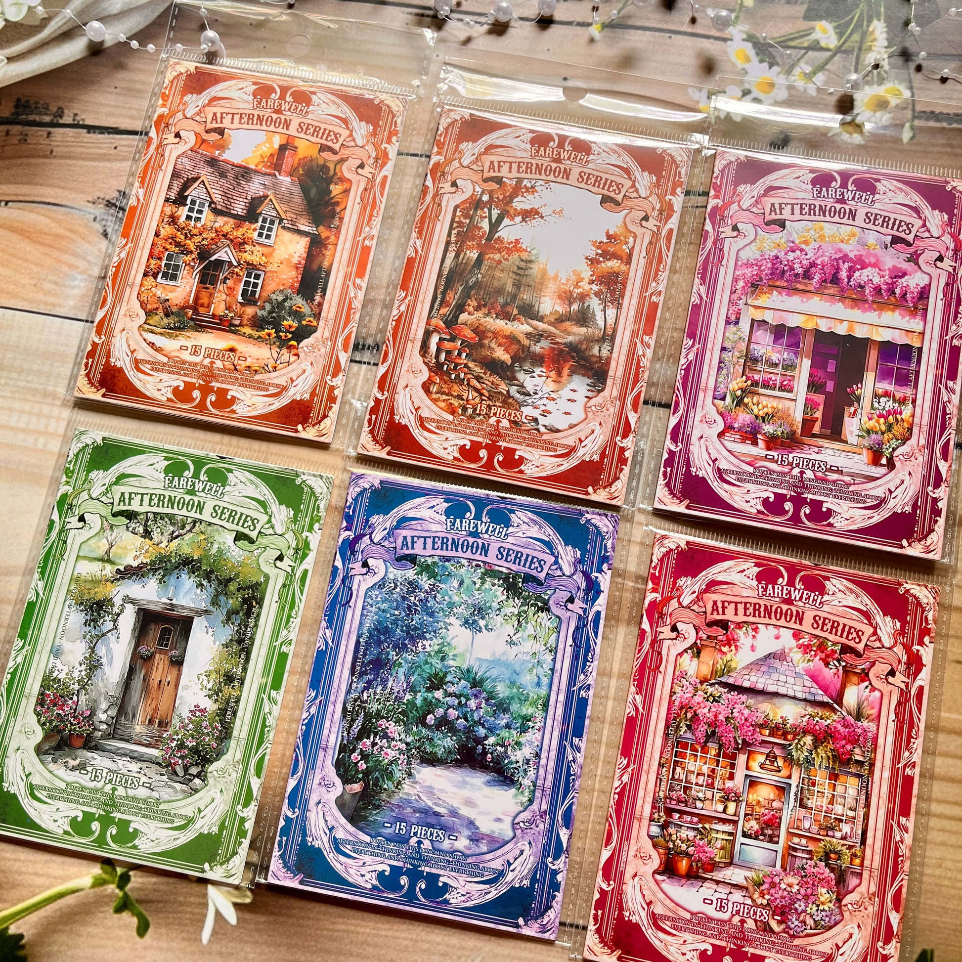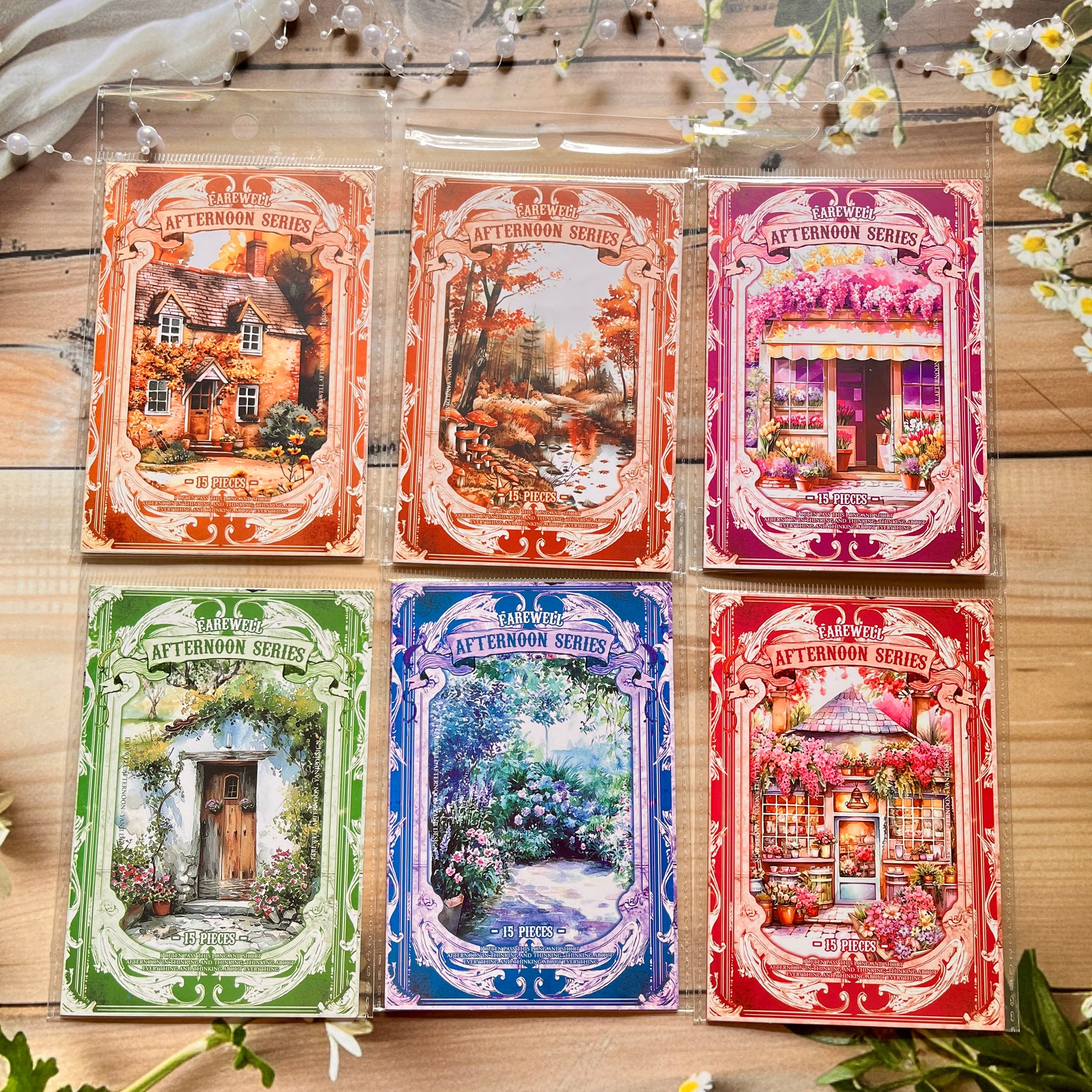 15 Pcs Farewell To The Afternoon Series Vintage Flower Character Landscaping