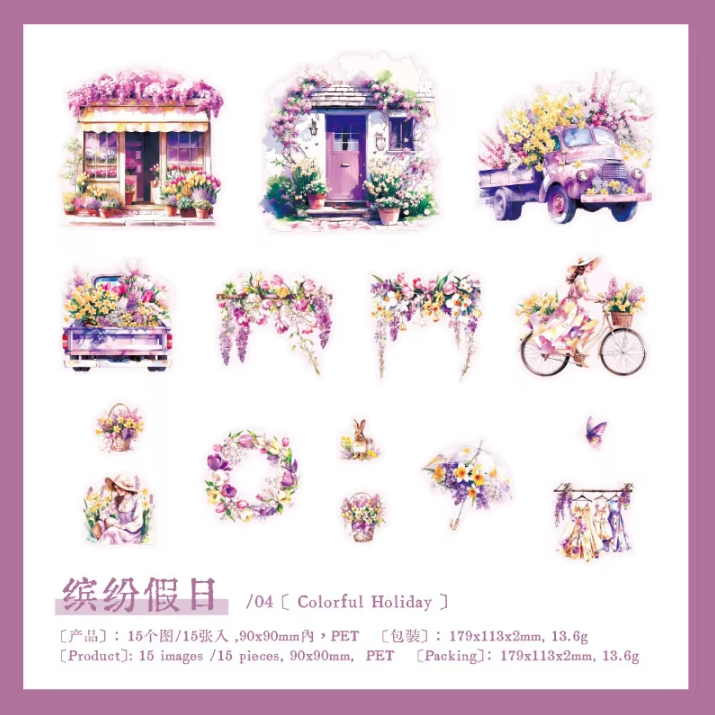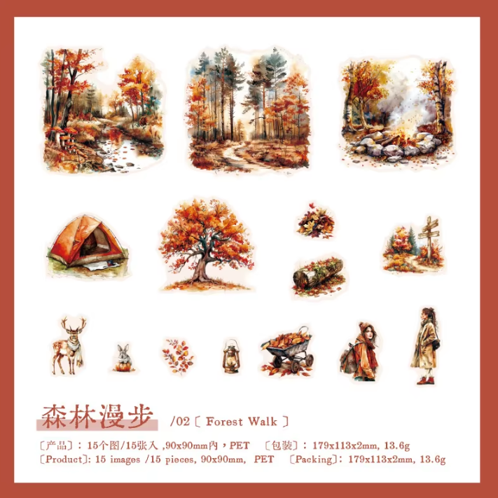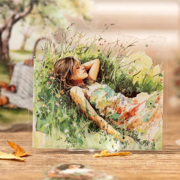 These stickers embody the laid-back essence of lazy afternoons, showcasing peaceful depictions of strolls through fields, woods, and flower-filled landscapes. With stunning butterfly and floral patterns, these stickers invite feelings of tranquility and the outdoors, making them ideal for embellishing journals and scrapbooks.