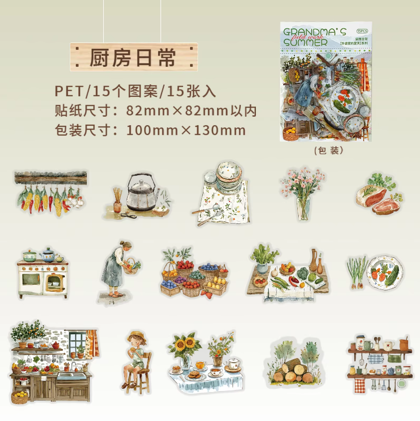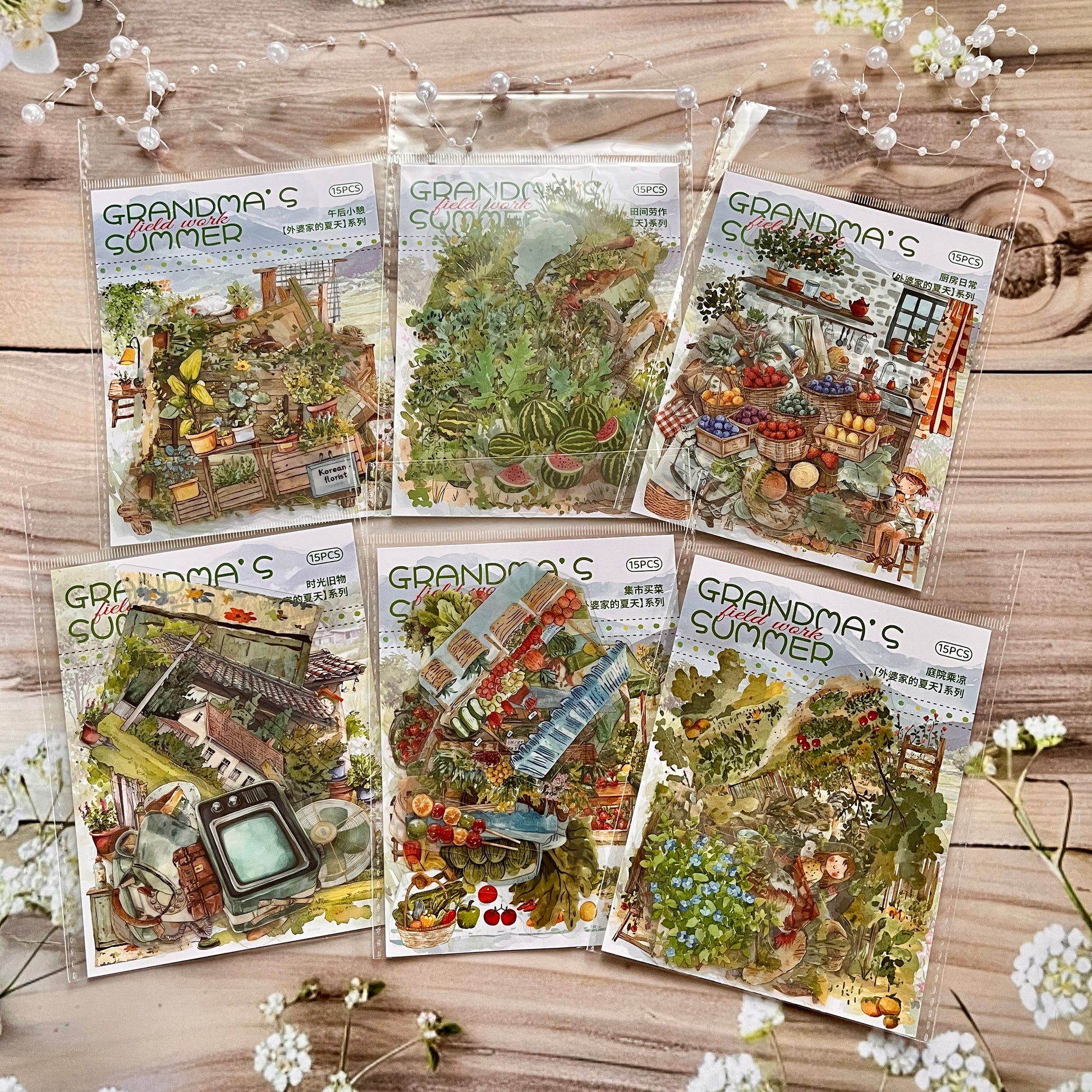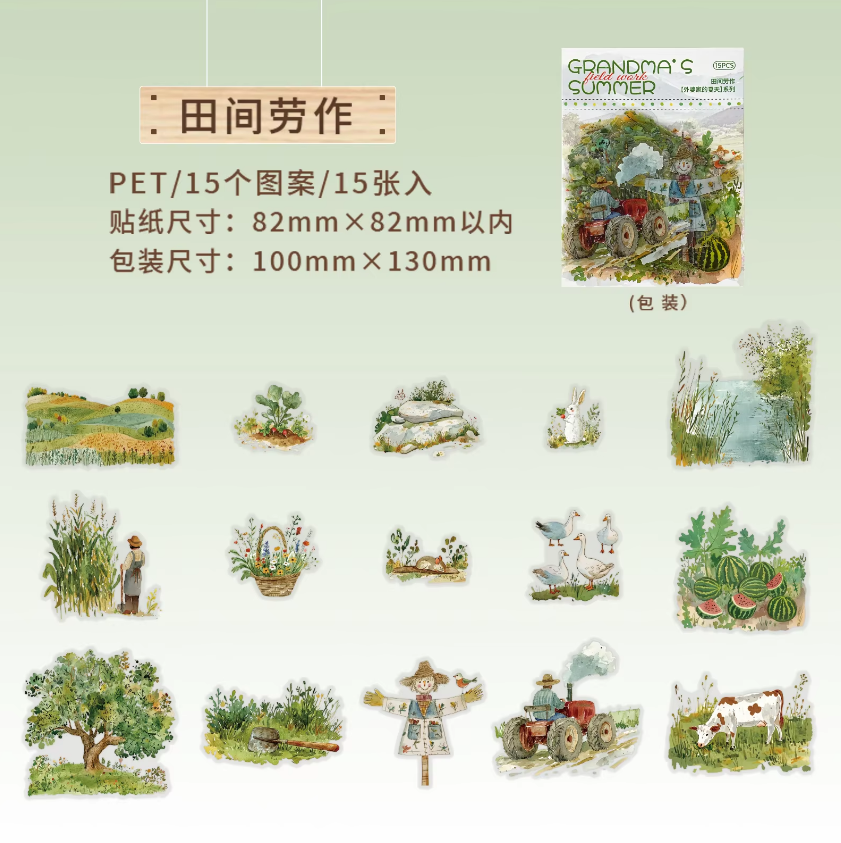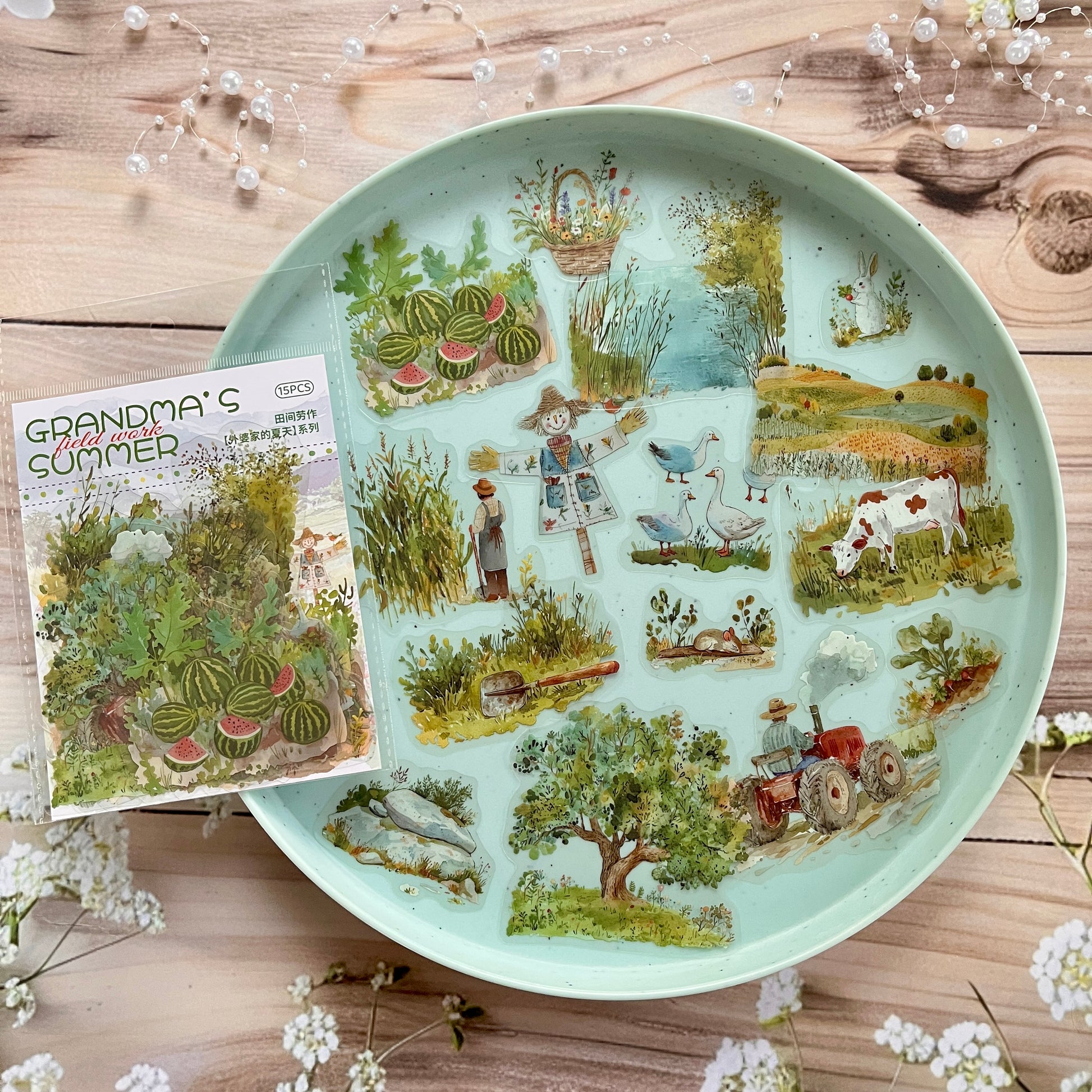 15pcs Summer at Grandma's House Series of Idyllic Countryside Theme Decorative Stickers