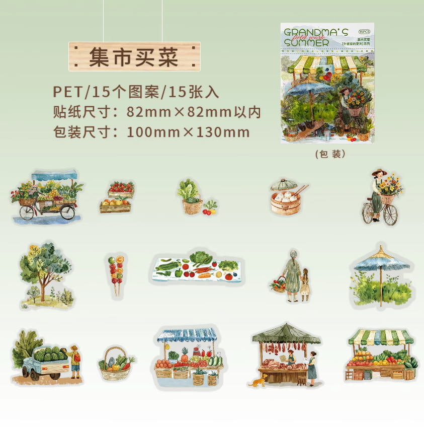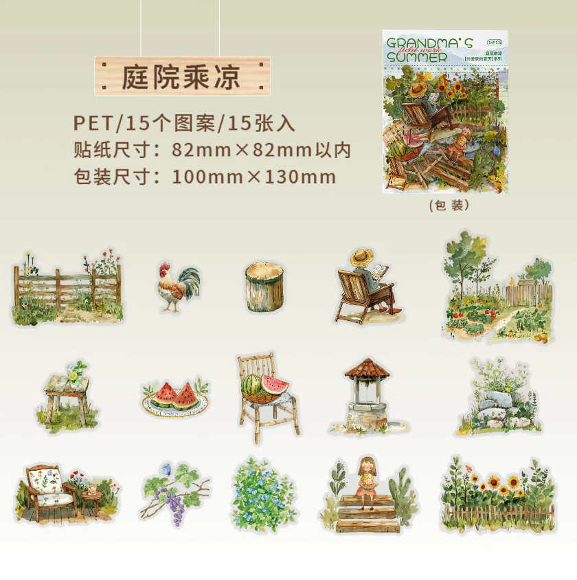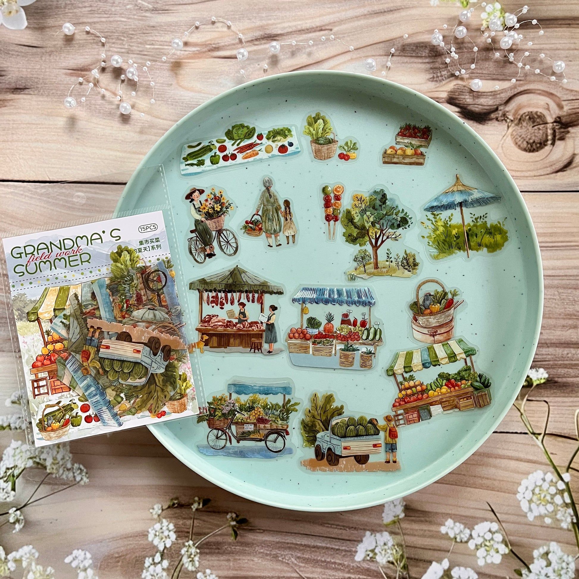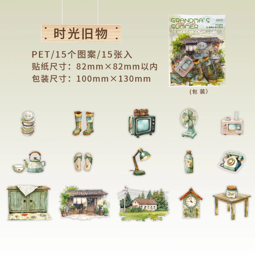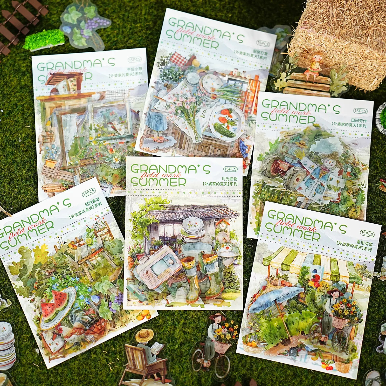 15pcs Summer at Grandma's House Series of Idyllic Countryside Theme Decorative Stickers