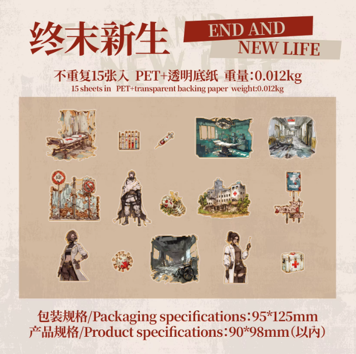 15pcs Waste Land Post-apocalyptic Themed Landscaping Stickers