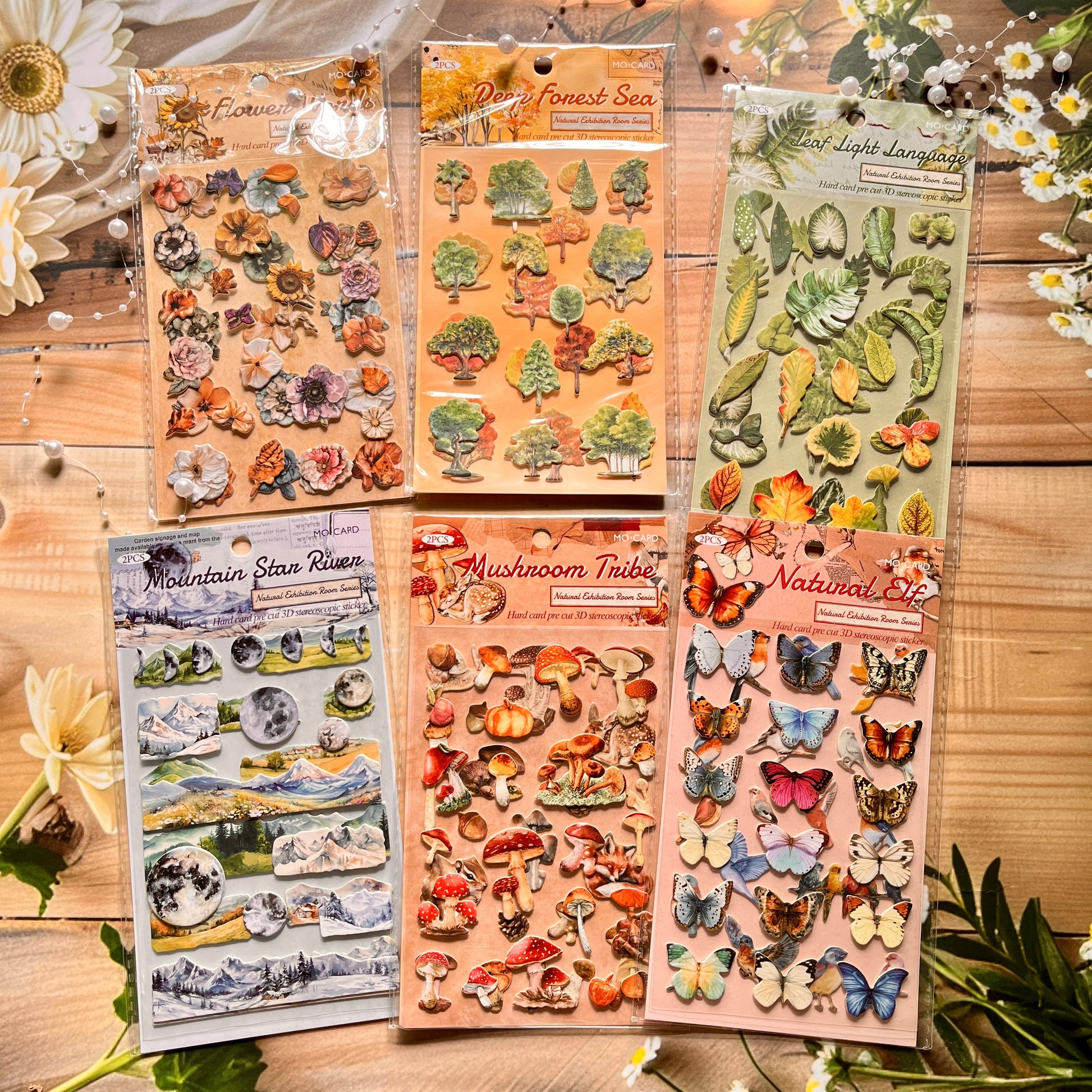 Designed with strong hard card material, they bring a touch of nature to any creation. Key Features Rich Nature Elements Inspired by the diversity of nature, these stickers feature flowers, butterflies, trees, mushrooms, and more, celebrating natural beauty.