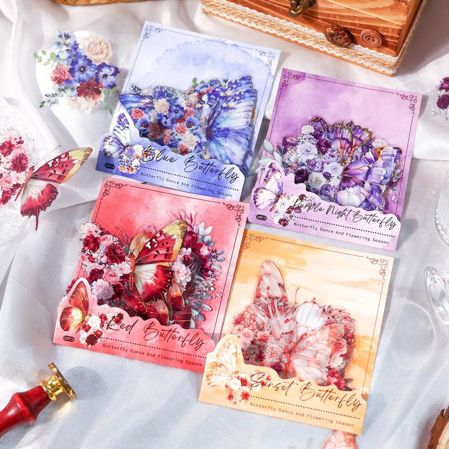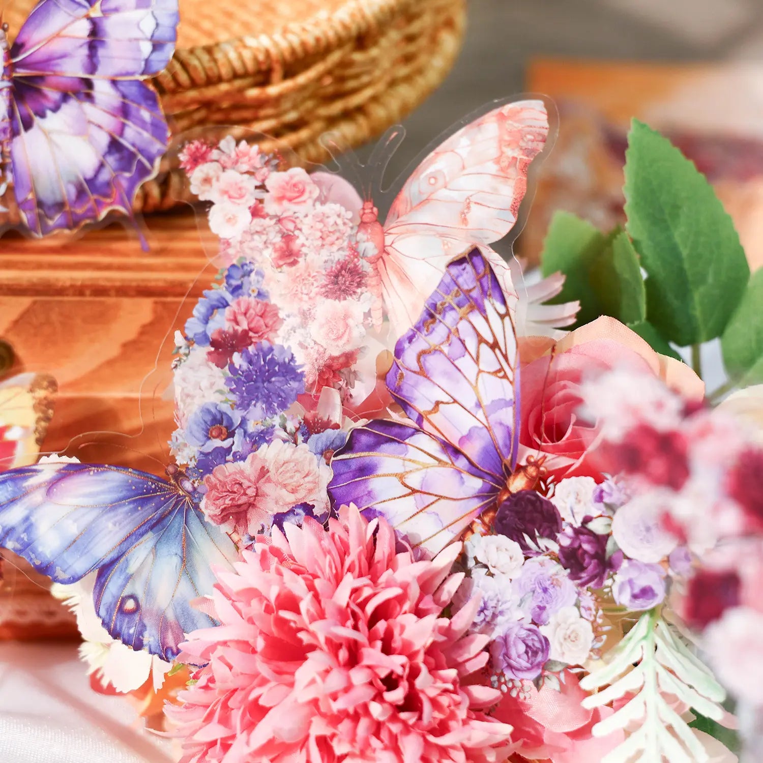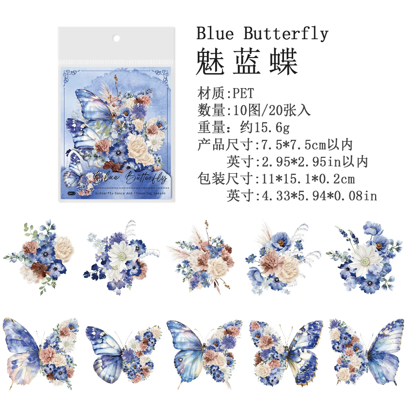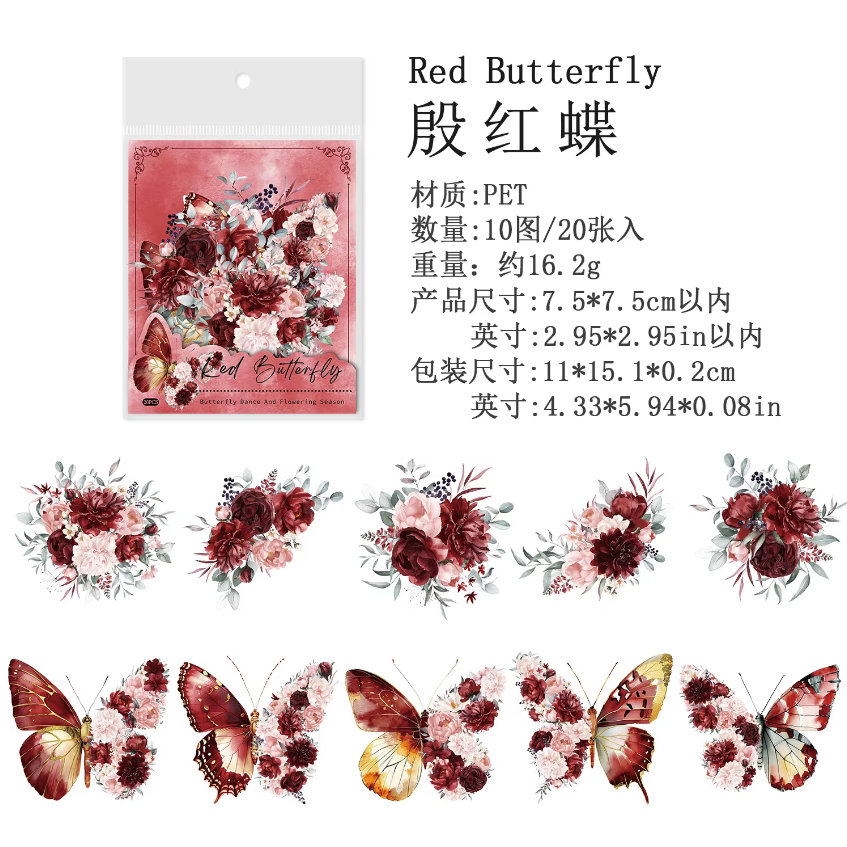 20 Pcs Butterfly Dance Flower Season Series Retro Fresh Butterfly Flower Decoration Stickers
