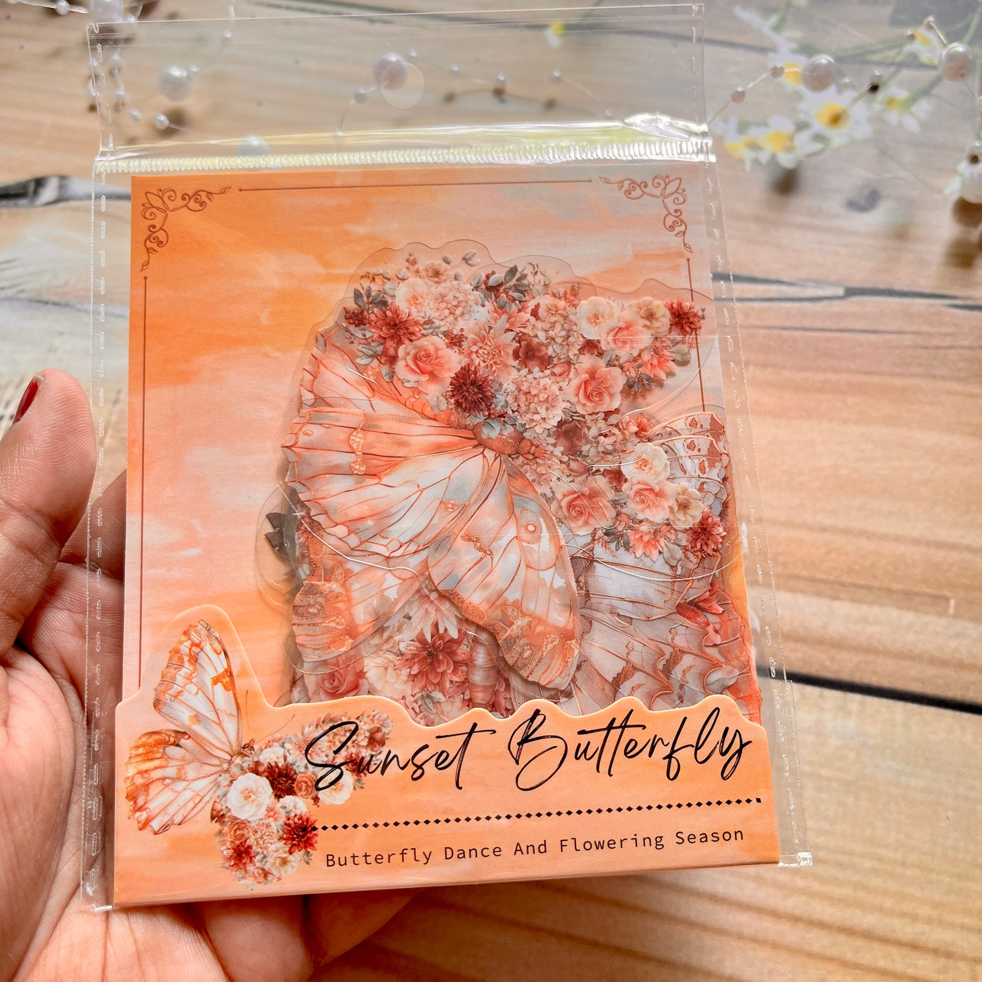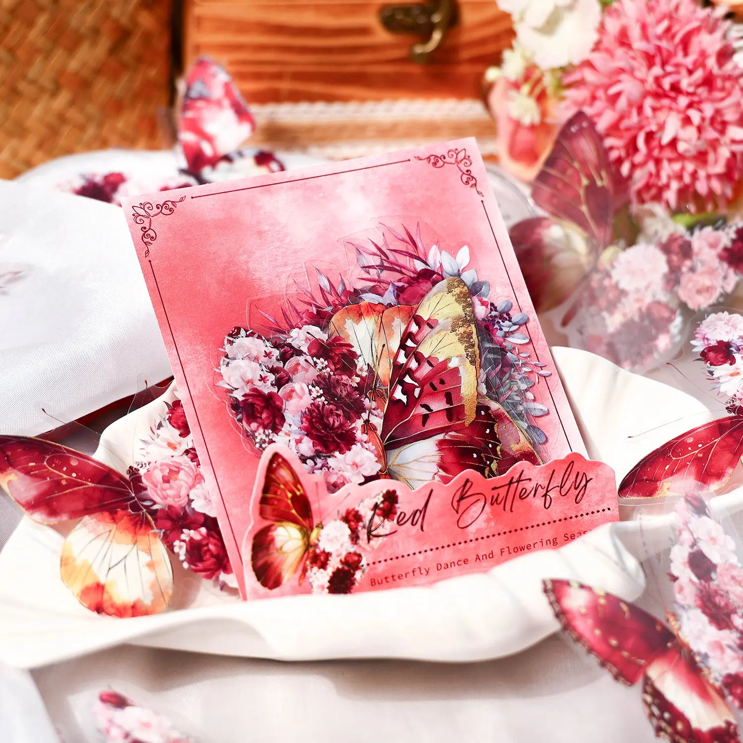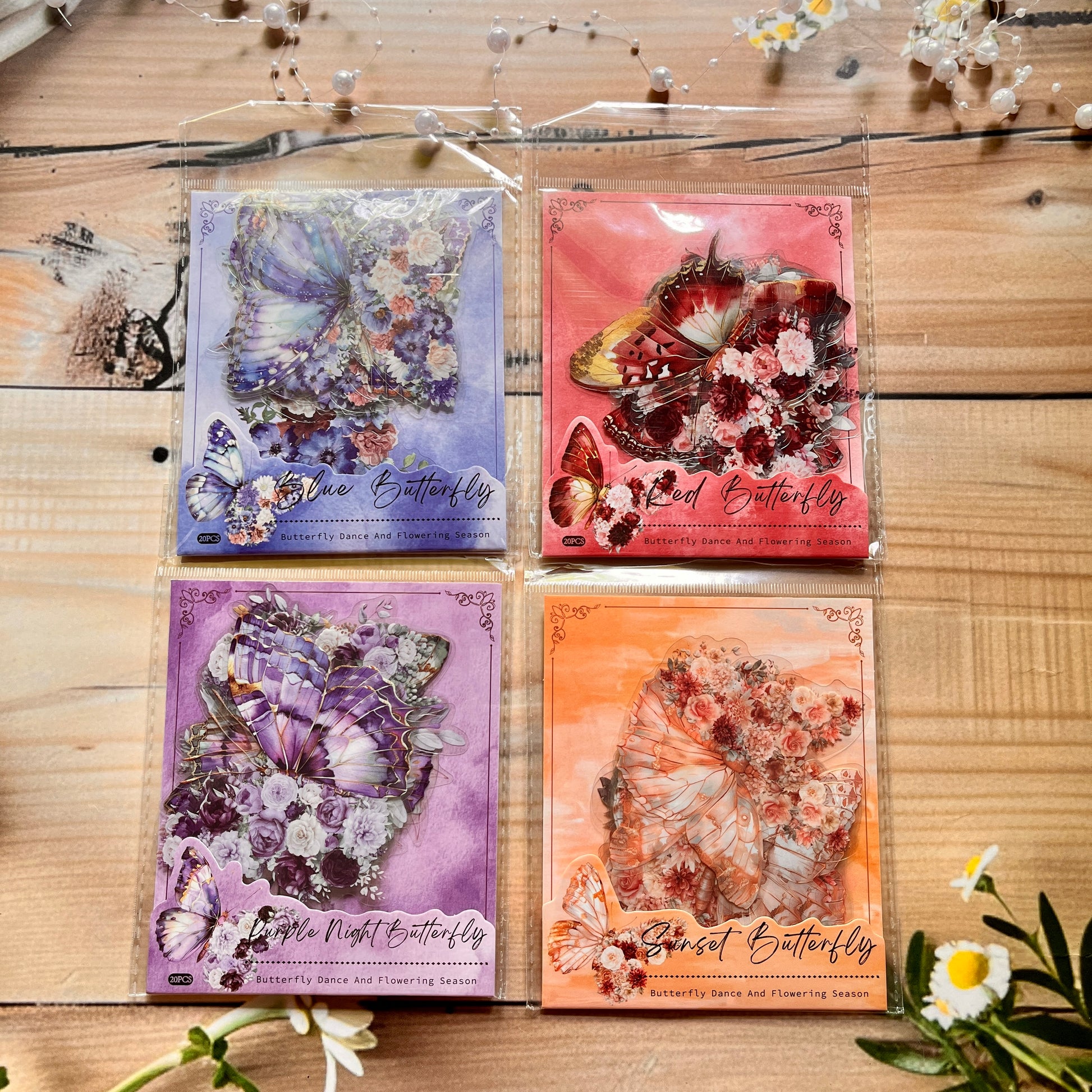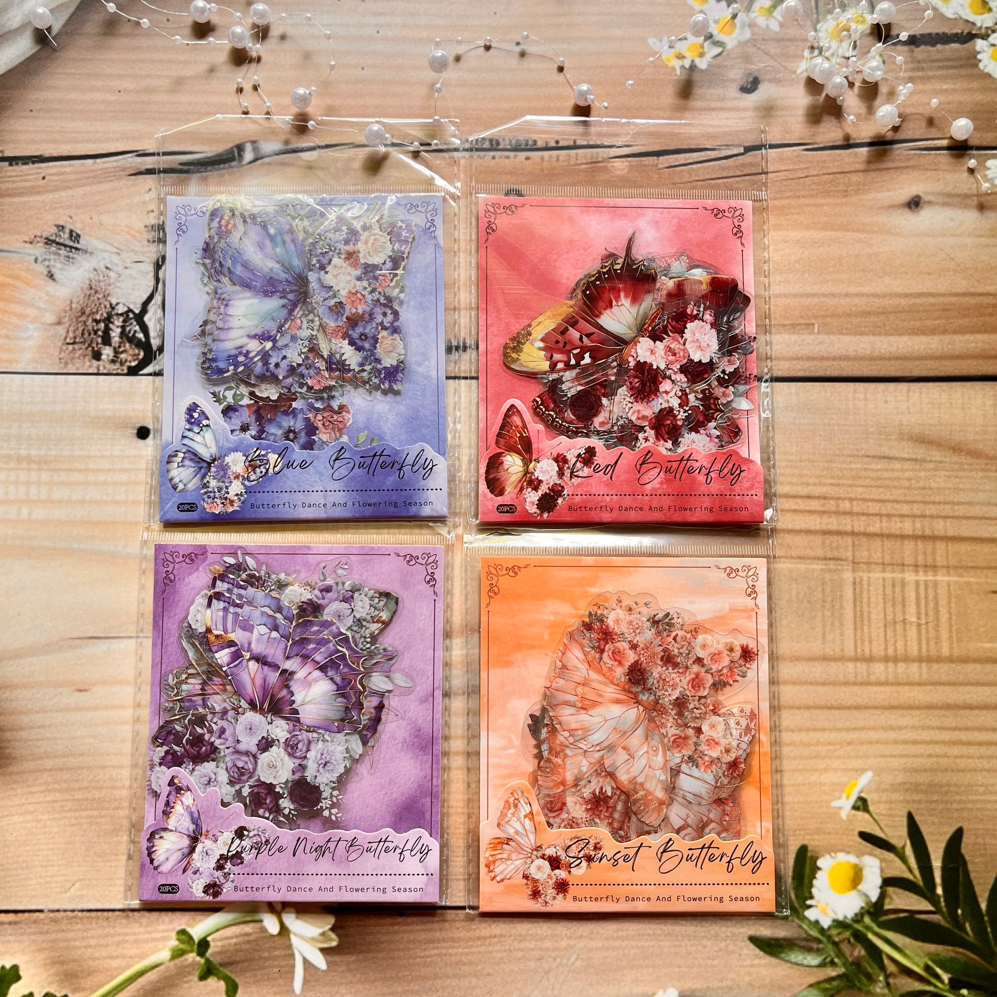 20 Pcs Butterfly Dance Flower Season Series Retro Fresh Butterfly Flower Decoration Stickers