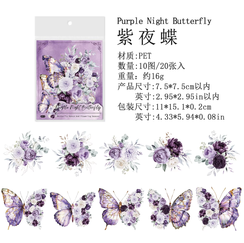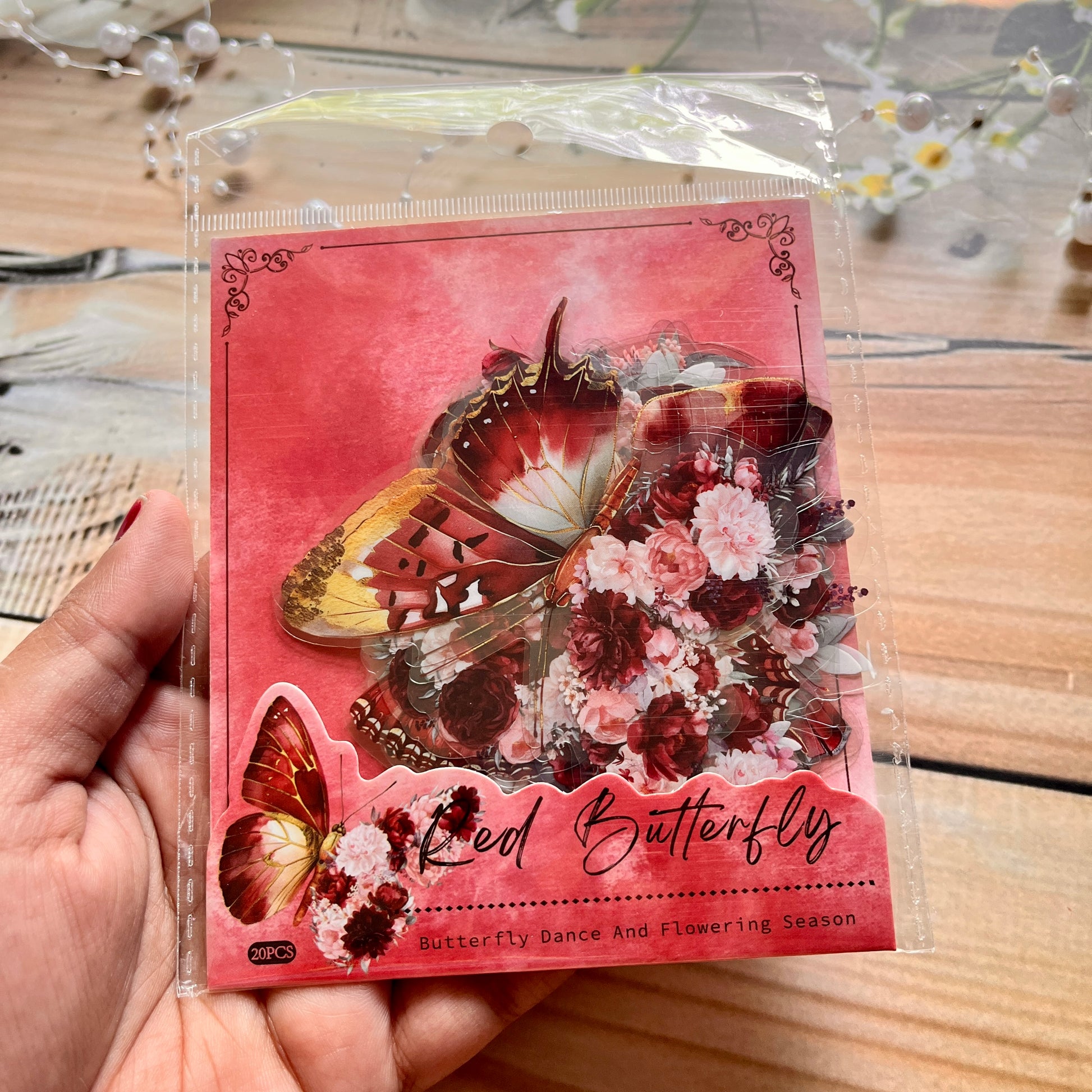 20 Pcs Butterfly Dance Flower Season Series Retro Fresh Butterfly stickers