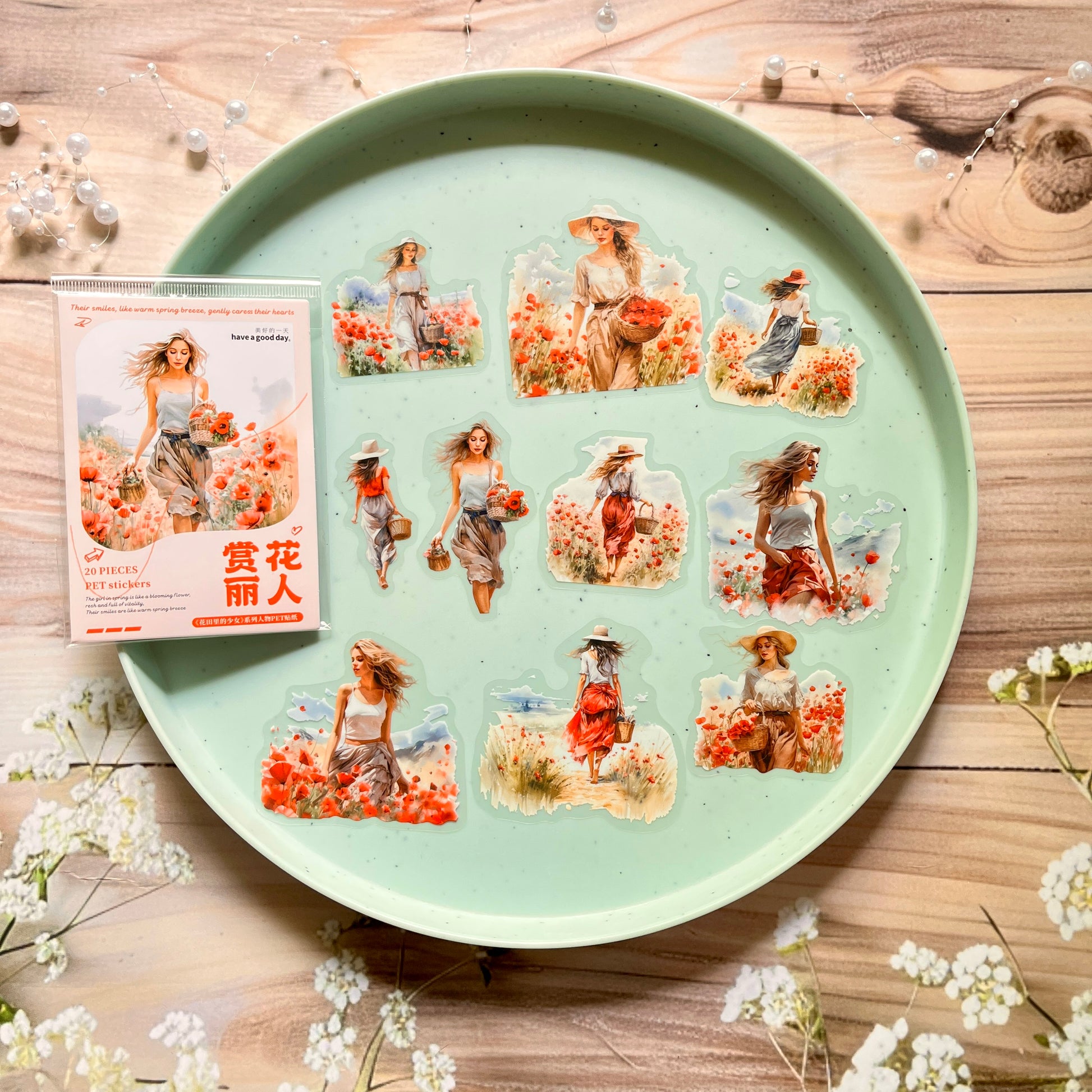 20 Pcs The Girl in The Flower Field Series Vintage Character Stickers