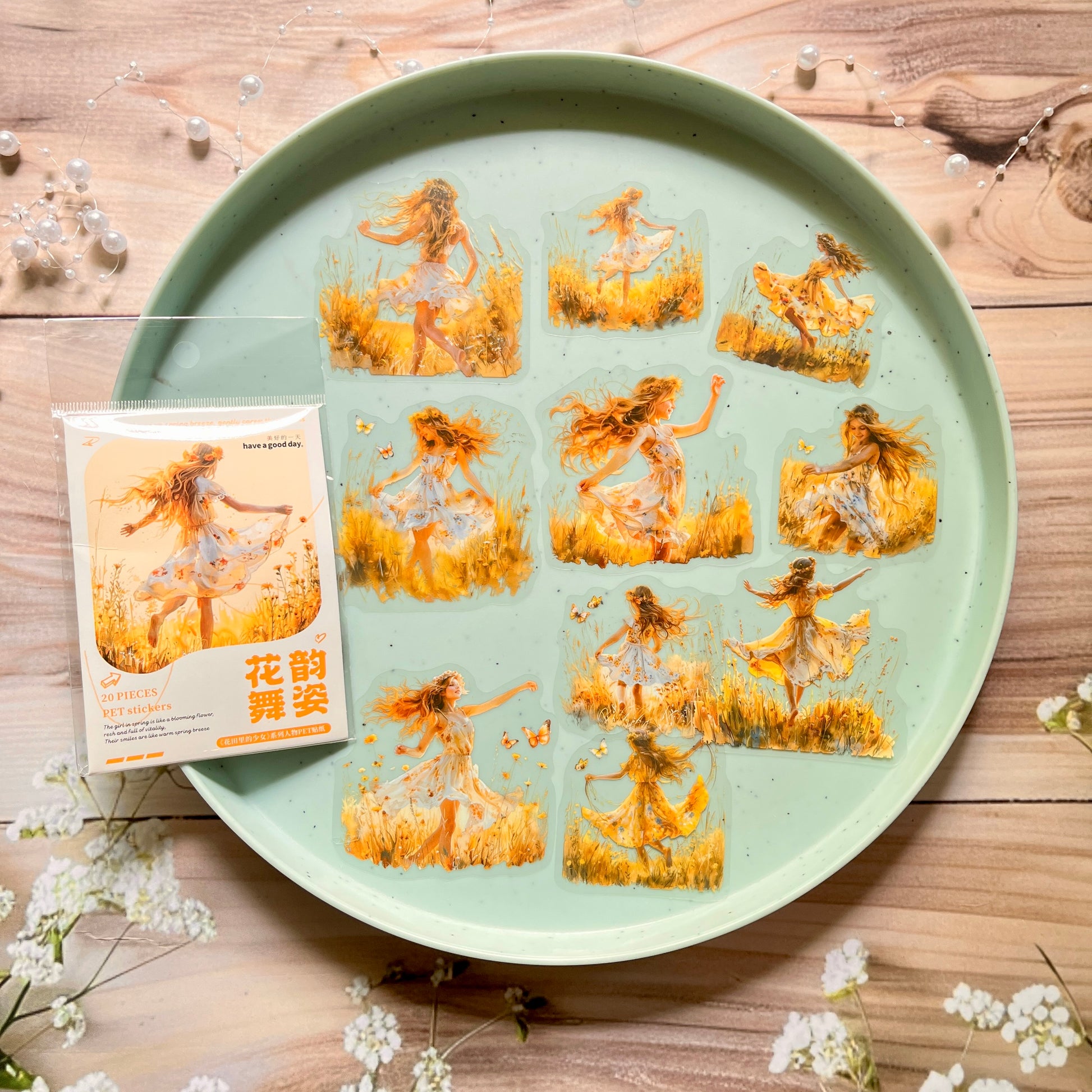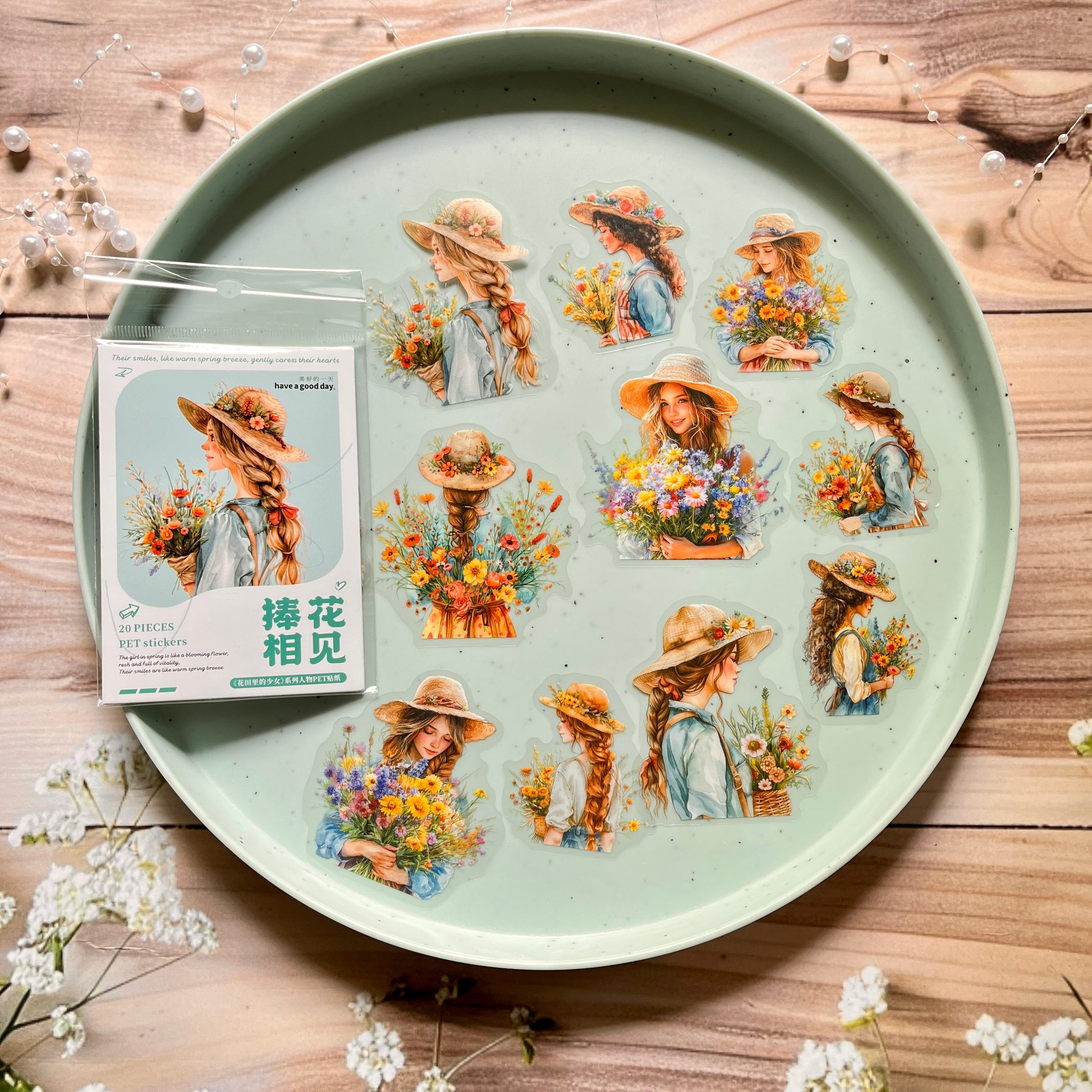 20 Pcs The Girl in The Flower Field Series Vintage Character Stickers for scrapbook