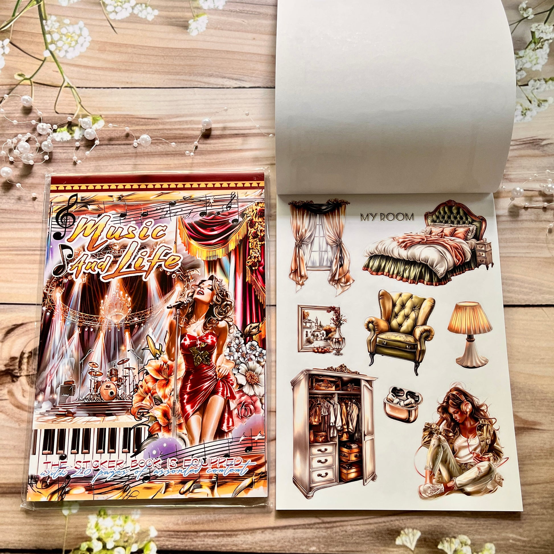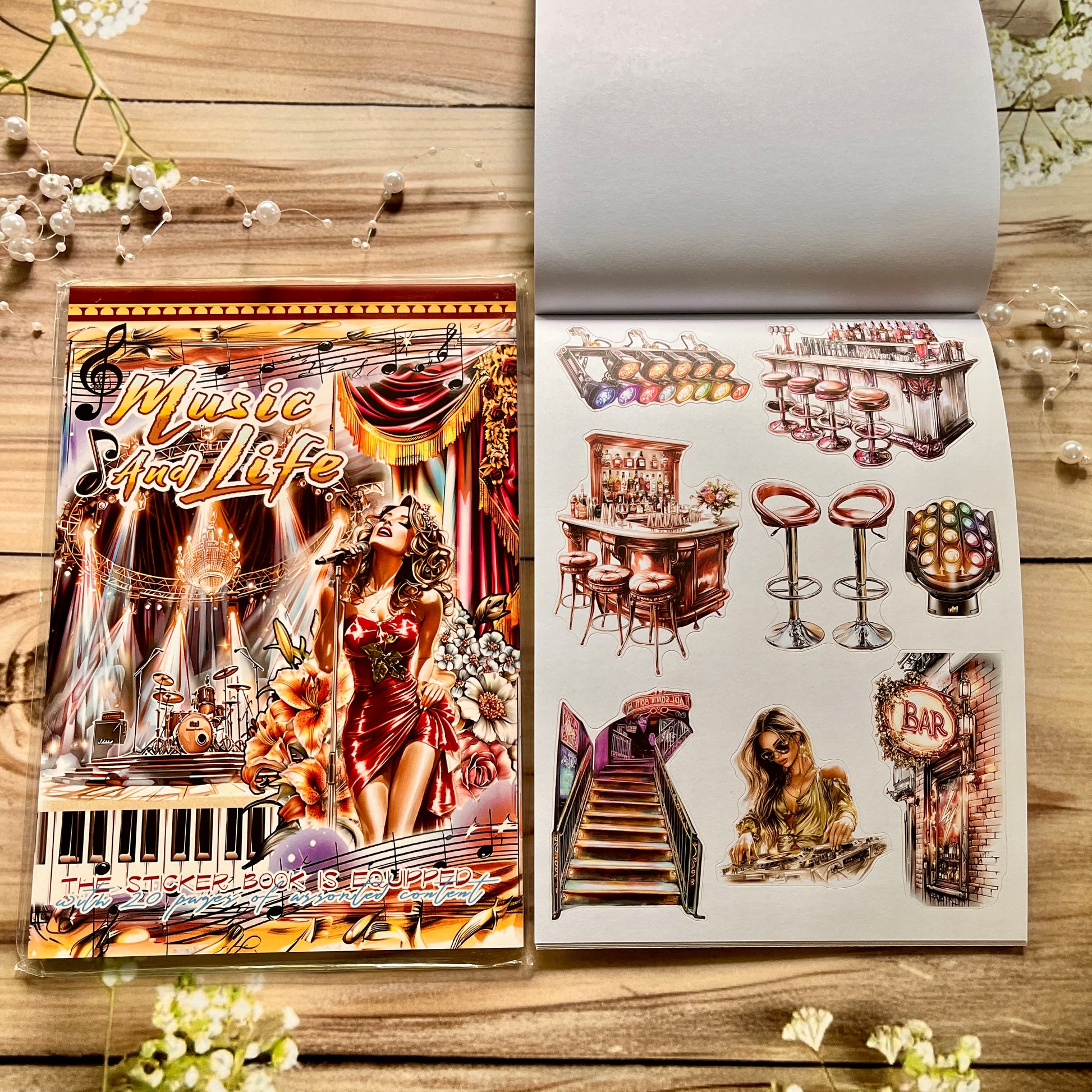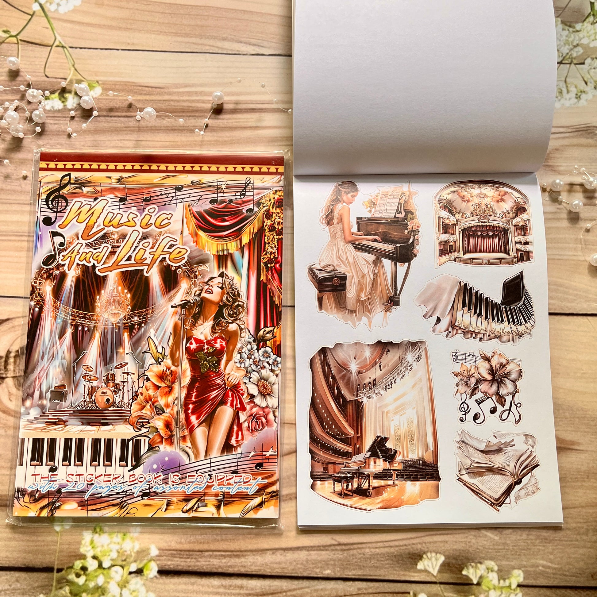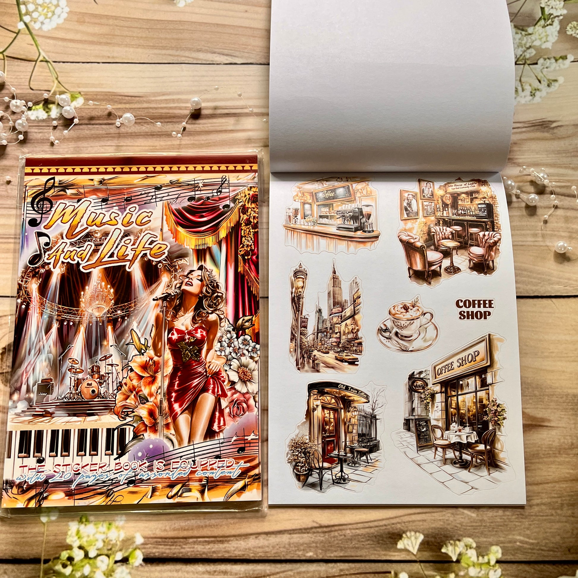 20 Sheets Retro Musical and Vintage Character Sticker Book