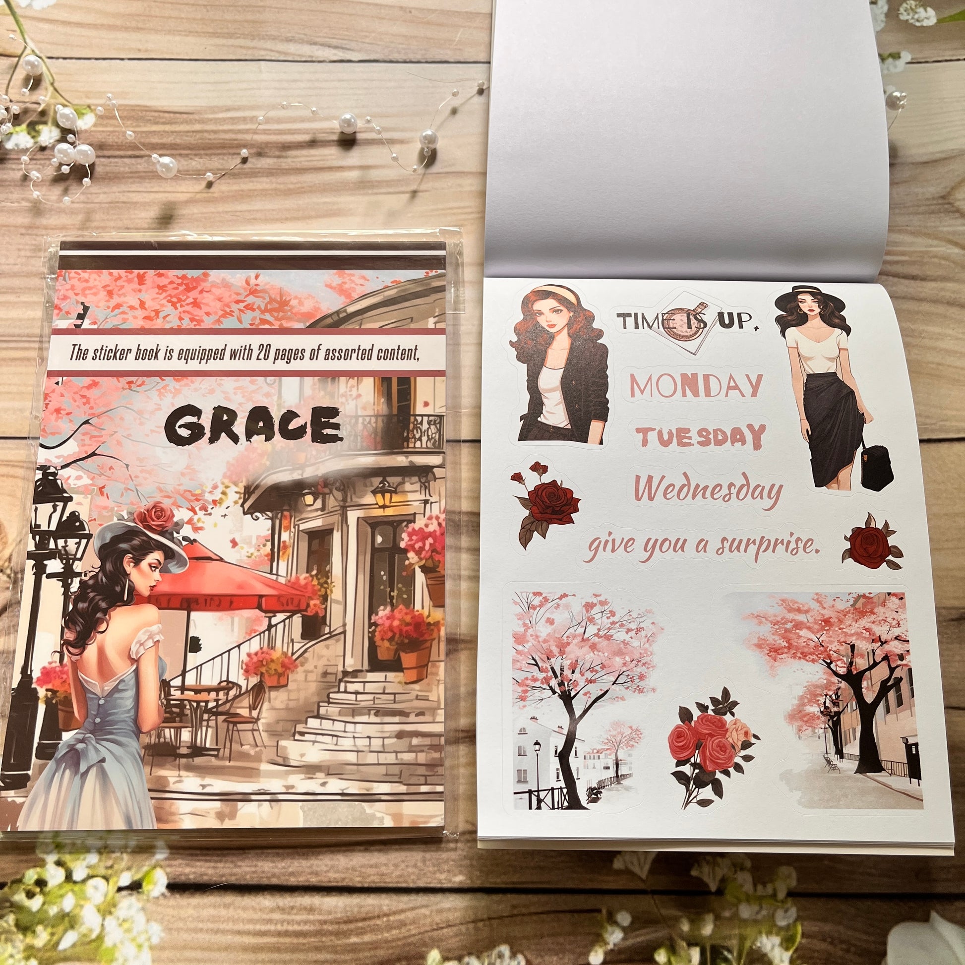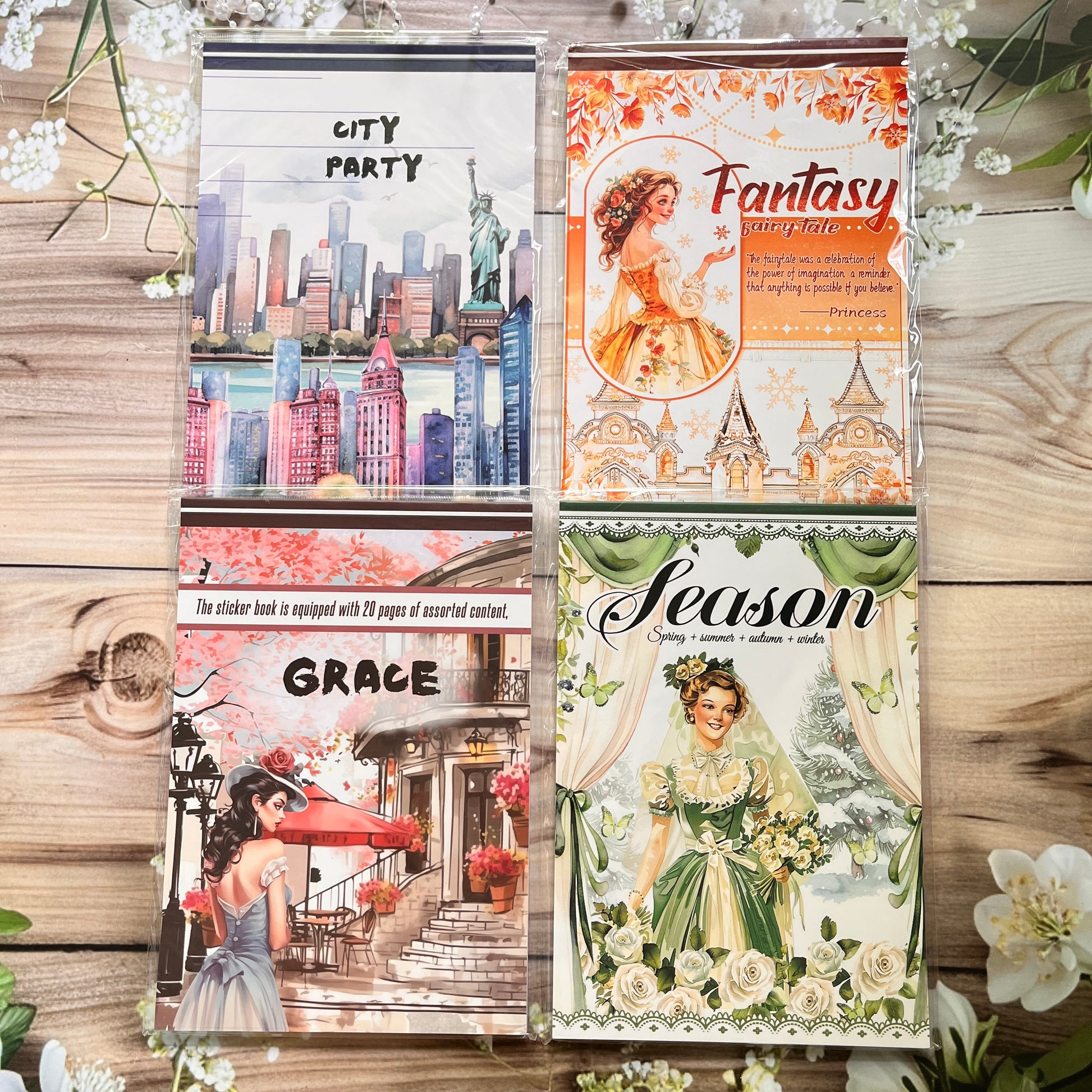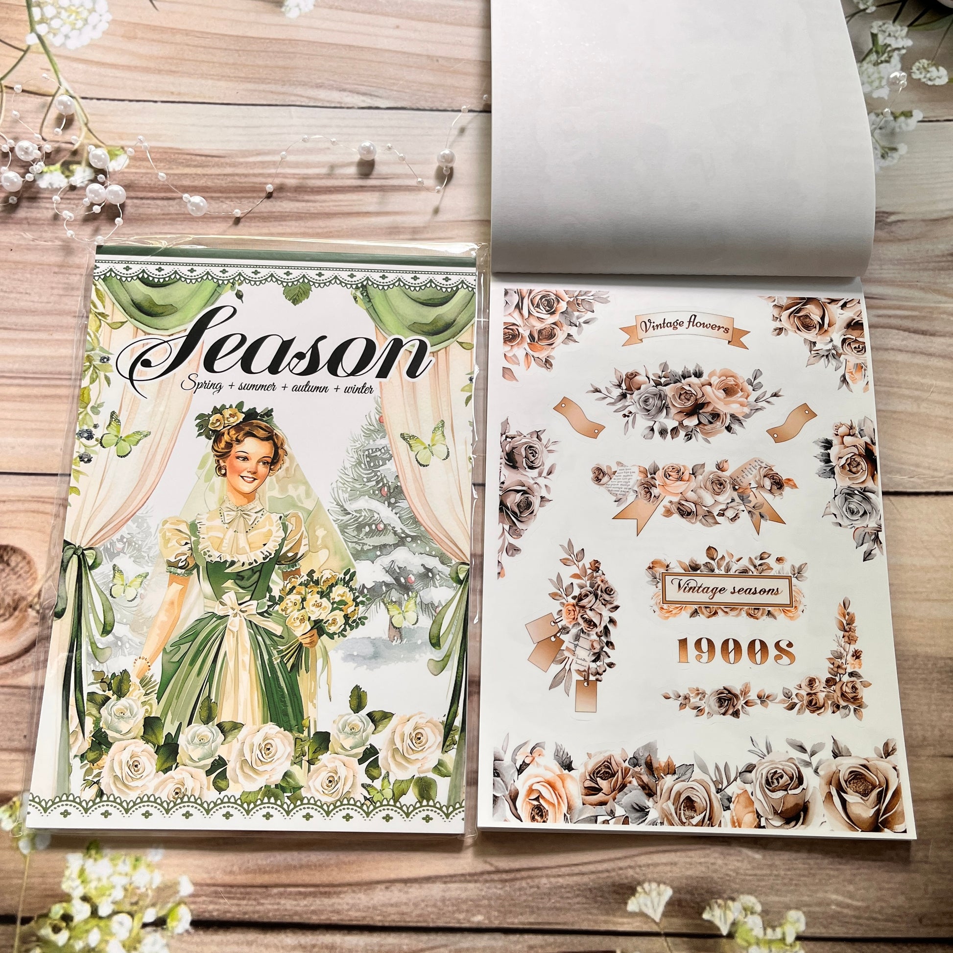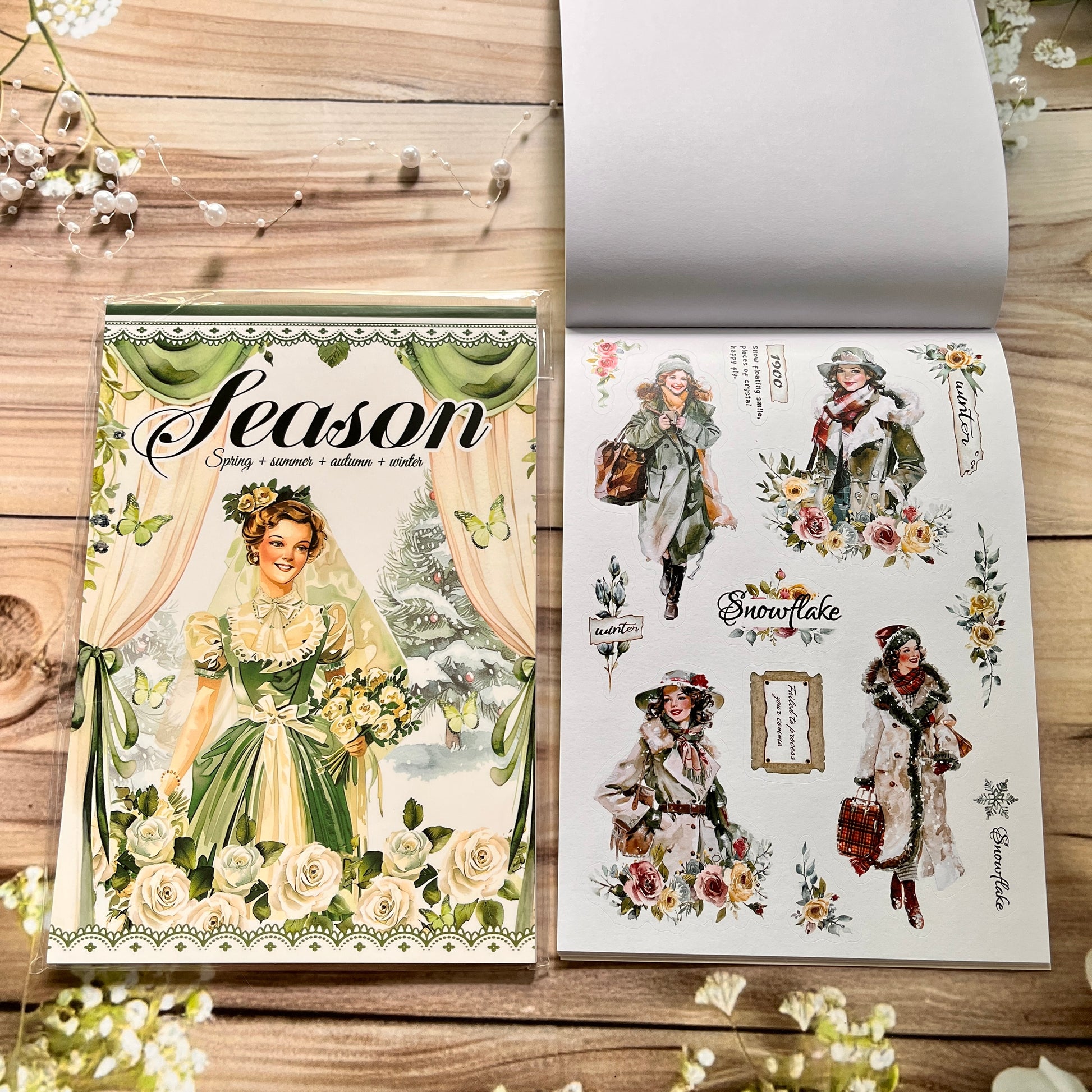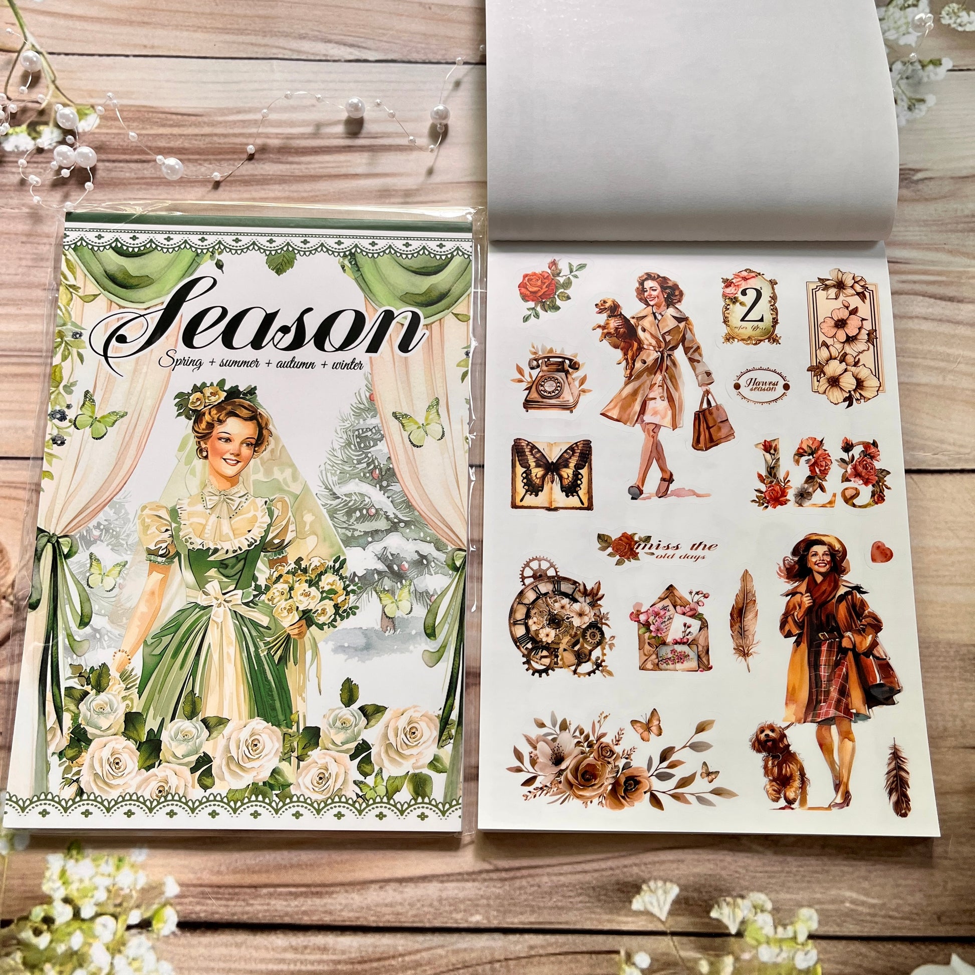 20 Sheets Vintage Character Flower Landscaping Sticker Book