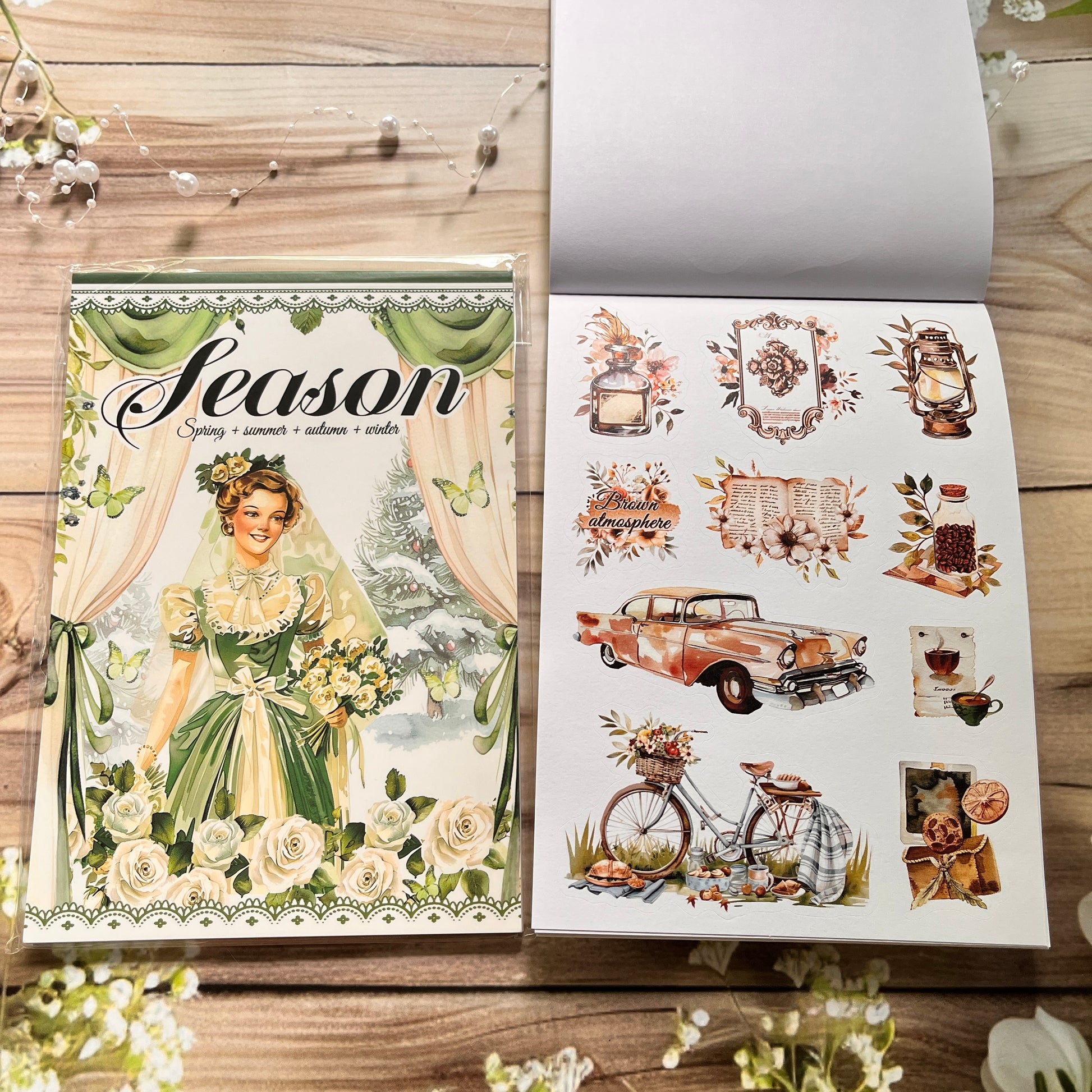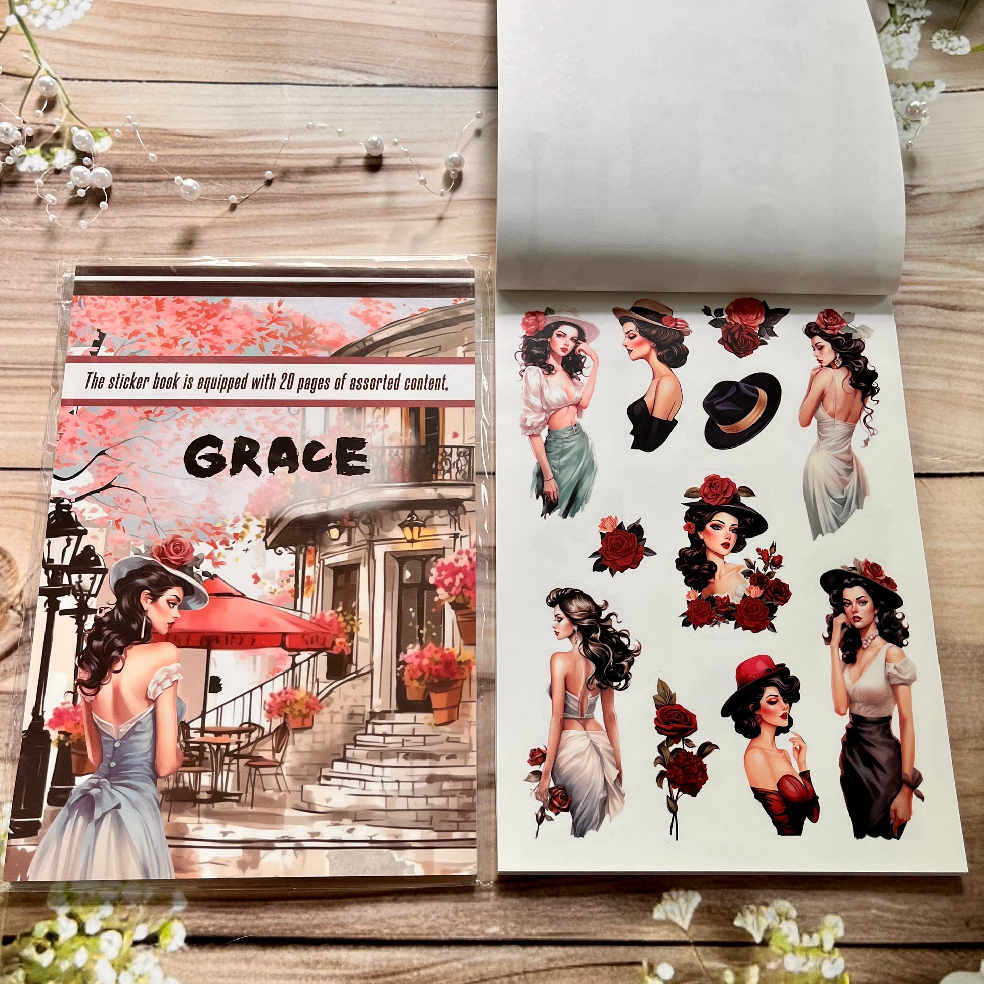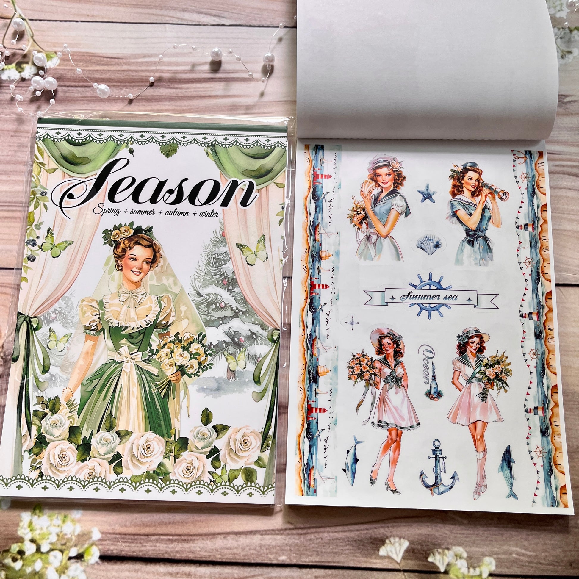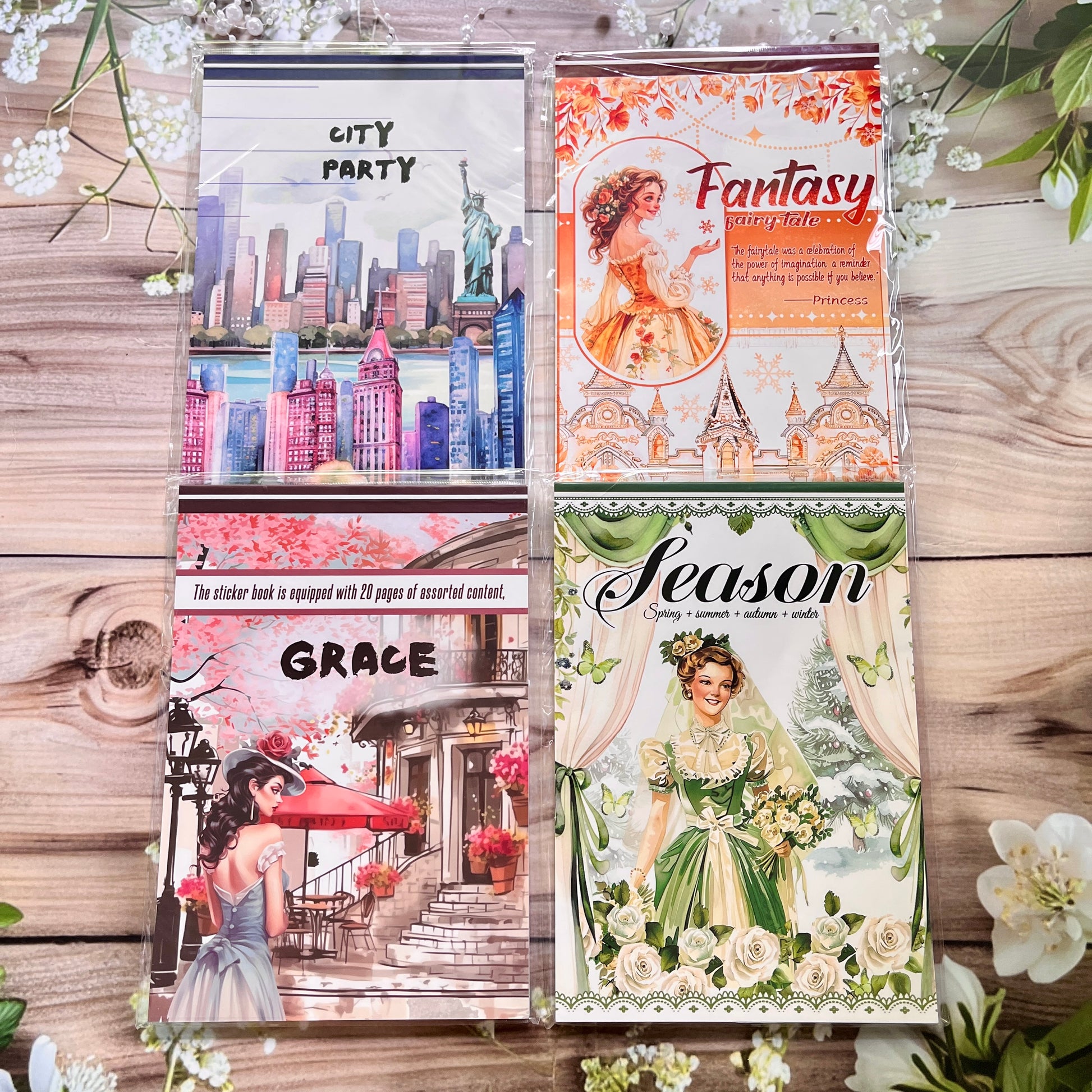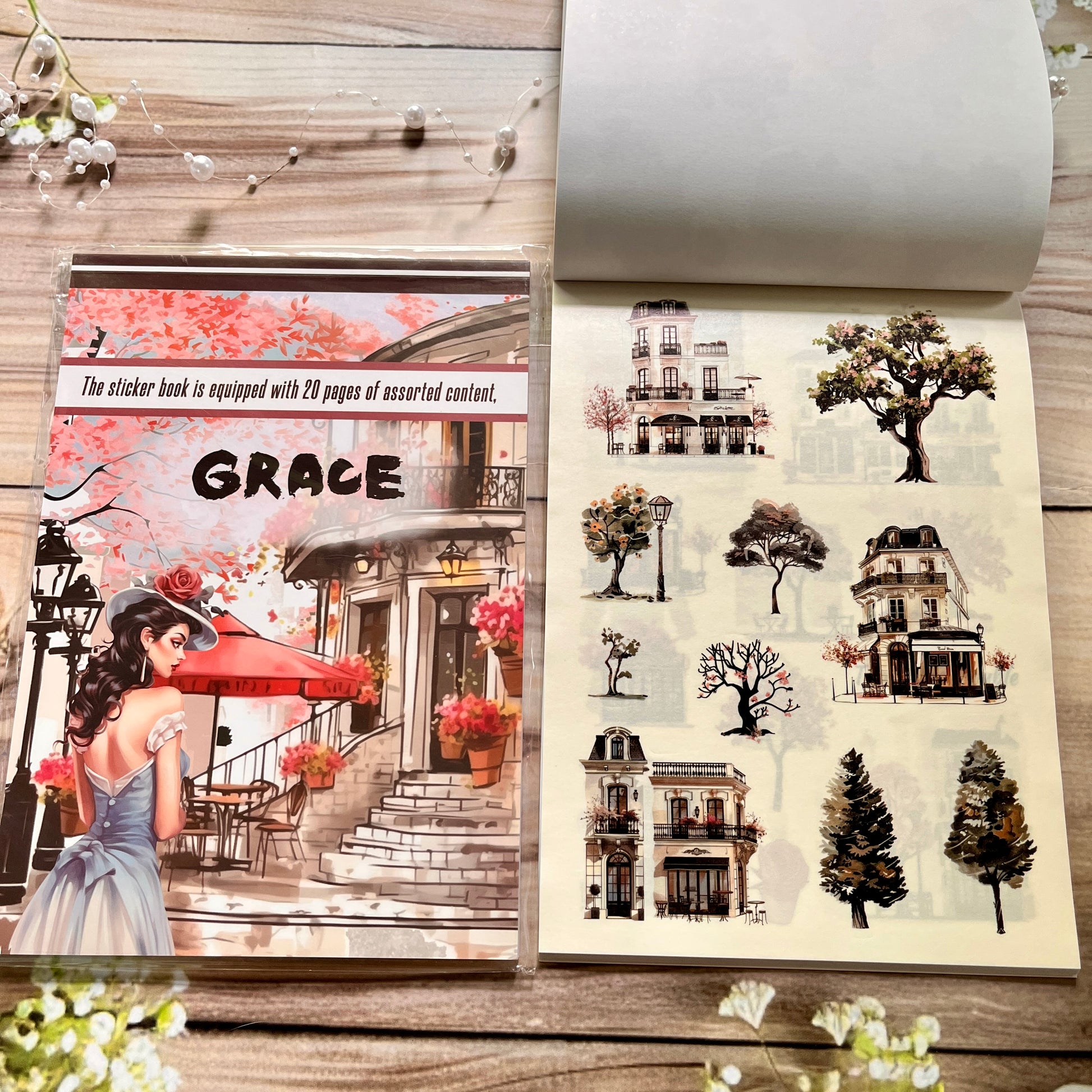 20 Sheets Vintage Character Flower Landscaping Sticker Book