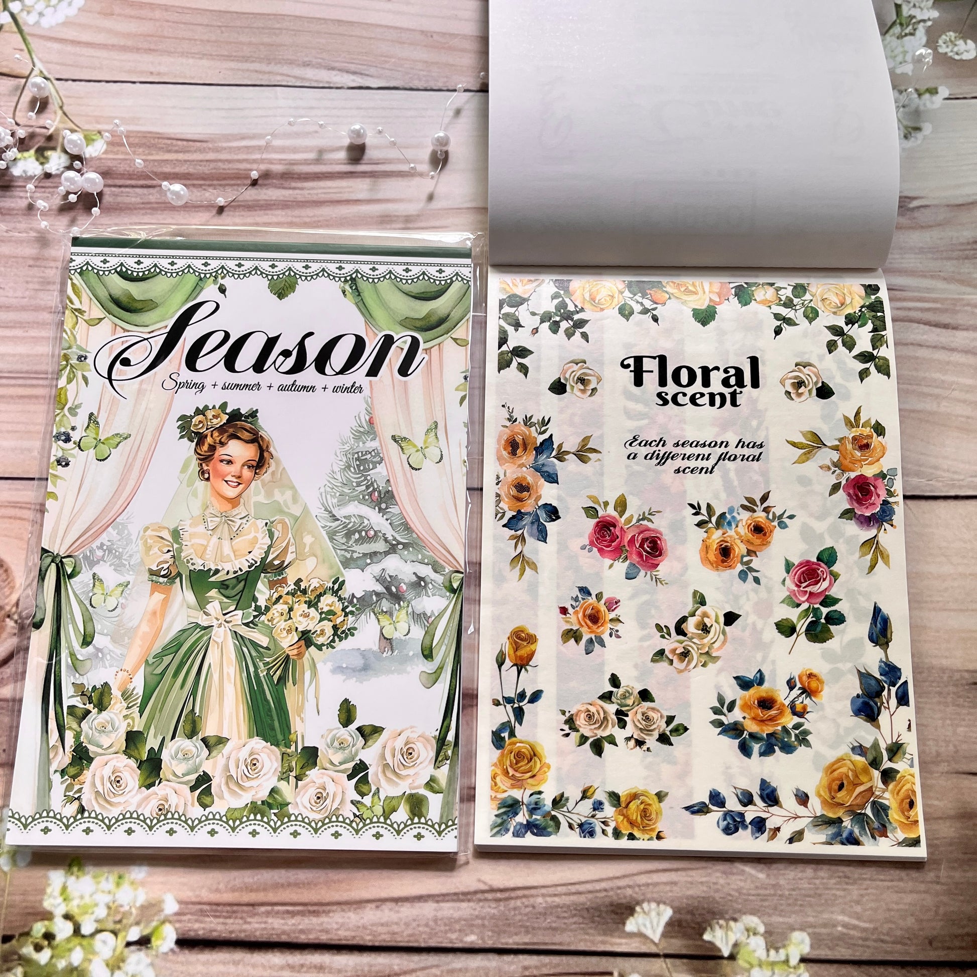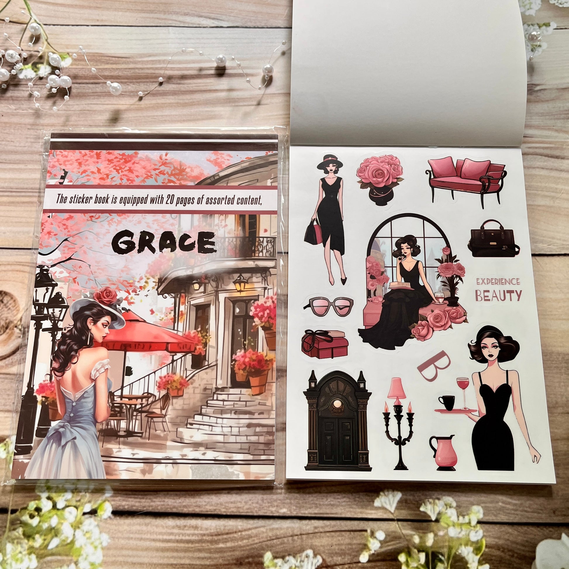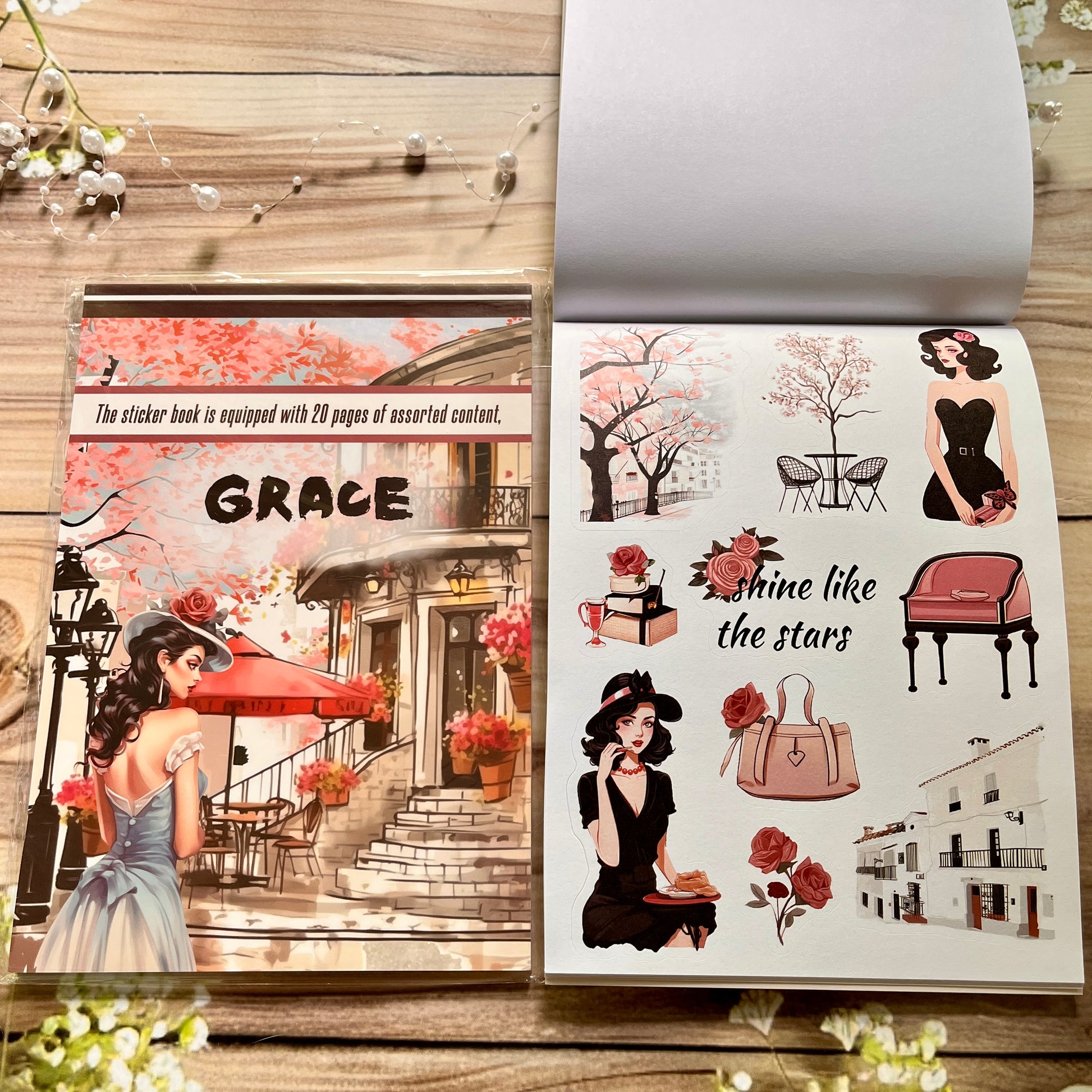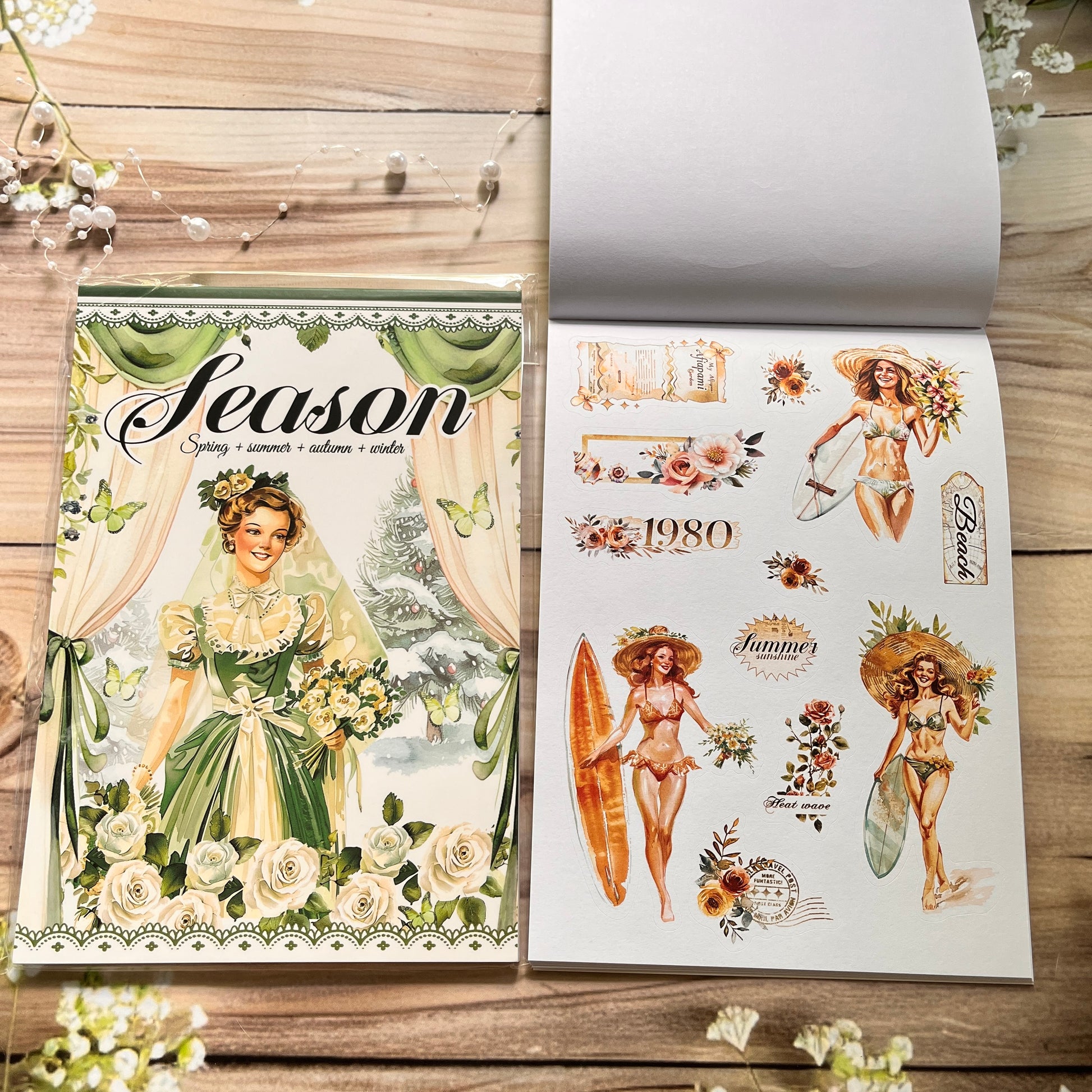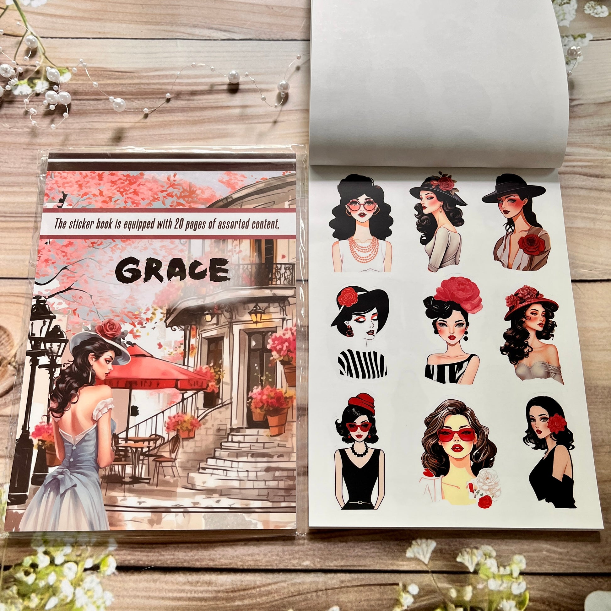 20 Sheets Vintage Character Flower Landscaping Sticker Book