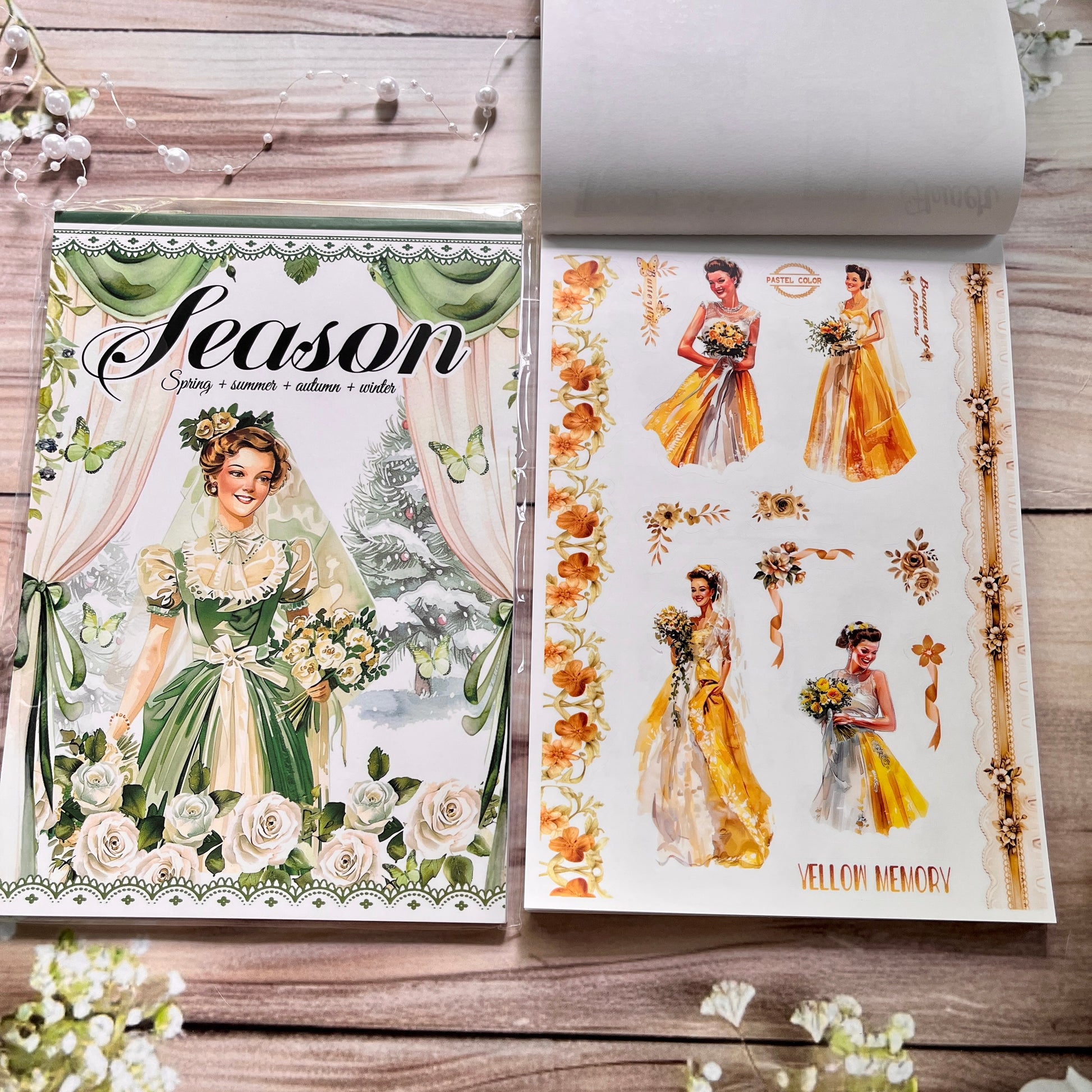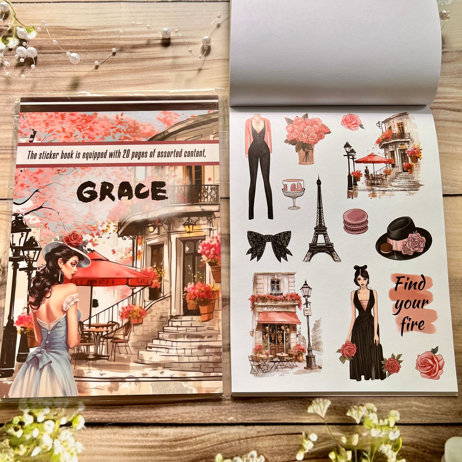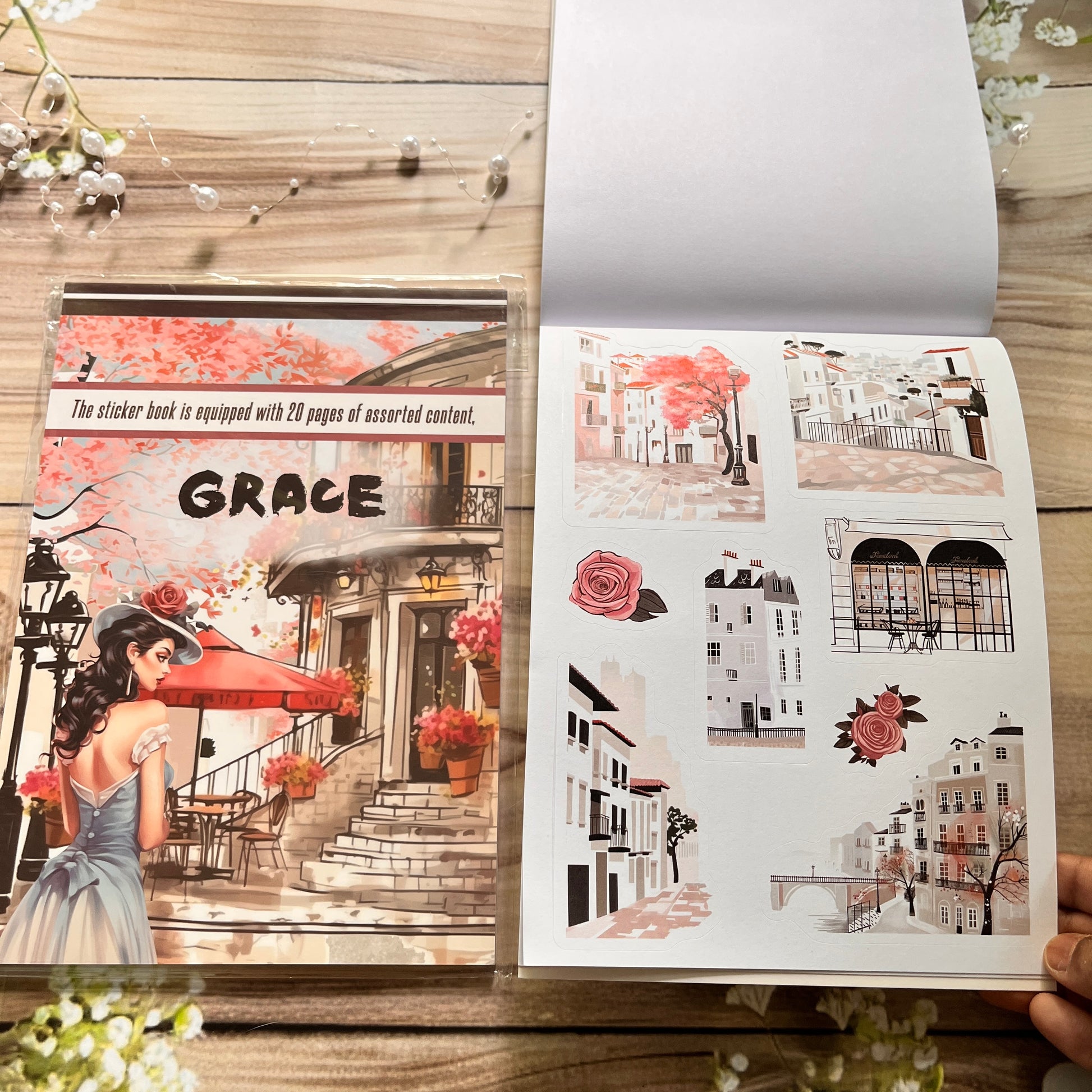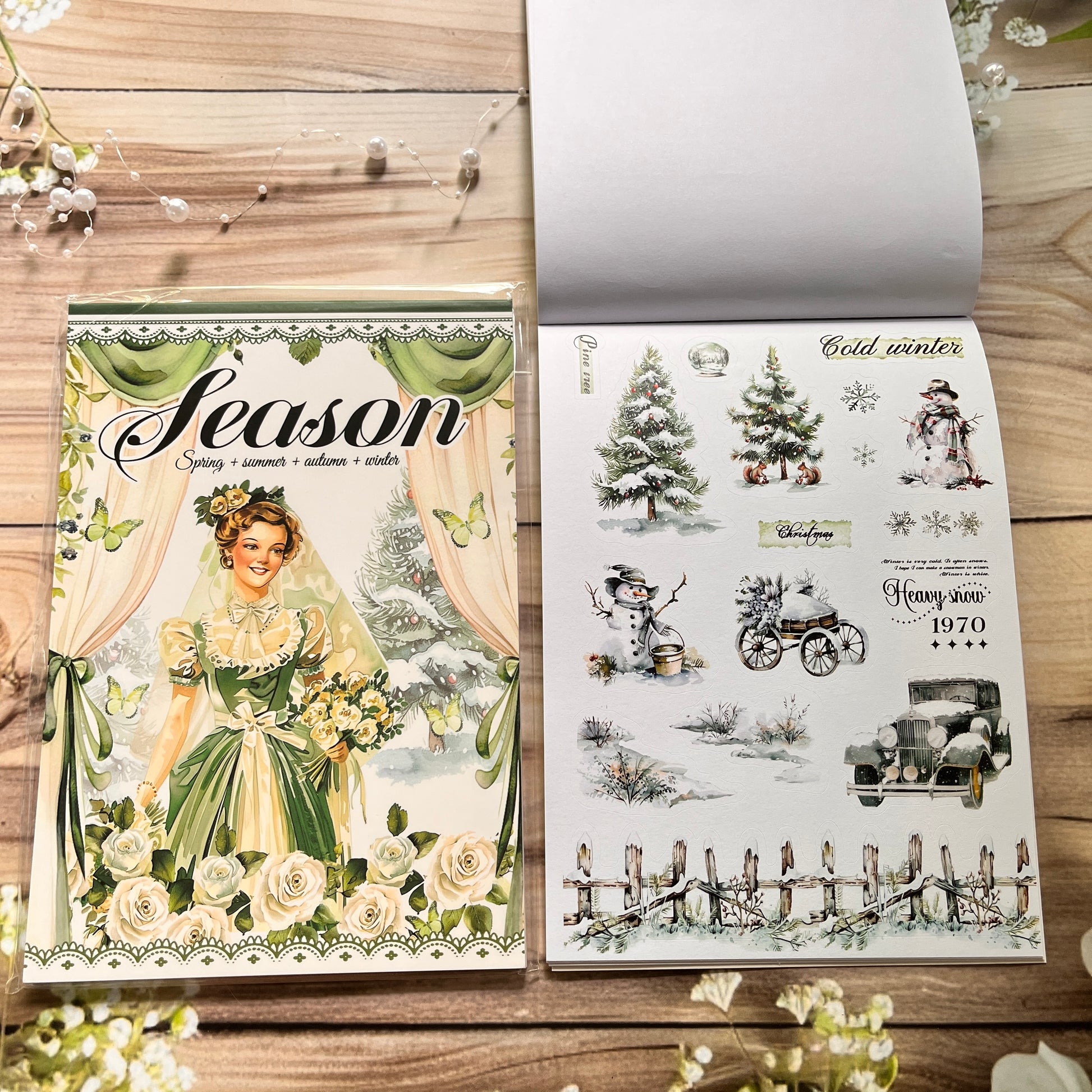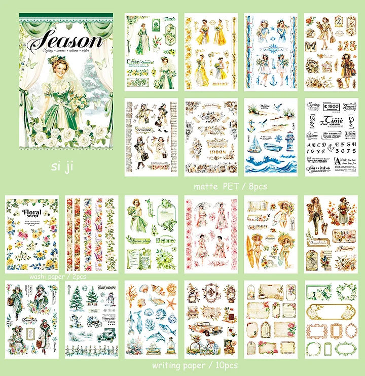20 Sheets Vintage Character Flower Landscaping Sticker Book