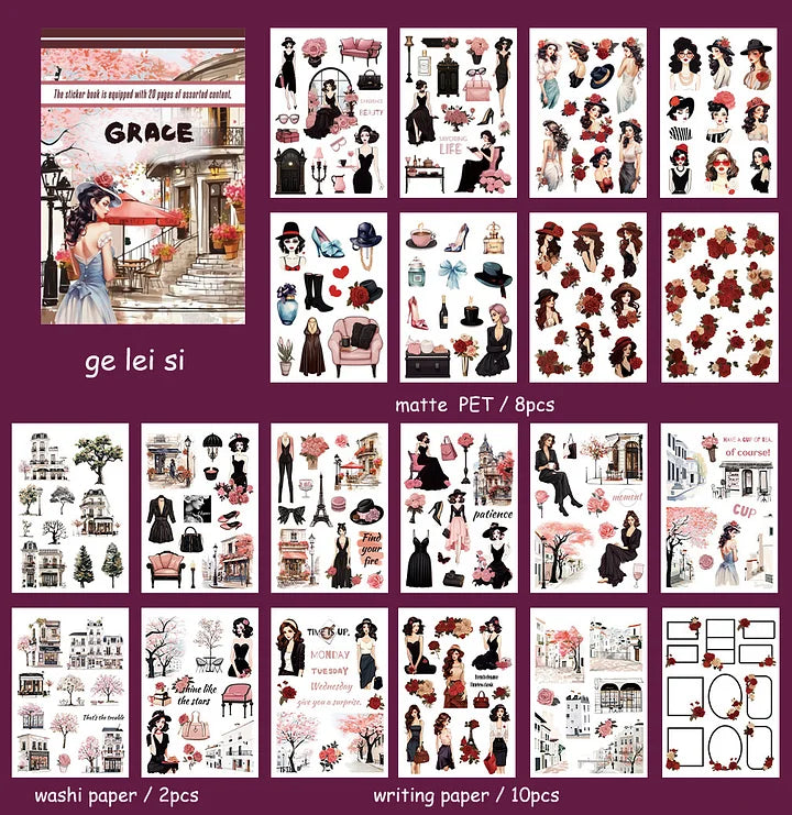 Discover the elegance of the 20 Sheets Vintage Character Flower Landscaping Sticker Book, featuring a refined collection of seasonal, fantasy, grace, and city-themed designs. Each sheet offers intricate illustrations that bring a timeless charm to your creative projects, perfect for adding a sophisticated touch to scrapbooks, journals, or planners. Elevate your artistic expression with these carefully curated stickers that blend vintage aesthetics with versatile themes.