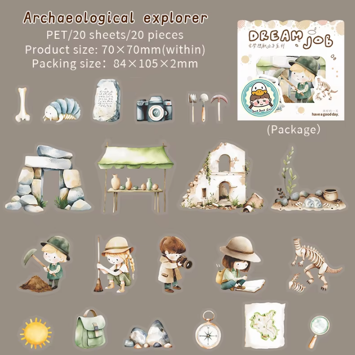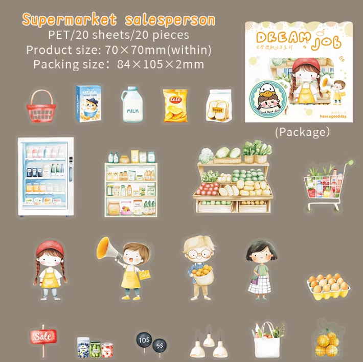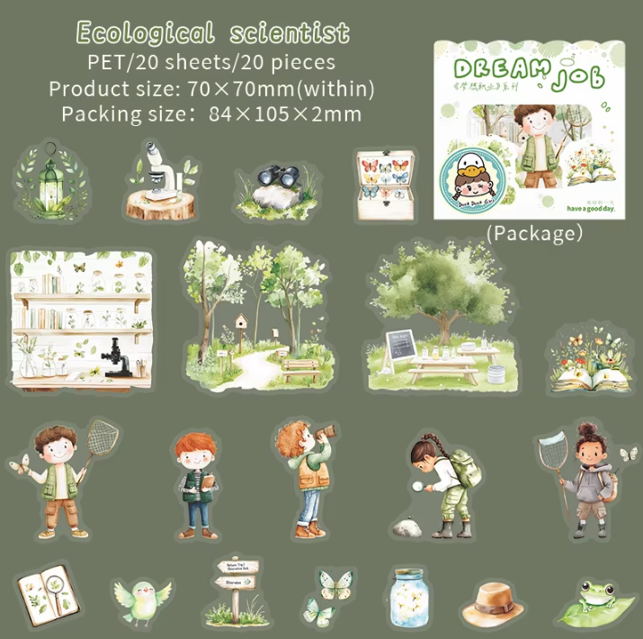 20pcs Dream Career Series Character Scenography PET Stickers