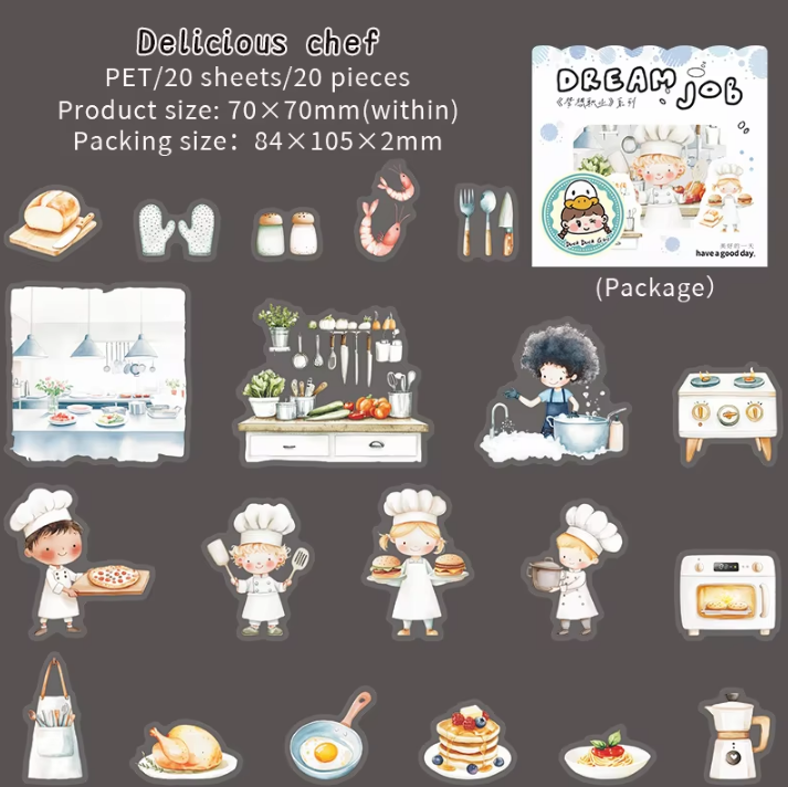 Enhance your creative projects with this elegant set of 20 Dream Career Series Character Scenography PET Stickers. Crafted from durable PET material, these stickers offer vivid designs that bring inspiring career themes to life. Perfect for scrapbooking, journaling, or personalized crafts, they add a refined touch to your artistic expression.