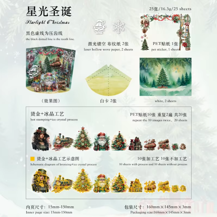 25 Pcs per pack Starlight Christmas Island series Christmas theme handbook DIY material decorations sticker pack