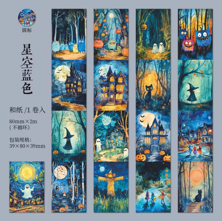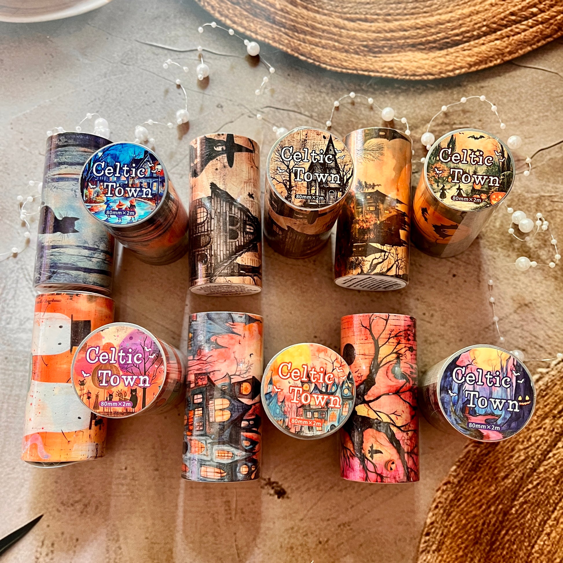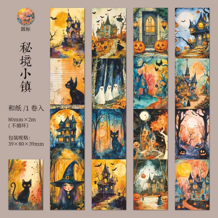 Transform your creative projects with this enchanting 2M Roll Celtic Town Series Washi Tape. Featuring a captivating dark background adorned with intricate Celtic-inspired town designs, this retro-styled tape brings vintage charm to gift wrapping, crafts, and DIY decorations. The generous 2-meter length offers plenty of material for multiple projects, while the authentic washi paper construction ensures easy tearing and repositionable application.
