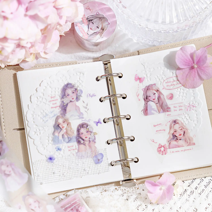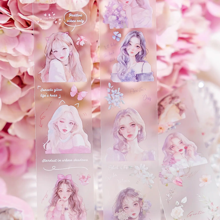 Introducing 2M/Roll Heartbeat Paradise Series Character Matte PET Tape for journaling. Get creative with this unique, high-quality tape featuring a charming character design. Made from durable, matte PET material, it adds a touch of whimsy to any journal or scrapbook. Perfect for crafters, hobbyists, and journal enthusiasts.