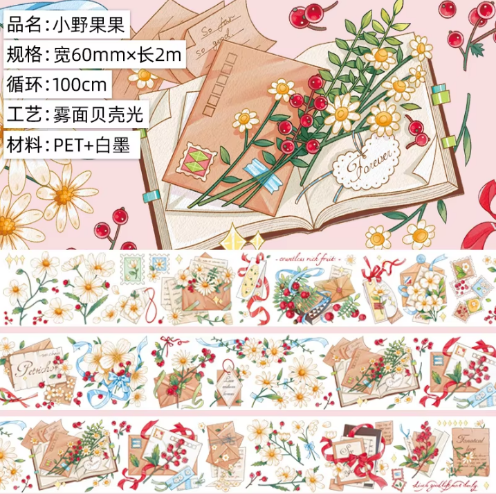 This 2M roll of Little Wild Fruit Matte pet Tape is the perfect addition to any journaling project. The matte finish provides a subtle touch, while the length allows for extended use. Get creative and add a burst of color and design to your journal pages with this versatile pet tape.