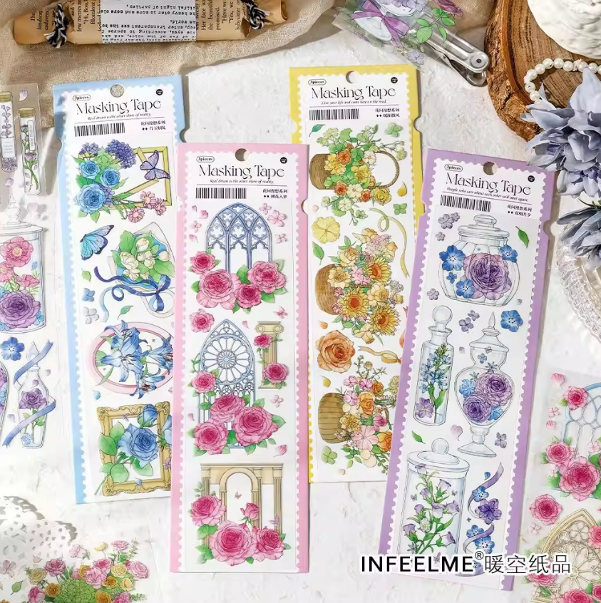 Add a touch of whimsy to your crafts with the Flower Diary Series Flower Handbook Decoration Material. This pack includes 3 sheets of PET adhesive tape, perfect for adding a fun floral accent to your journals, scrapbooks, and other projects. Let your creativity bloom with this quirky and playful addition to your crafting supplies!