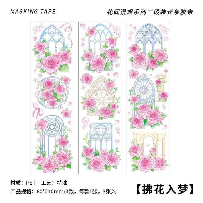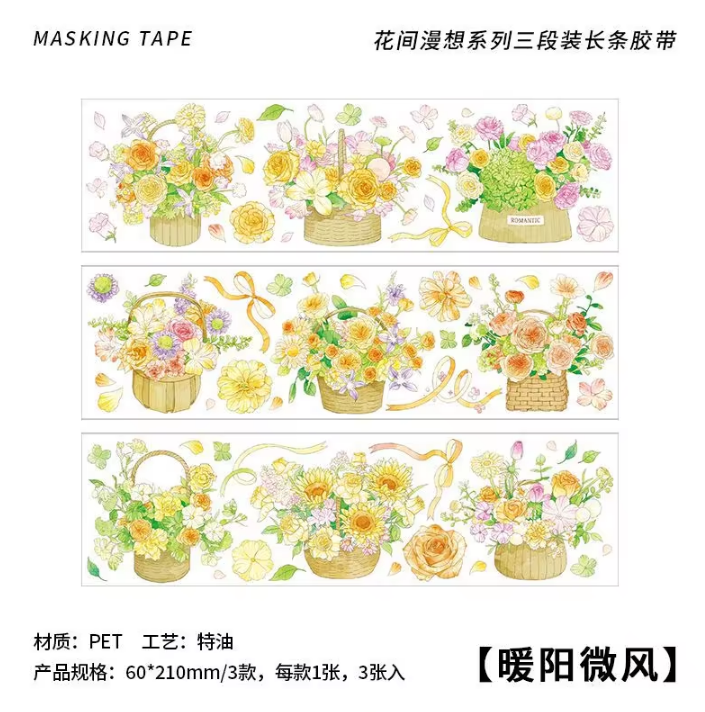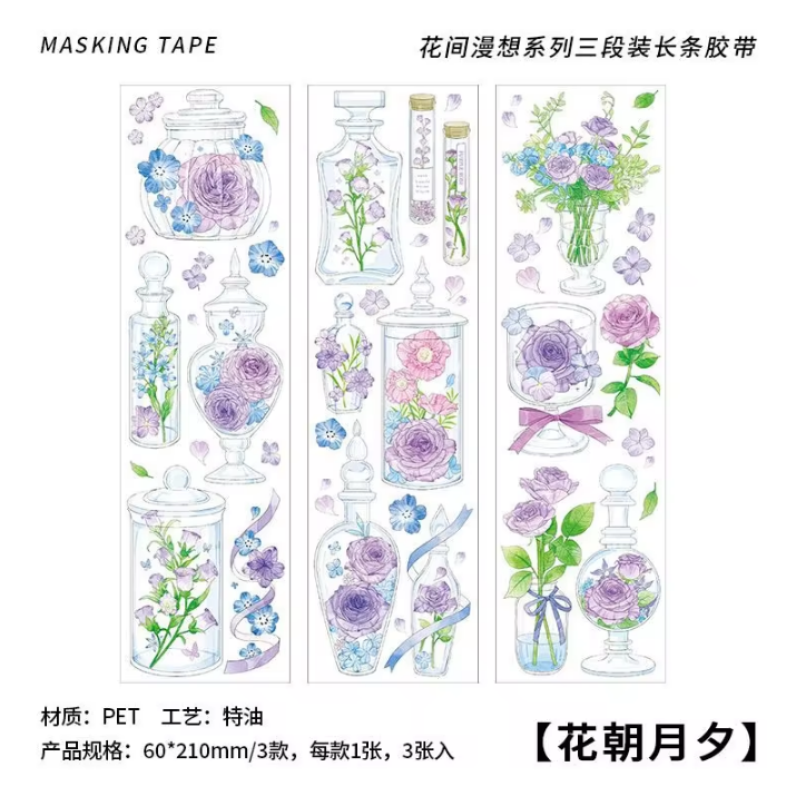 3 sheets/pack PET adhesive tape Flower Diary Series Flower Handbook Decoration Material