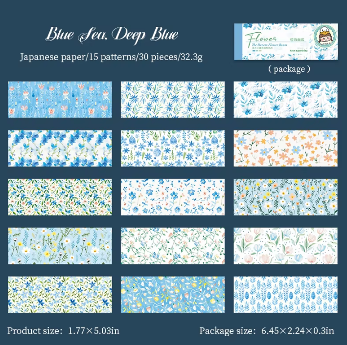 Introducing 30pcs Dreams of Flowers Series Blue Sea Floral Theme stickers booklet. Perfect for scrapbooking and journaling enthusiasts. These high-quality stickers feature a beautiful blue sea floral design that will bring your memories to life. Add a touch of personality and creativity to your projects with these elegant and versatile stickers.