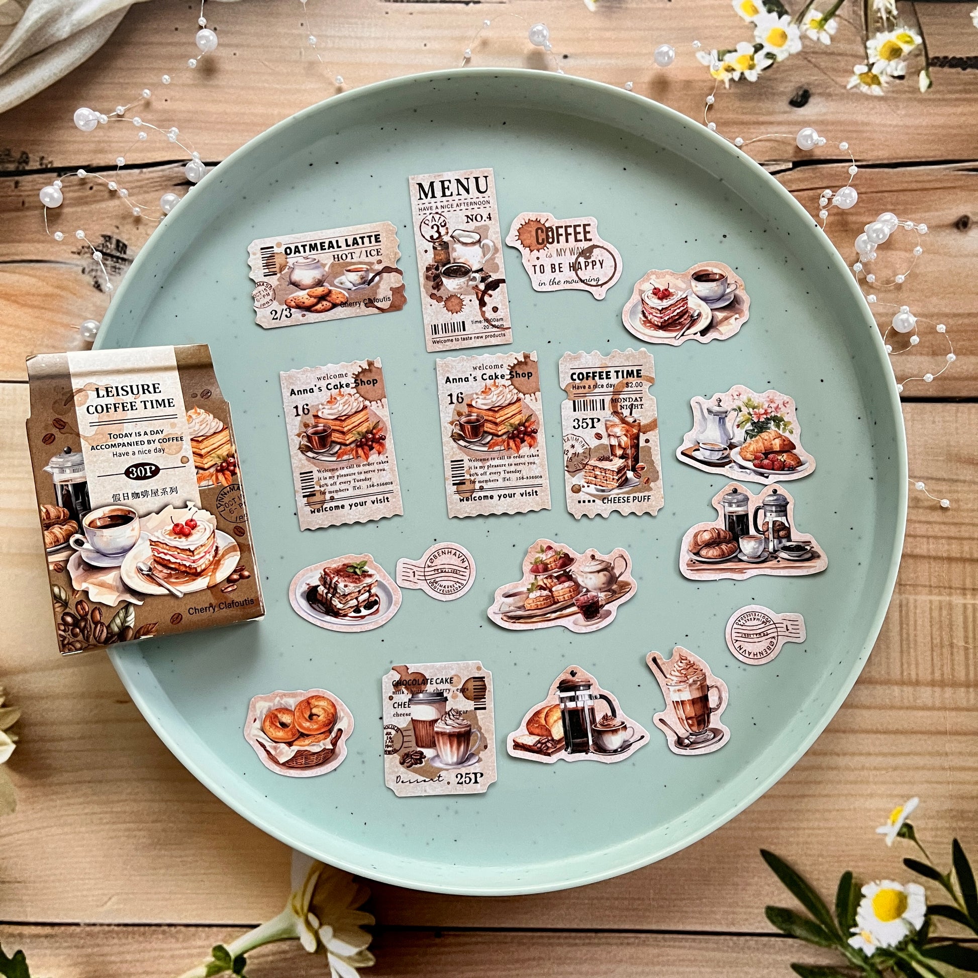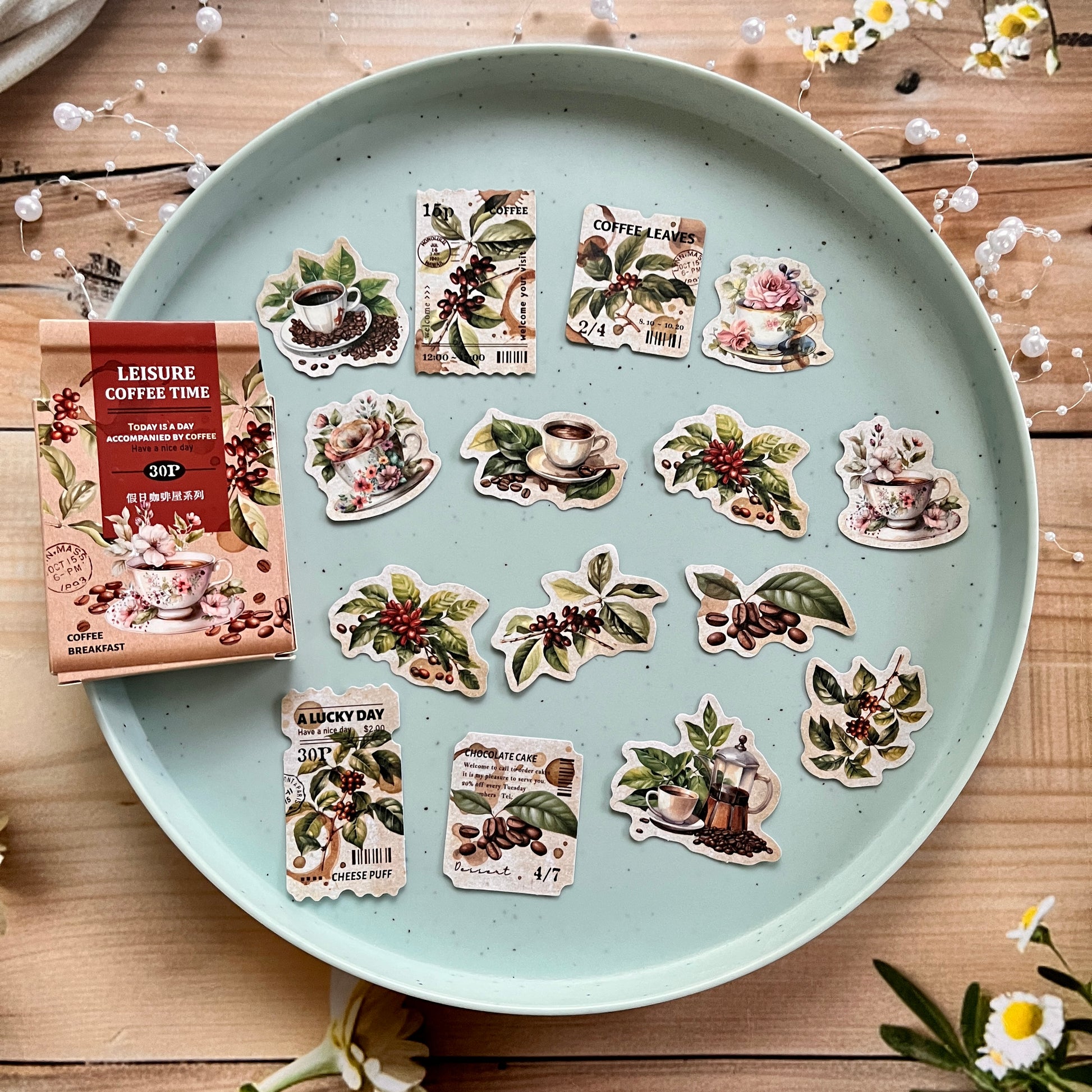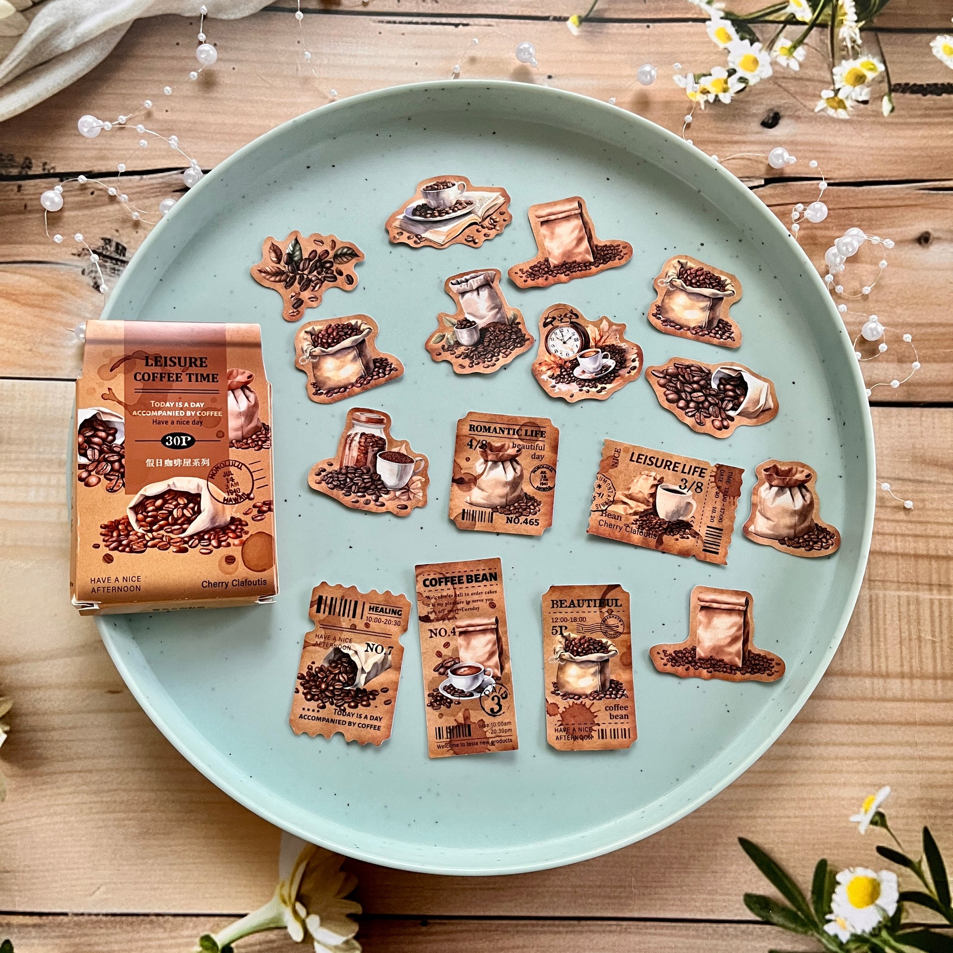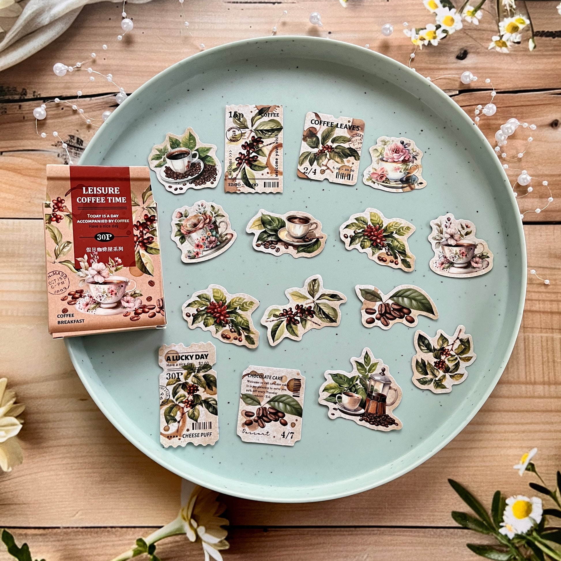 30pcs Holiday Coffee Series European Vintage Coffee Boxed Stickers