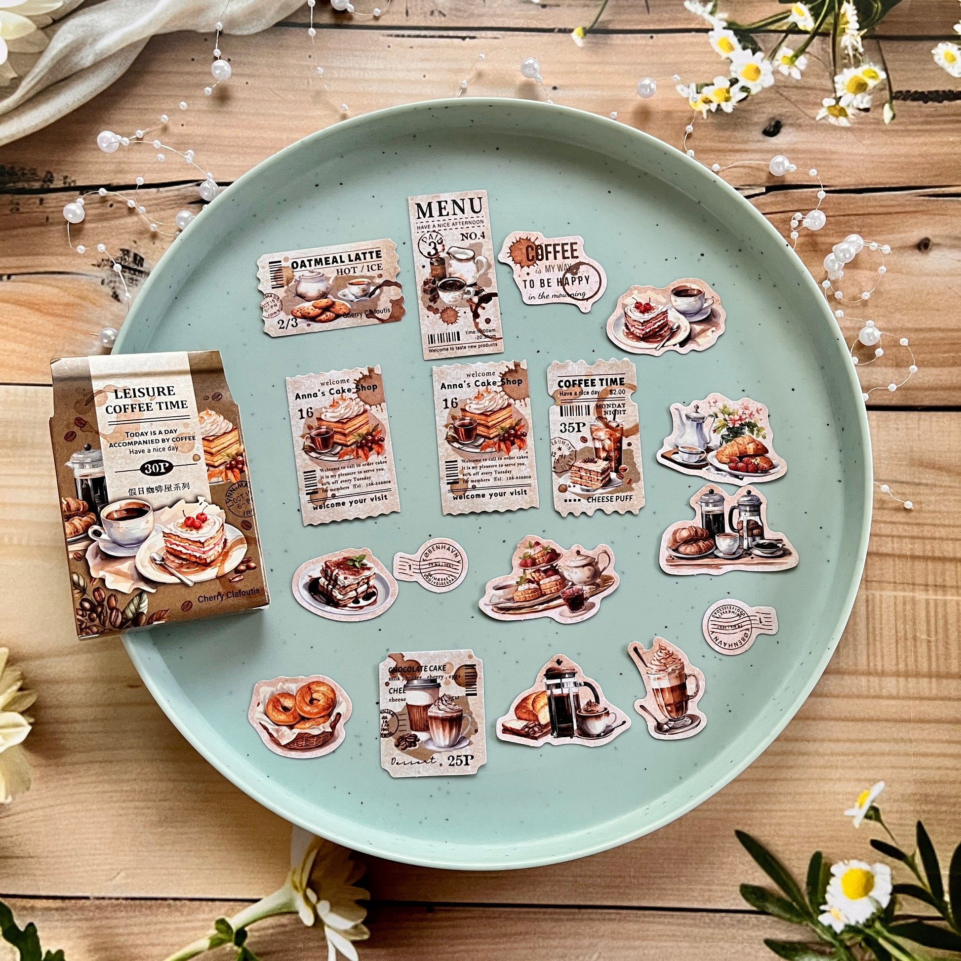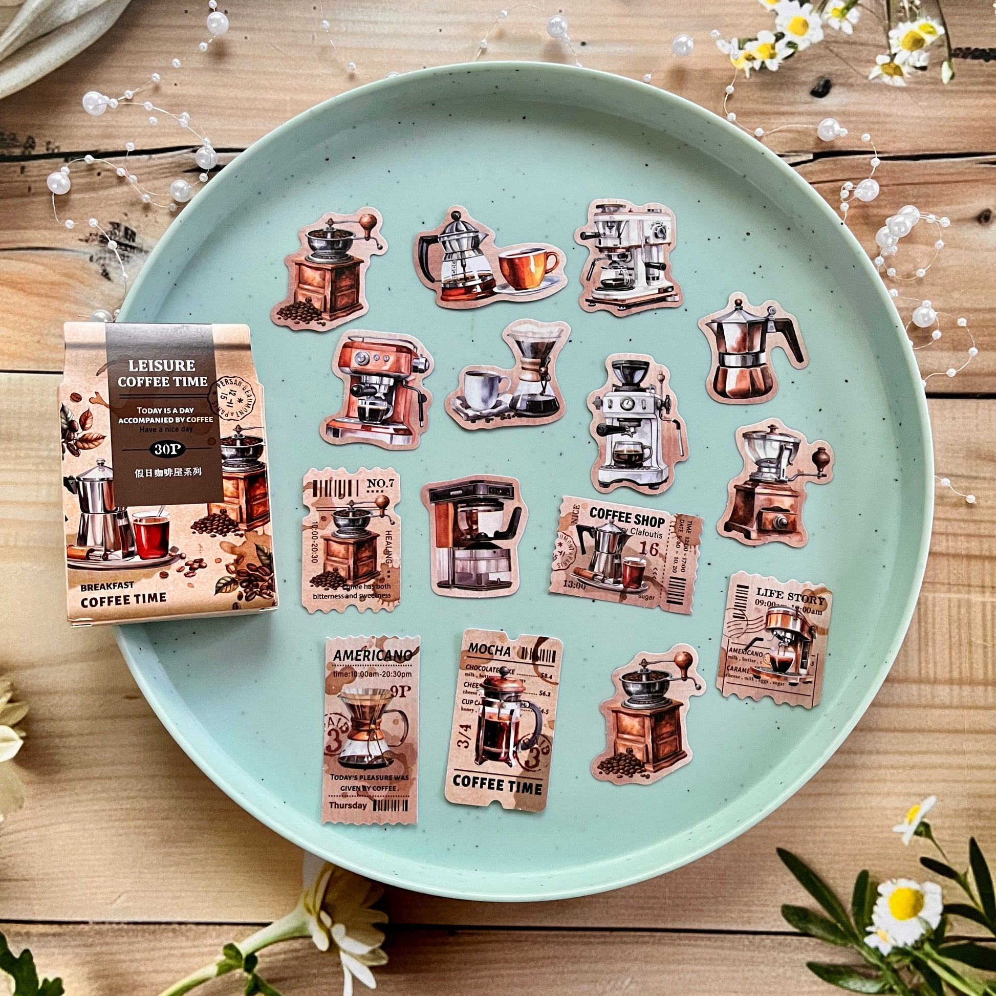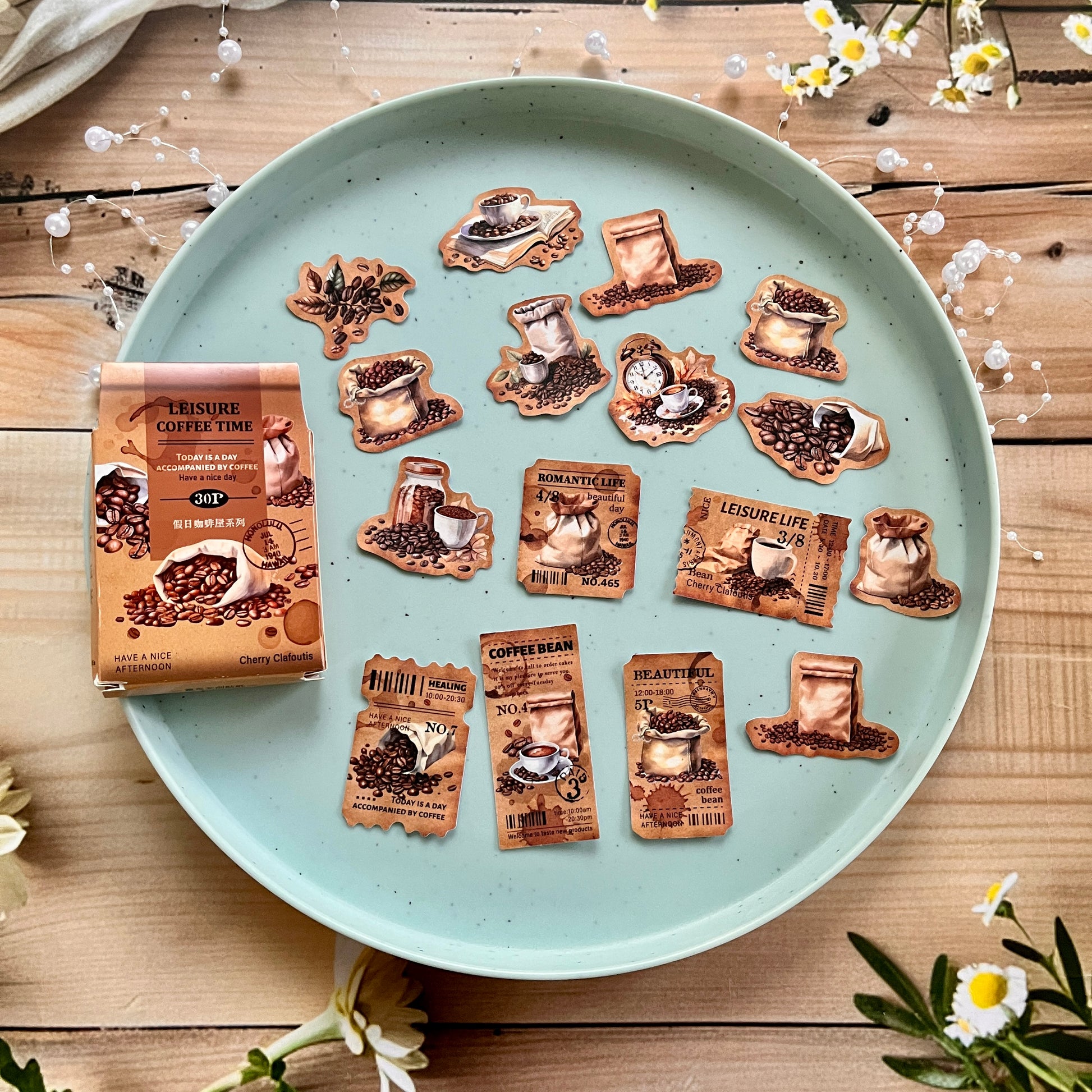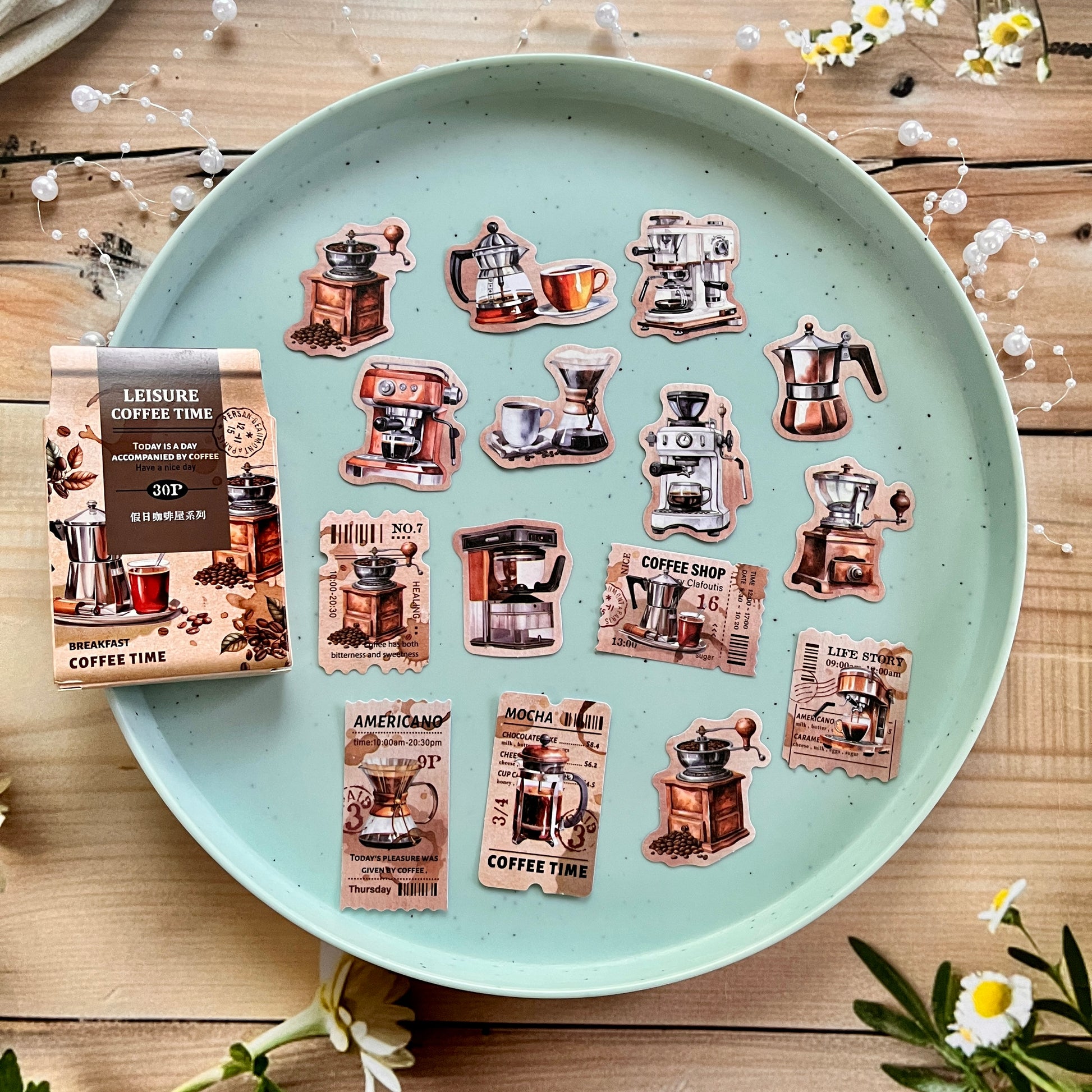 30pcs Holiday Coffee Series European Vintage Coffee Boxed Stickers