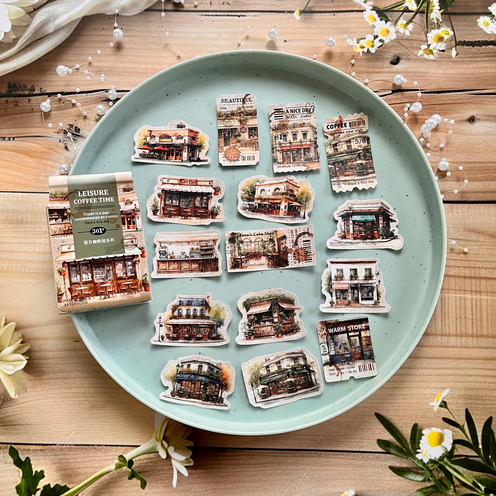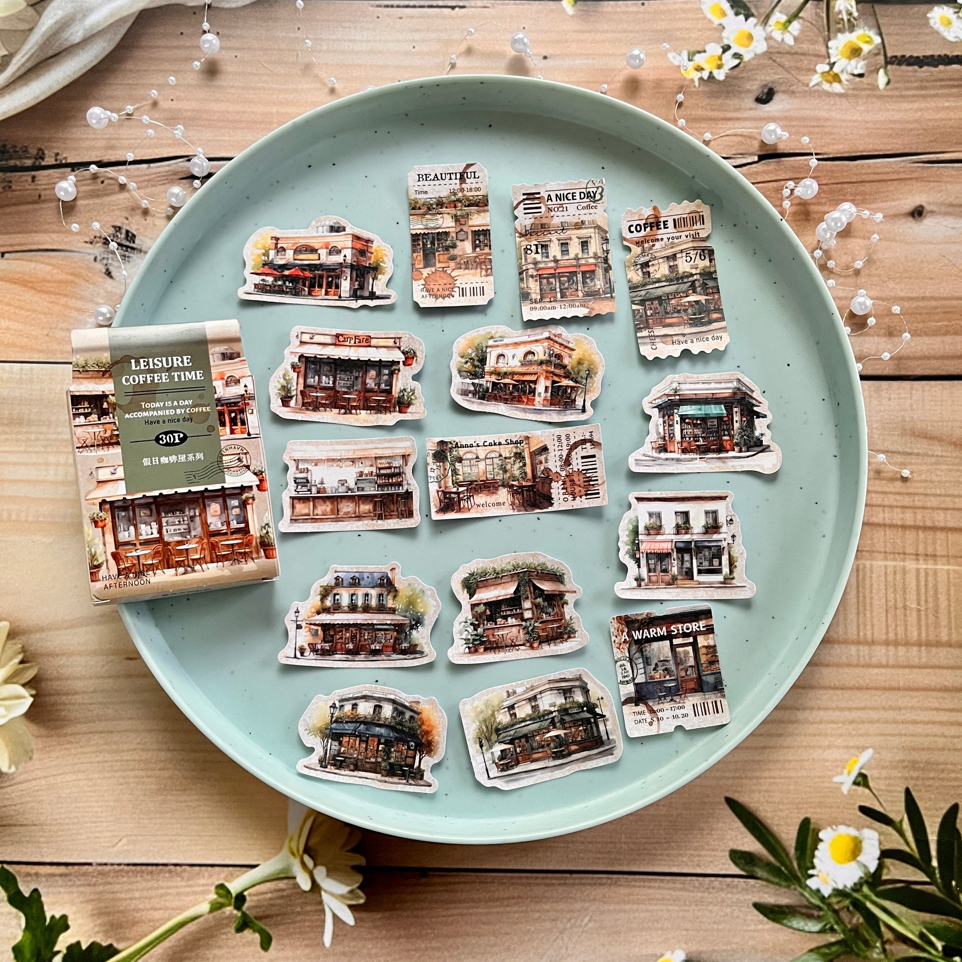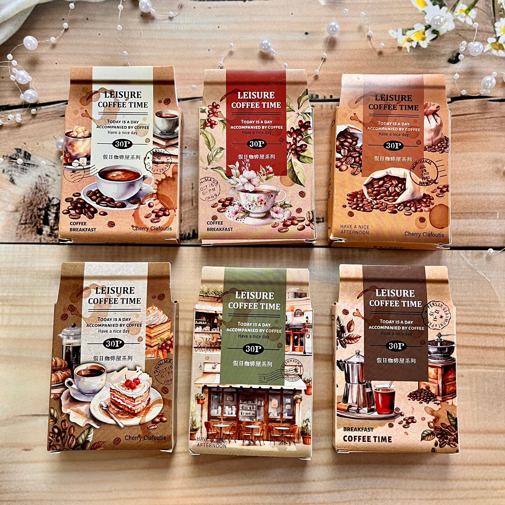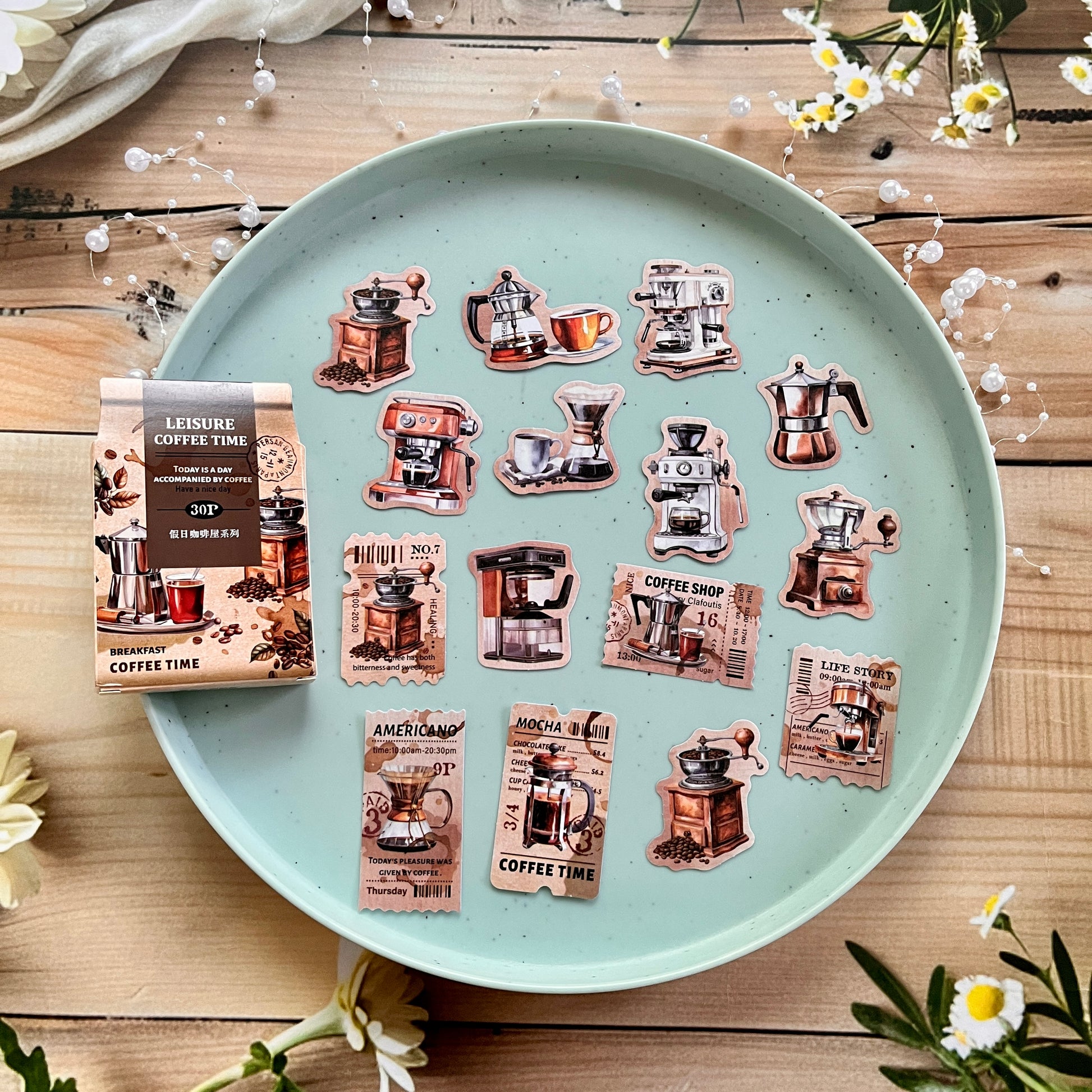 30pcs Holiday Coffee Series European Vintage Coffee Boxed Stickers